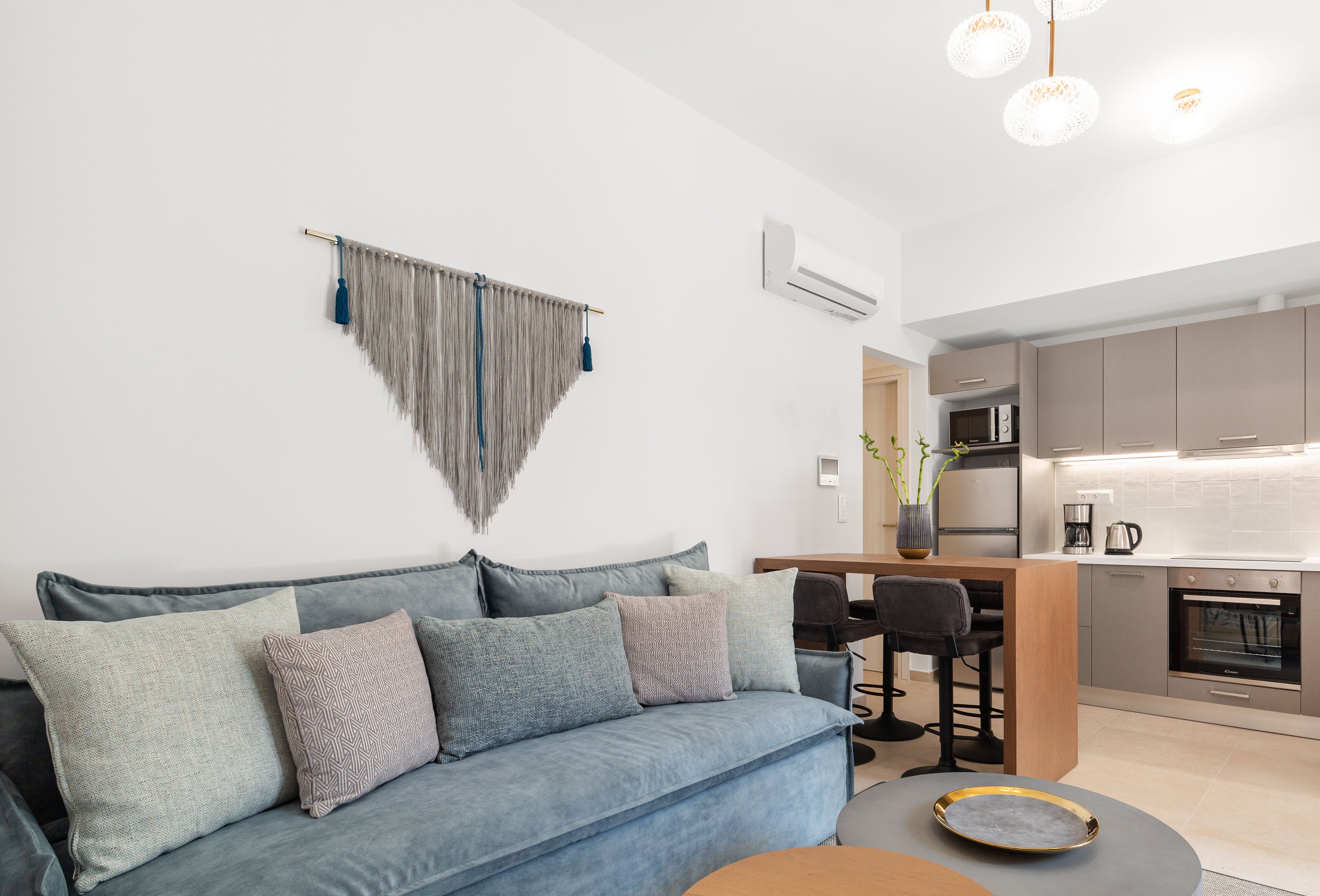 The location is unbeatable, there's no denying that. But the icing on the cake is the cool, calm interiors waiting for you back home. Soak up the last of the evening rays on your private patio, sharing a bottle of Greek wine and nibbling on olives as the sun goes down. Inside, cook up a storm in the sleek kitchen, then gather on the sofa for a Netflix movie night – the host's log-in is included with your stay. Finally, when your eyes are getting tired, snuggle up in the sumptuous bedroom and enjoy a restful sleep, waking up refreshed and ready for tomorrow's adventures.