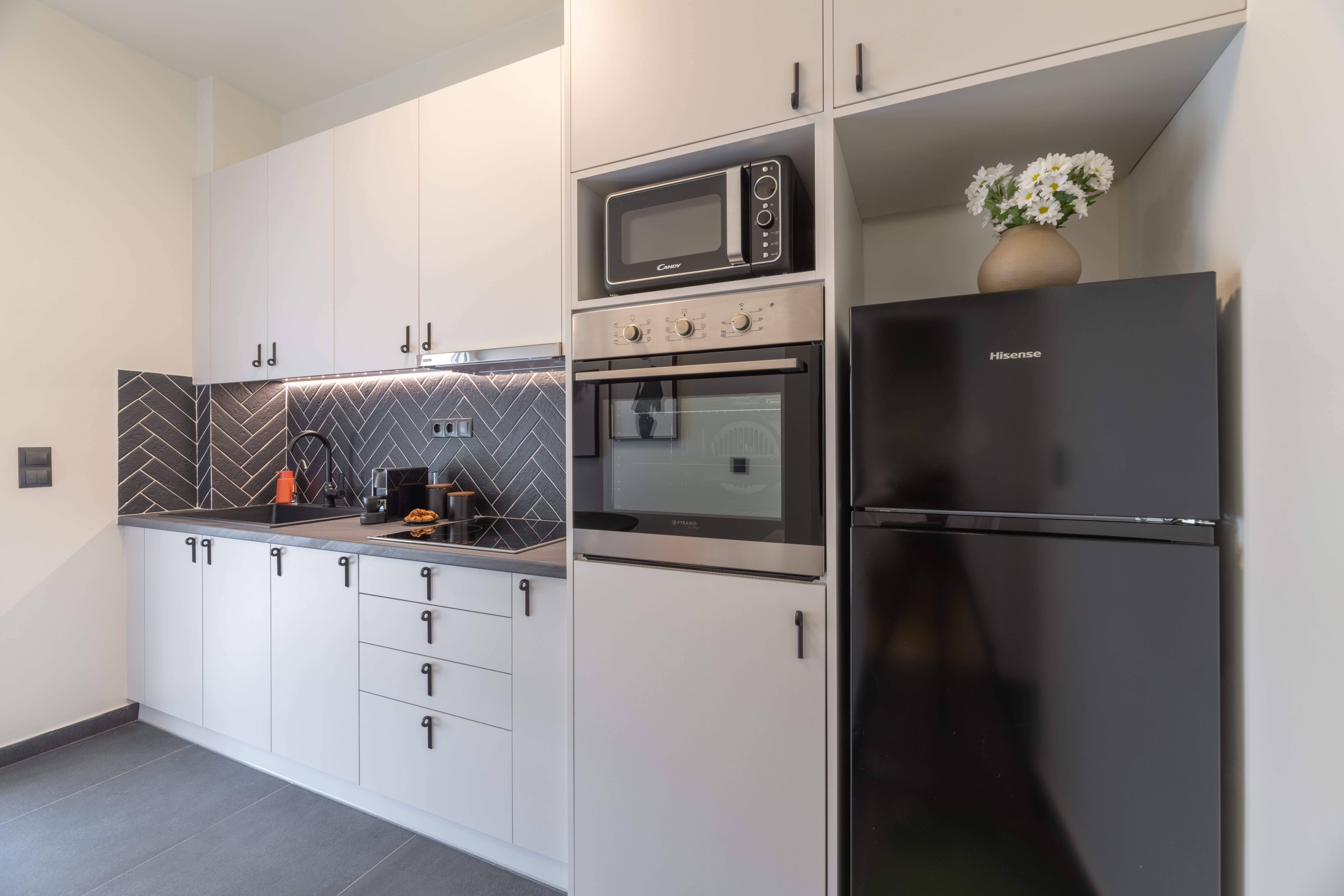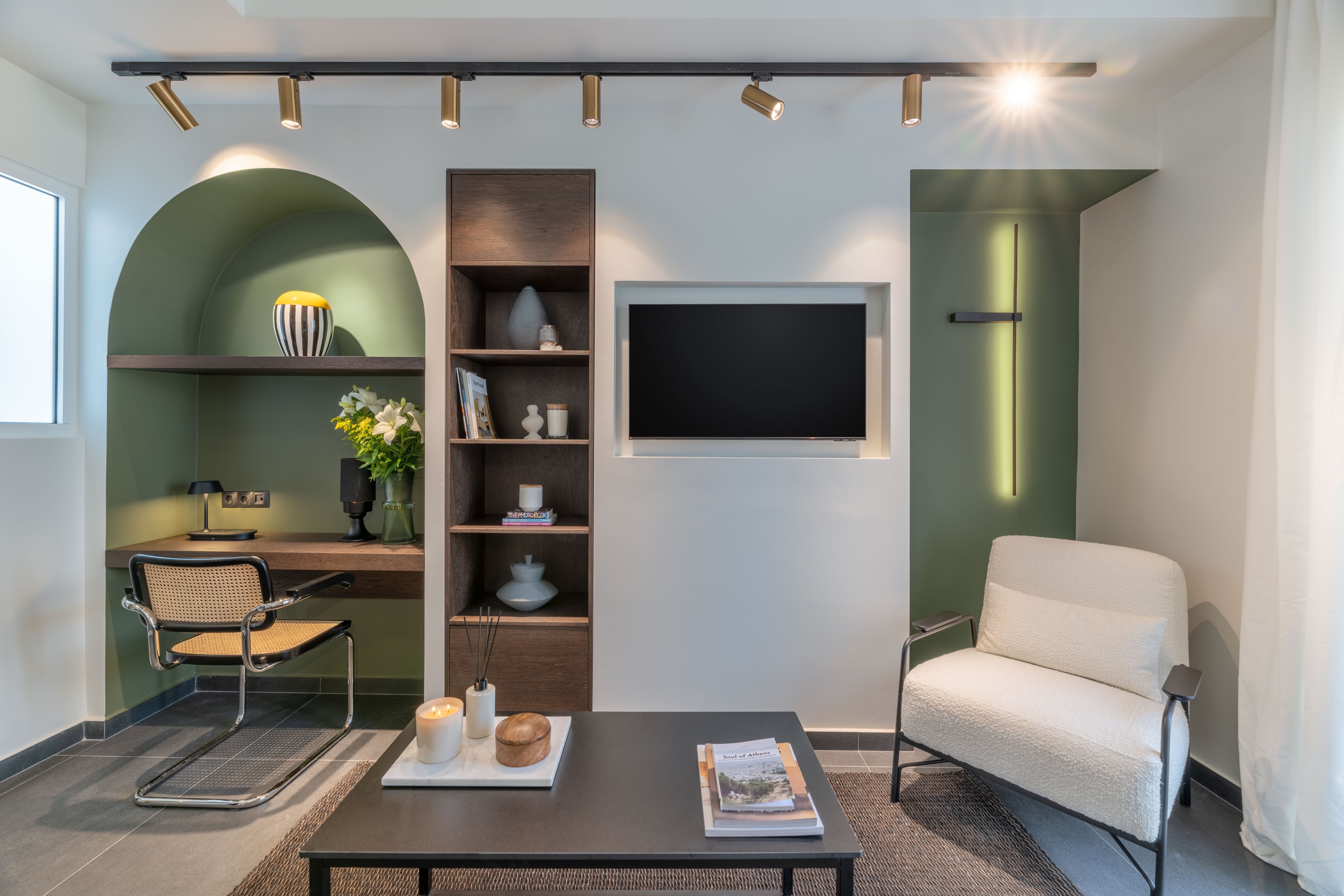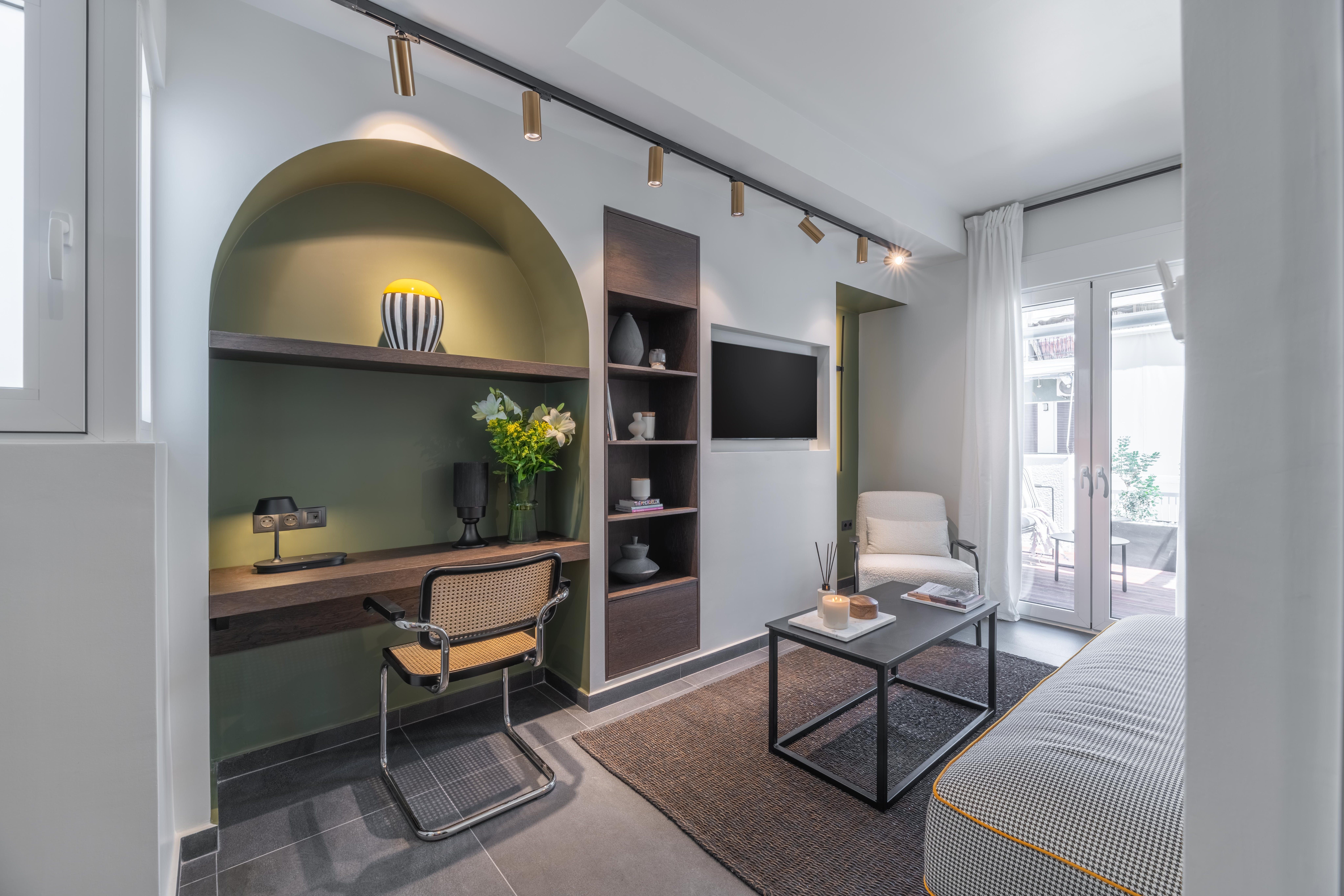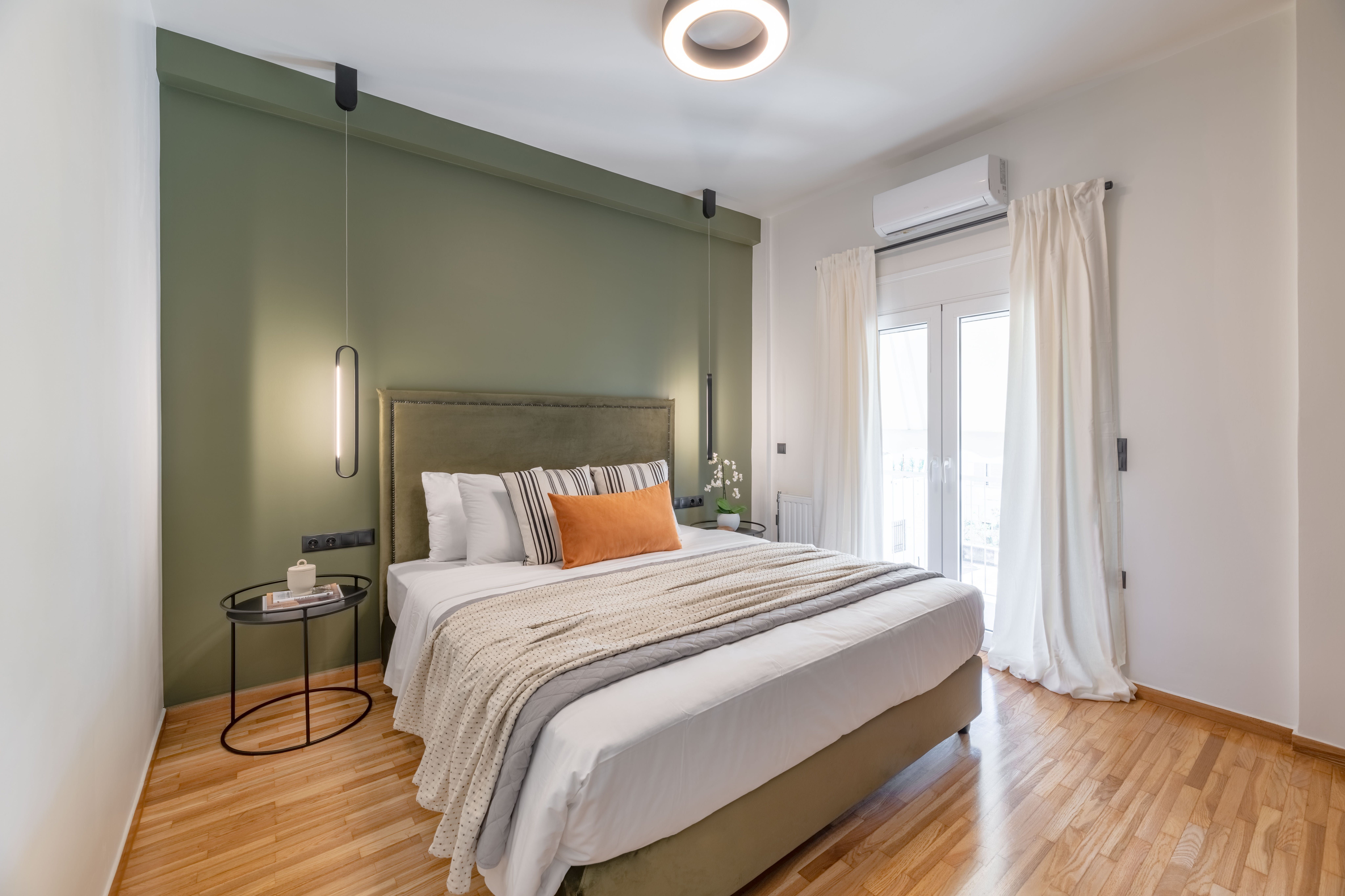 There's an awful lot riding in this apartment's favour. First, there's the fact that it's up on the top floor of the building and there are superb views of Filopapou Hill to be enjoyed from the balcony. What's more, there's plenty of seating in this space from which to admire the landscape, as well as a hot tub big enough for two.