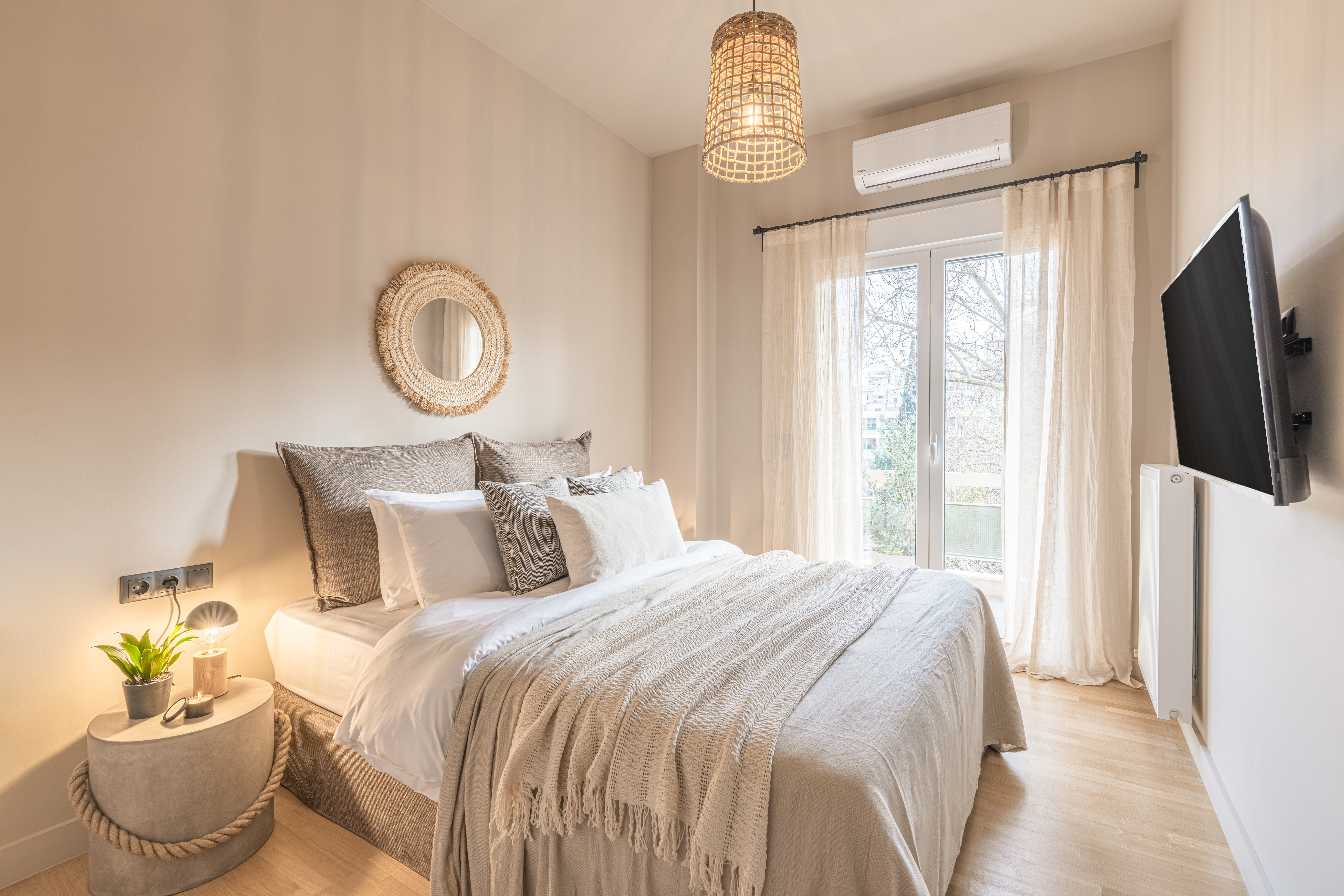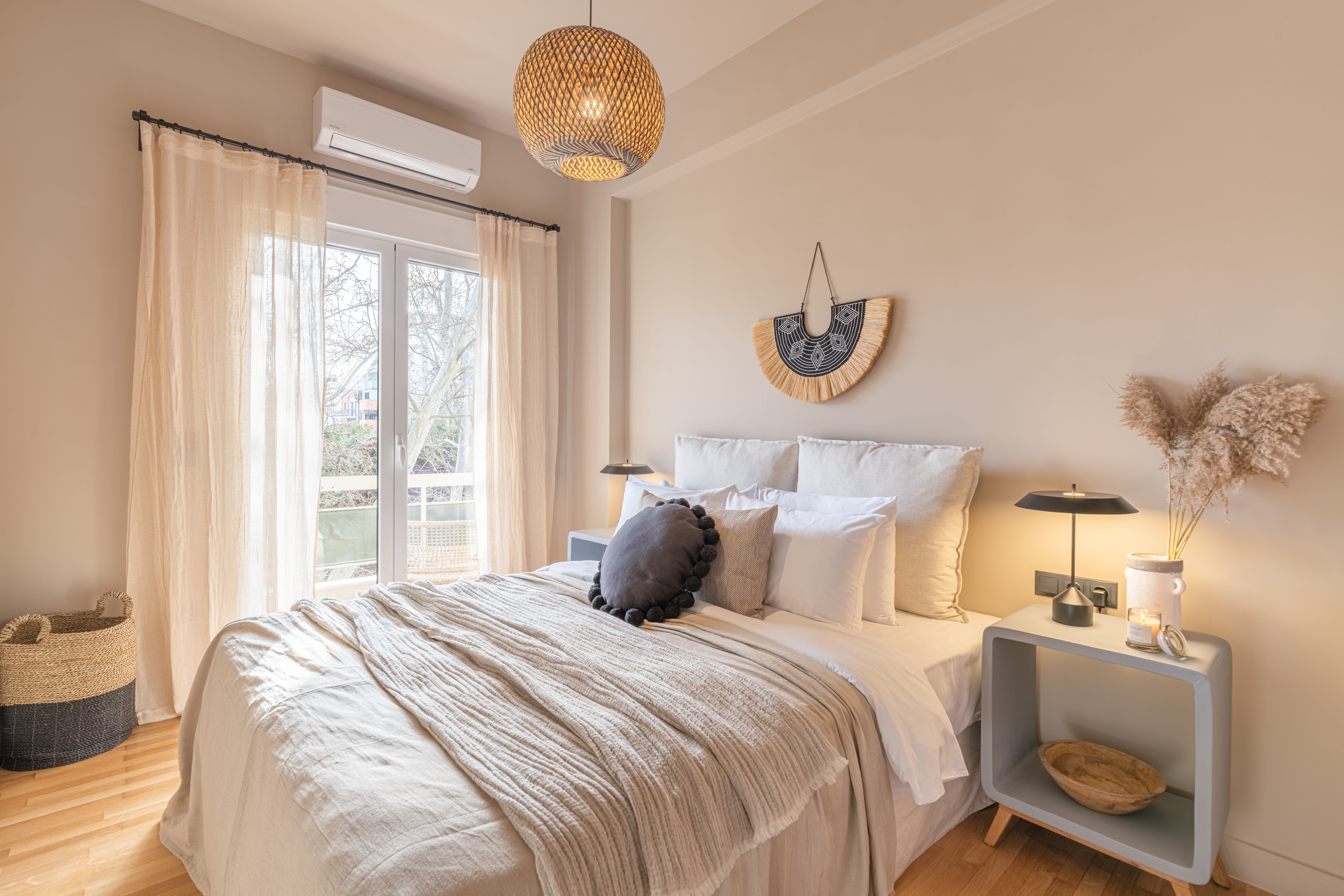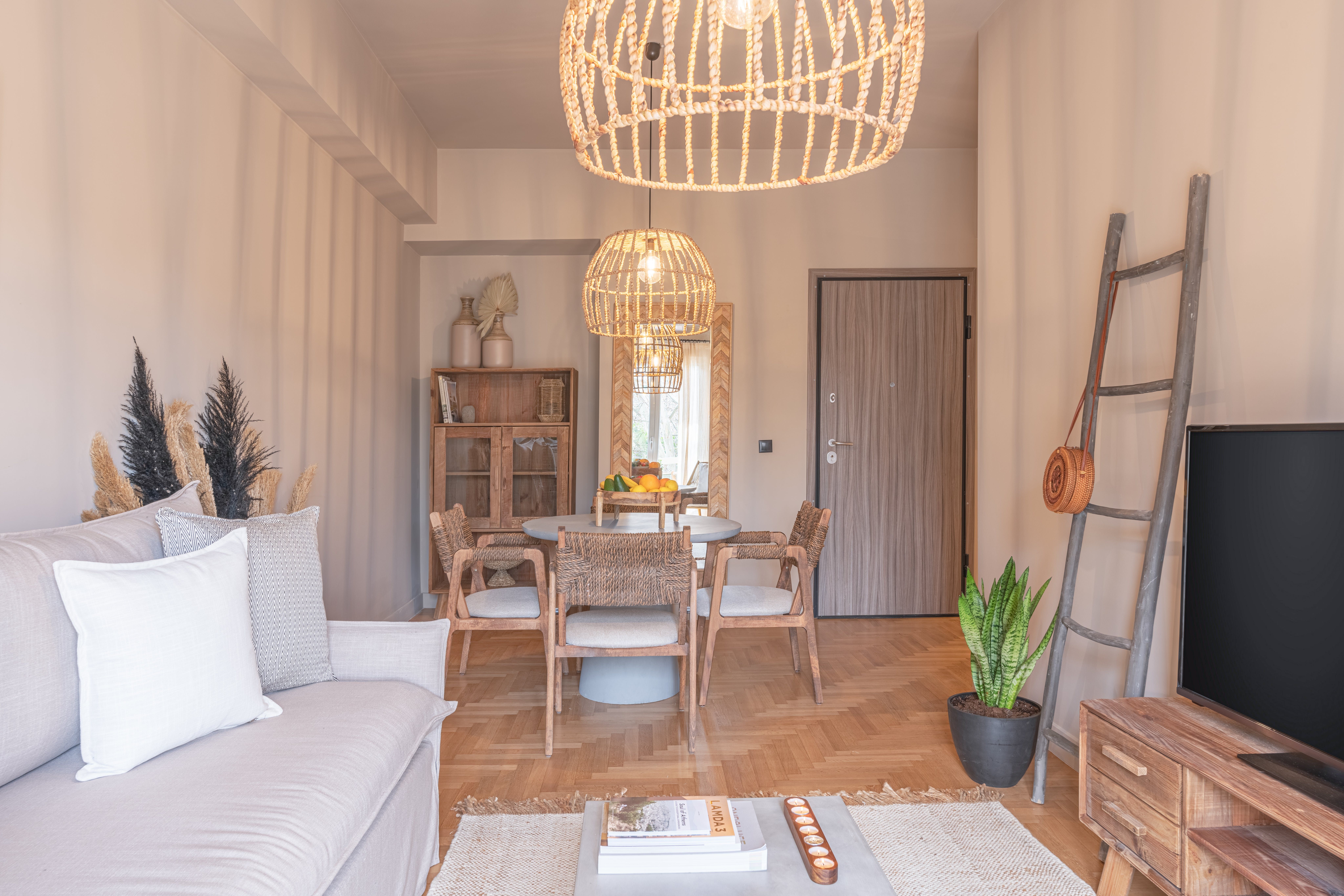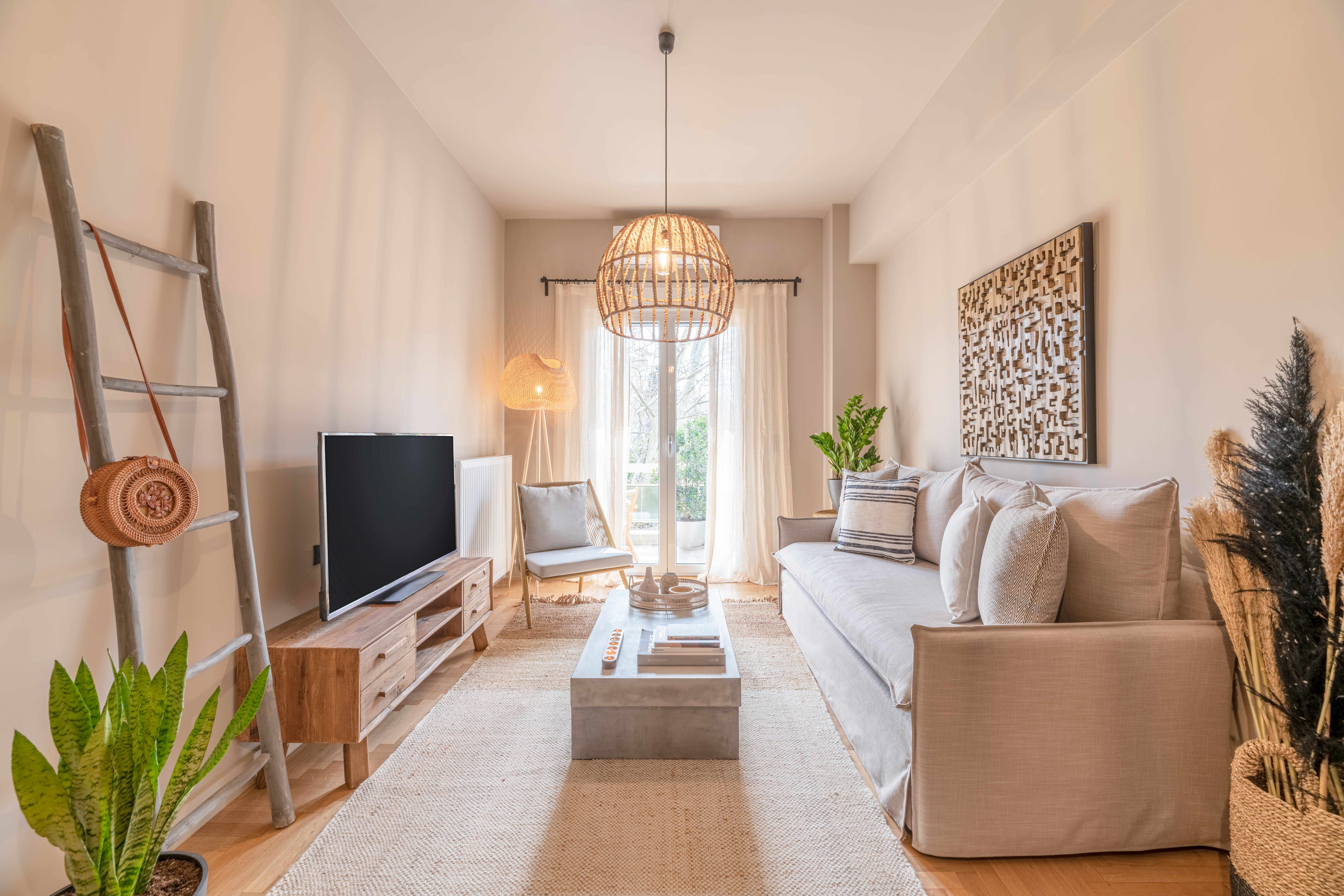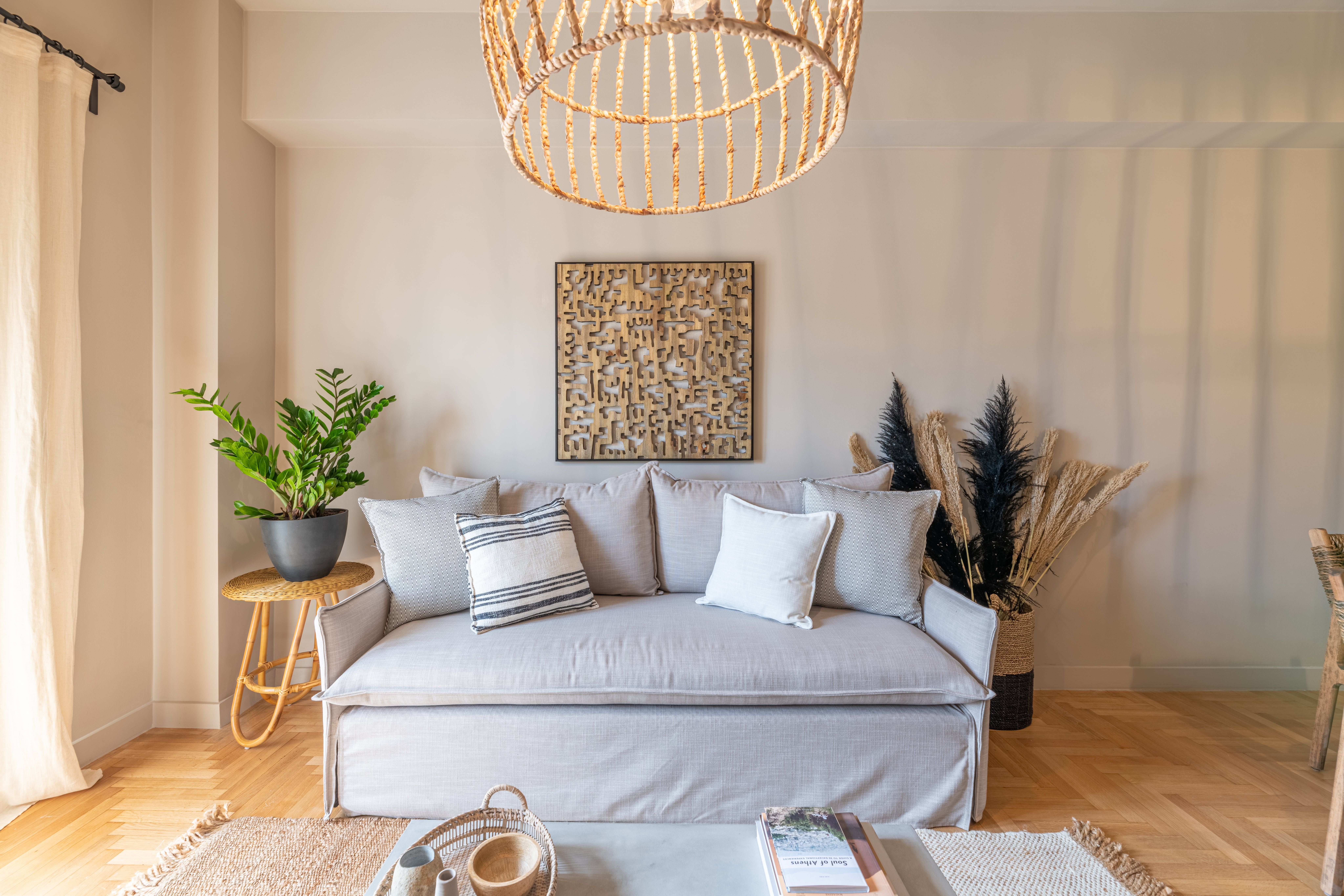 Dressed in beautiful earthy tones and boasting a singularly bohemian touch, this bright apartment in Athens’ Neos Kosmos neighbourhood offers a central, stylish stay in the city.