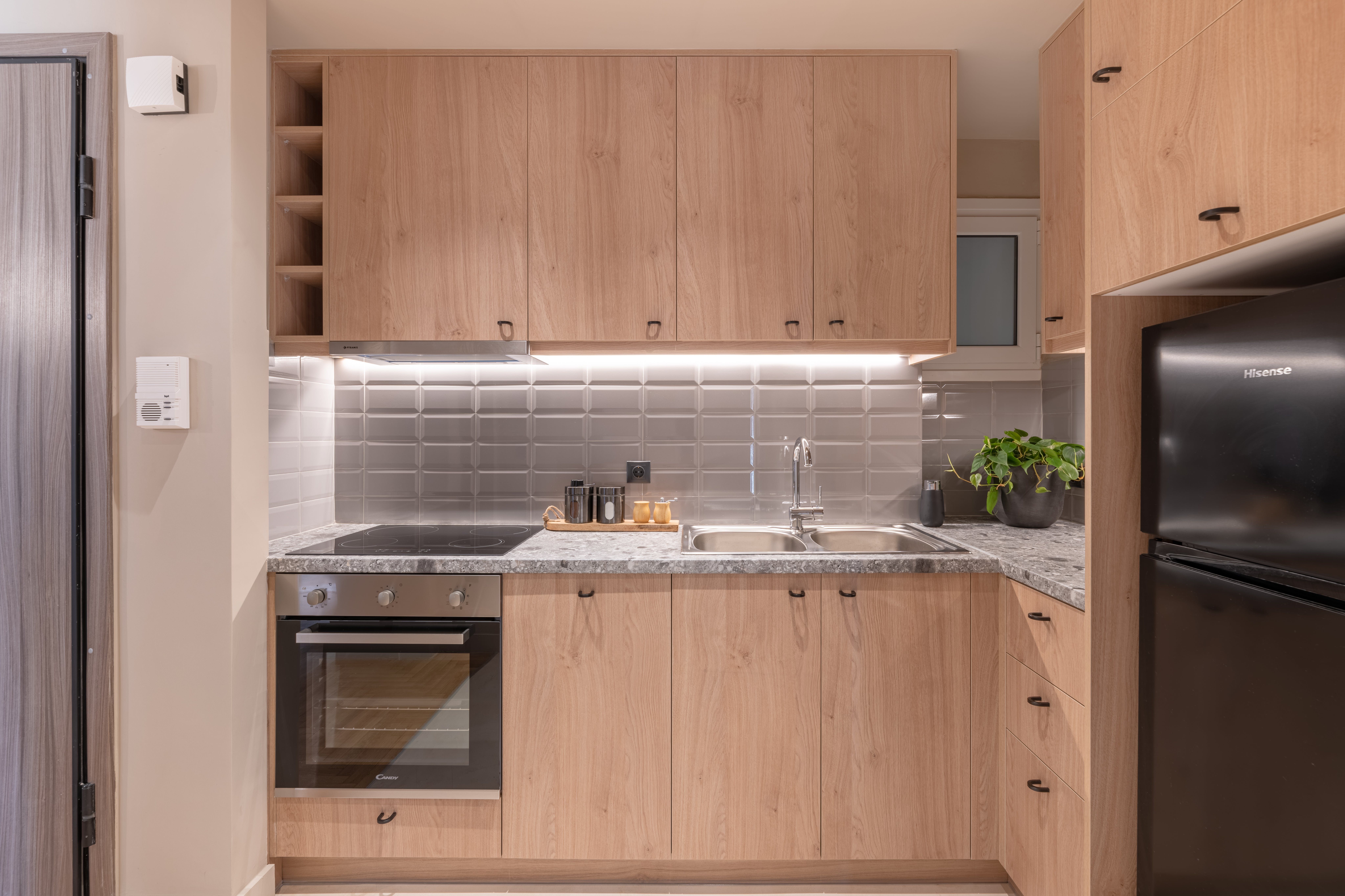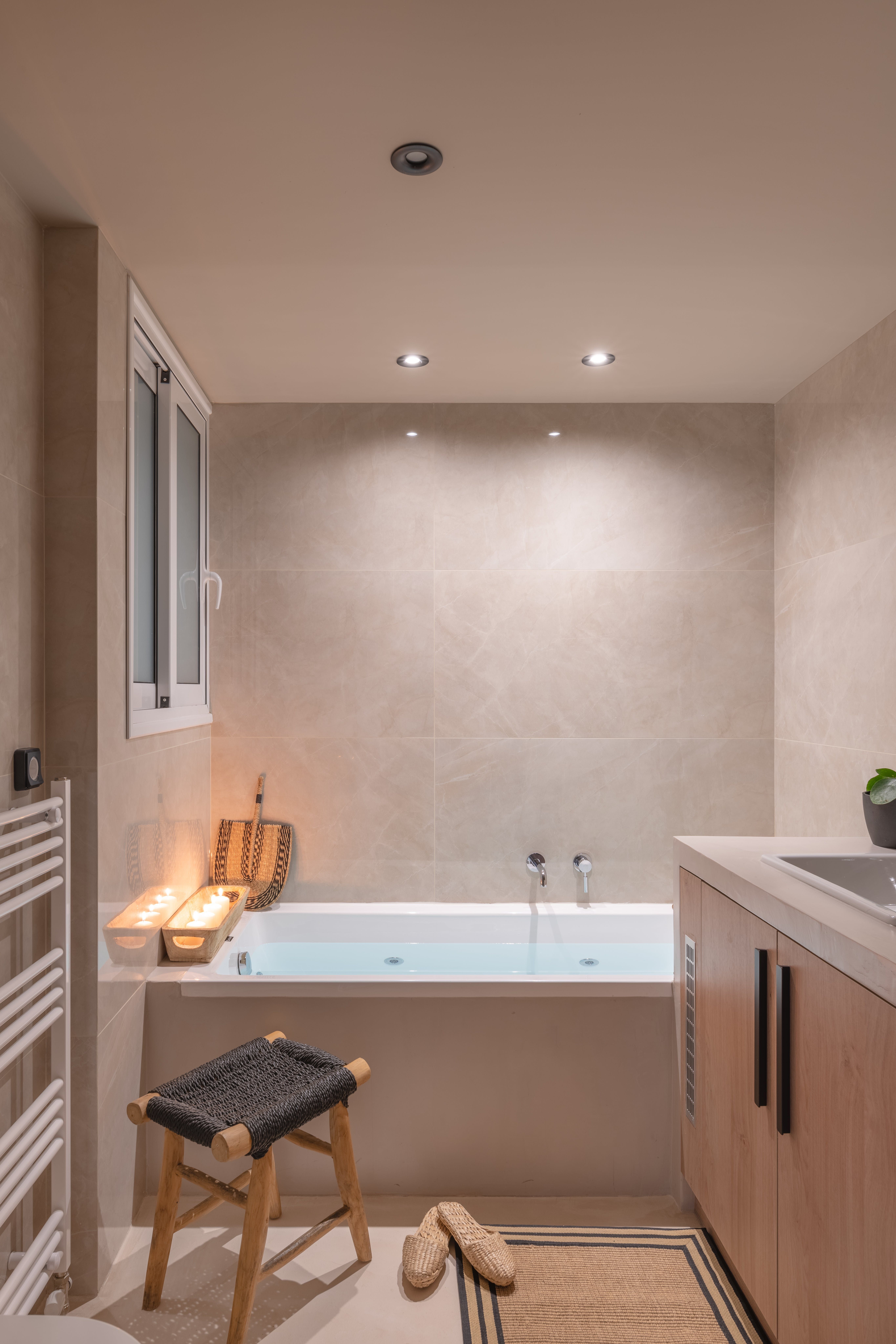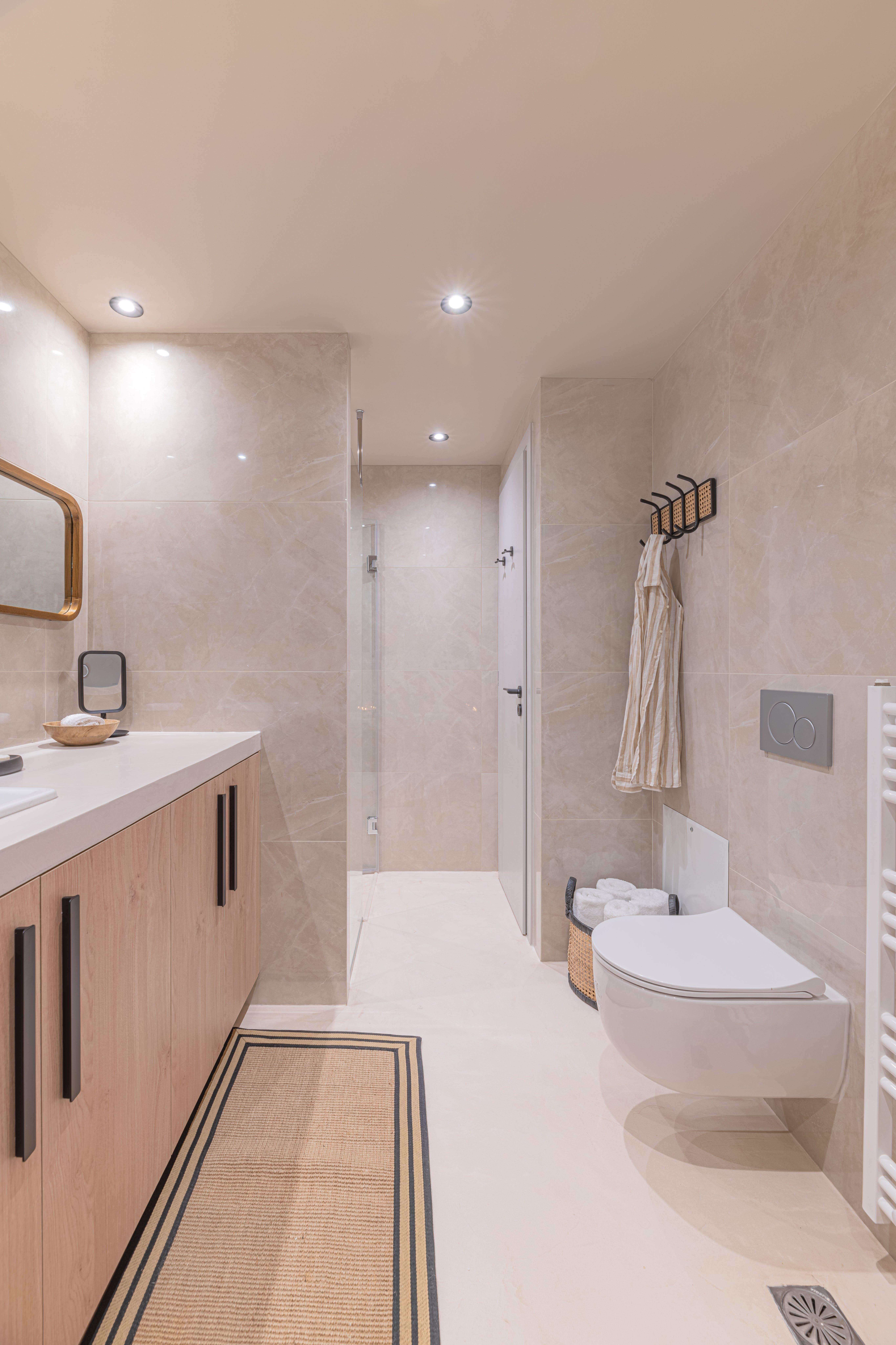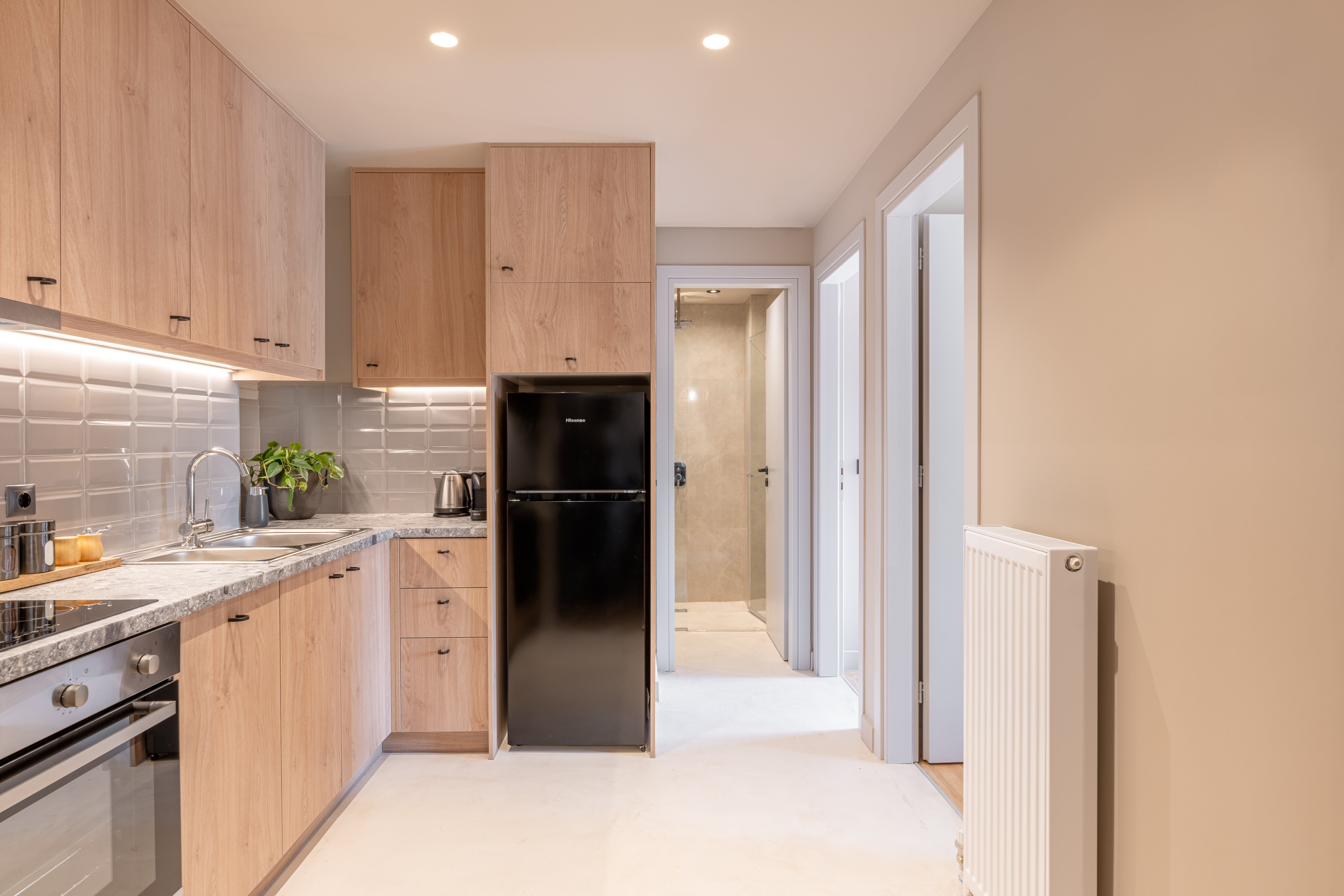 From its wood floors to its rattan rug and leafy houseplants, there’s a feeling of warmth to the home’s carefully curated decor that feels instantly welcoming. We love how much natural light fills the open-plan living area, thanks to the glass doors that lead out onto a private balcony. Sit here each morning with your cup of coffee while taking in views over the neighbourhood’s rooftops, or gather at sunset for an alfresco sundowner before enjoying a meal around the dining table for an at-home feast.