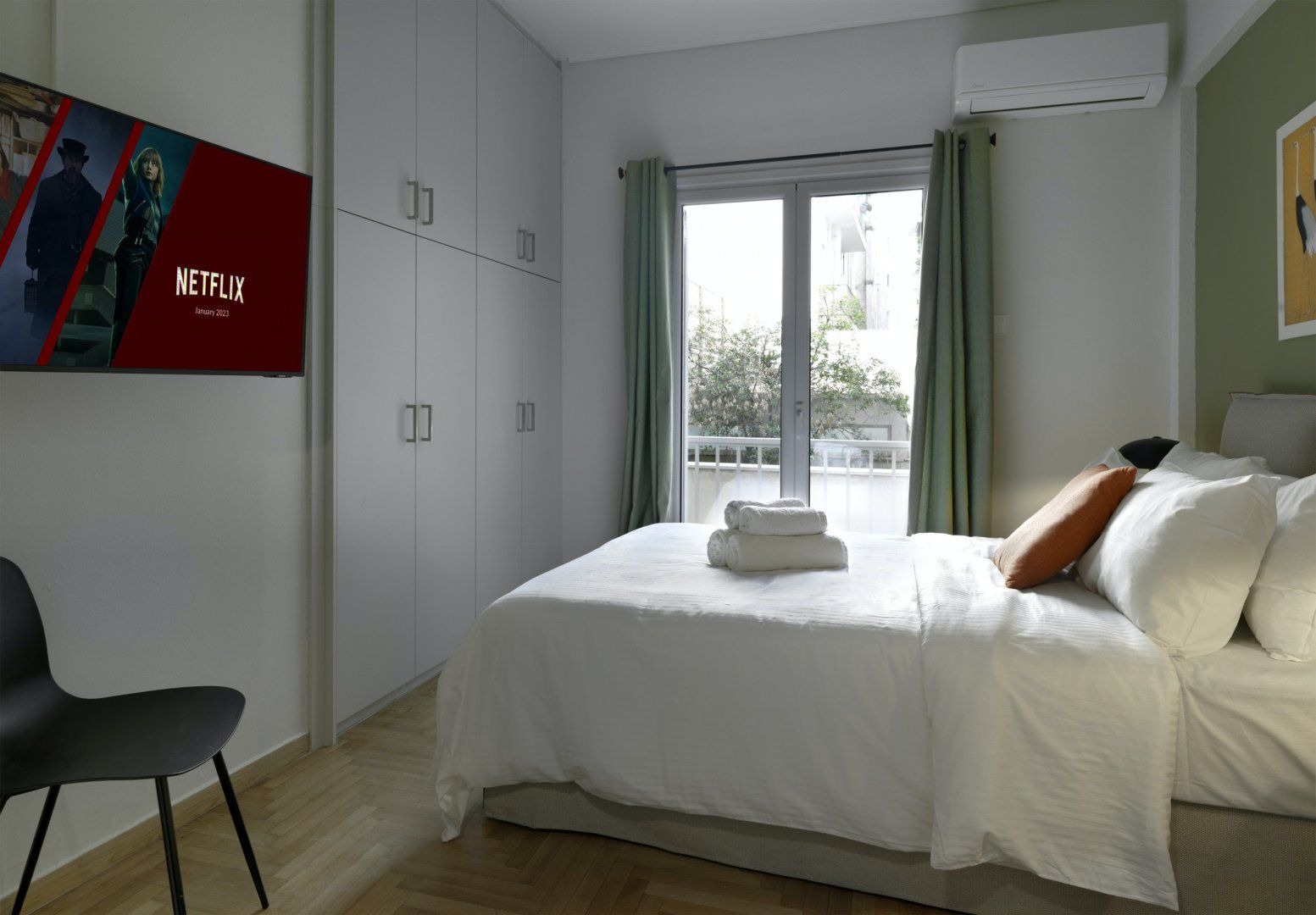 Located in Athens’ stylish Kolonaki neighbourhood, this comfortable studio-style apartment is an ideal base for couples or solo travellers looking to explore the city from a calm yet central spot. Ideal for those visiting on business too, you’ll find a dedicated desk space in the sage green bedroom, as well as a little Juliet balcony – perfect for perching with your morning cup of Greek coffee as you map out the day’s activities. Take the funicular up Lycabettus Hill for jaw-dropping views over the entire city, spend an afternoon at the Benaki Museum or hop on the Metro to visit the famous Acropolis.