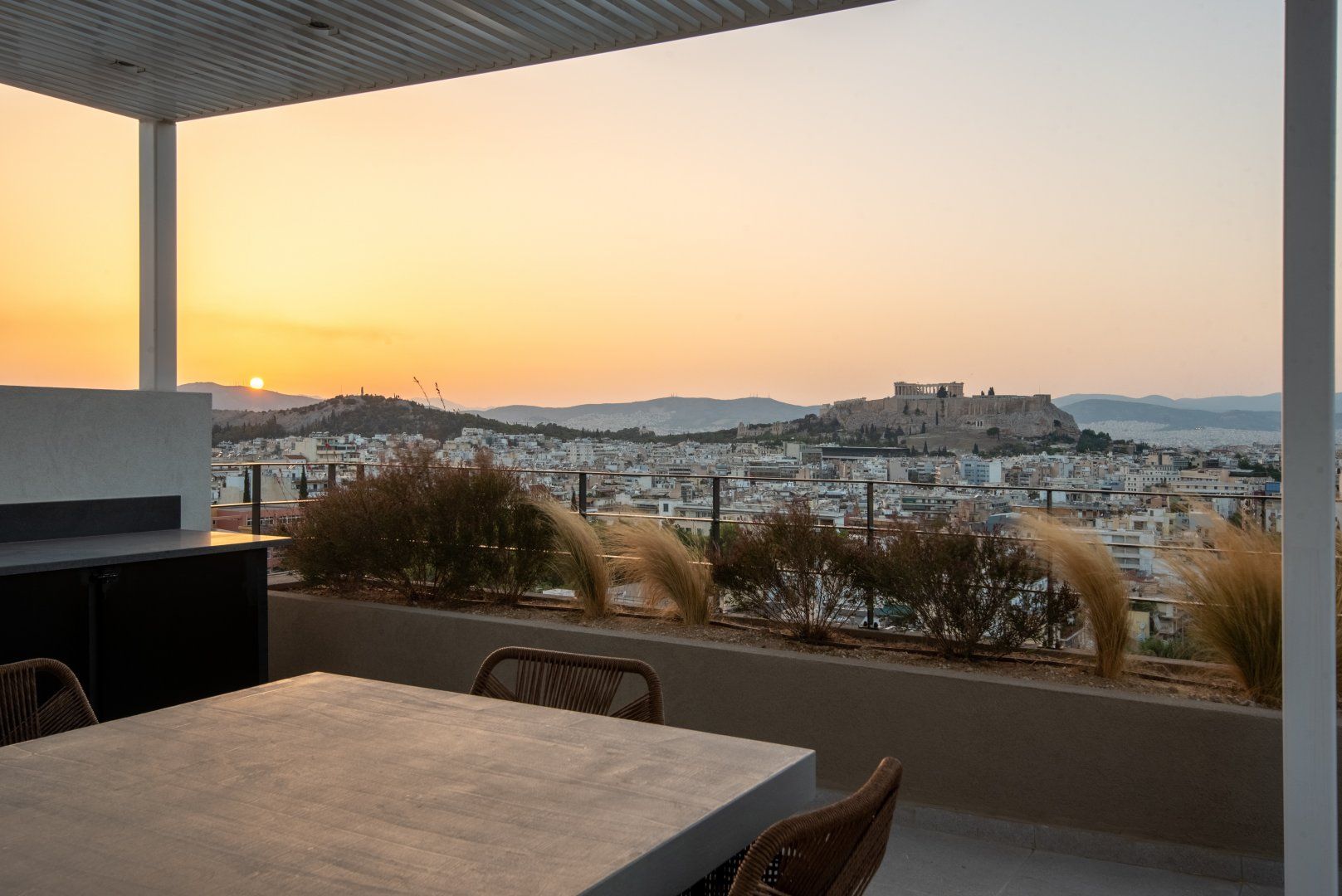 In the evening, take advantage of the shared rooftop terrace with its lounge sitting area and large dining table to relax and chat about your day, dine alfresco, or simply enjoy the magnificent sunset views which cover a 360-degree vista of the city, including a glimpse of the ocean. We would then love to end our days with an Ouzo cocktail on our private balcony admiring the sight of the Acropolis light up at night.