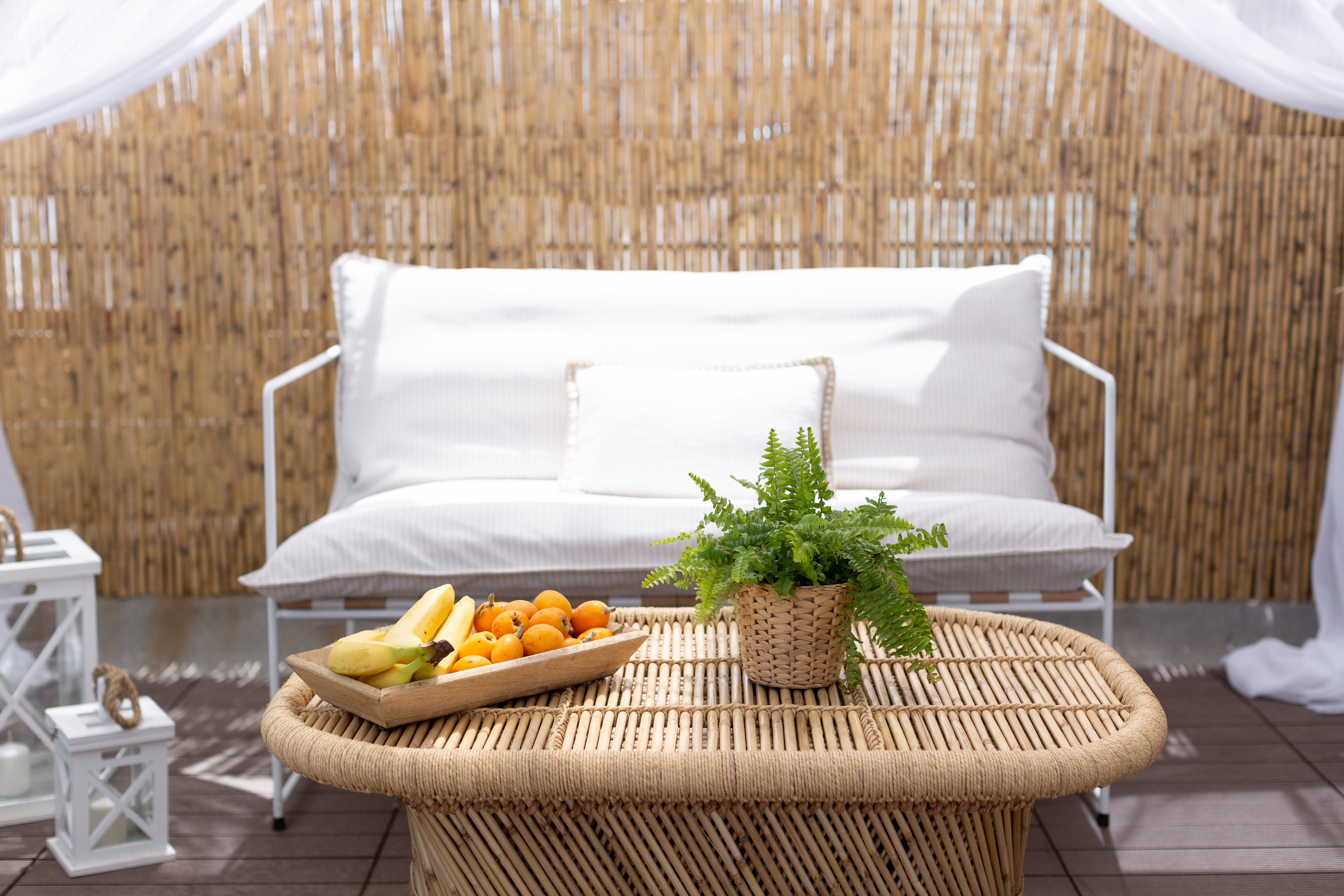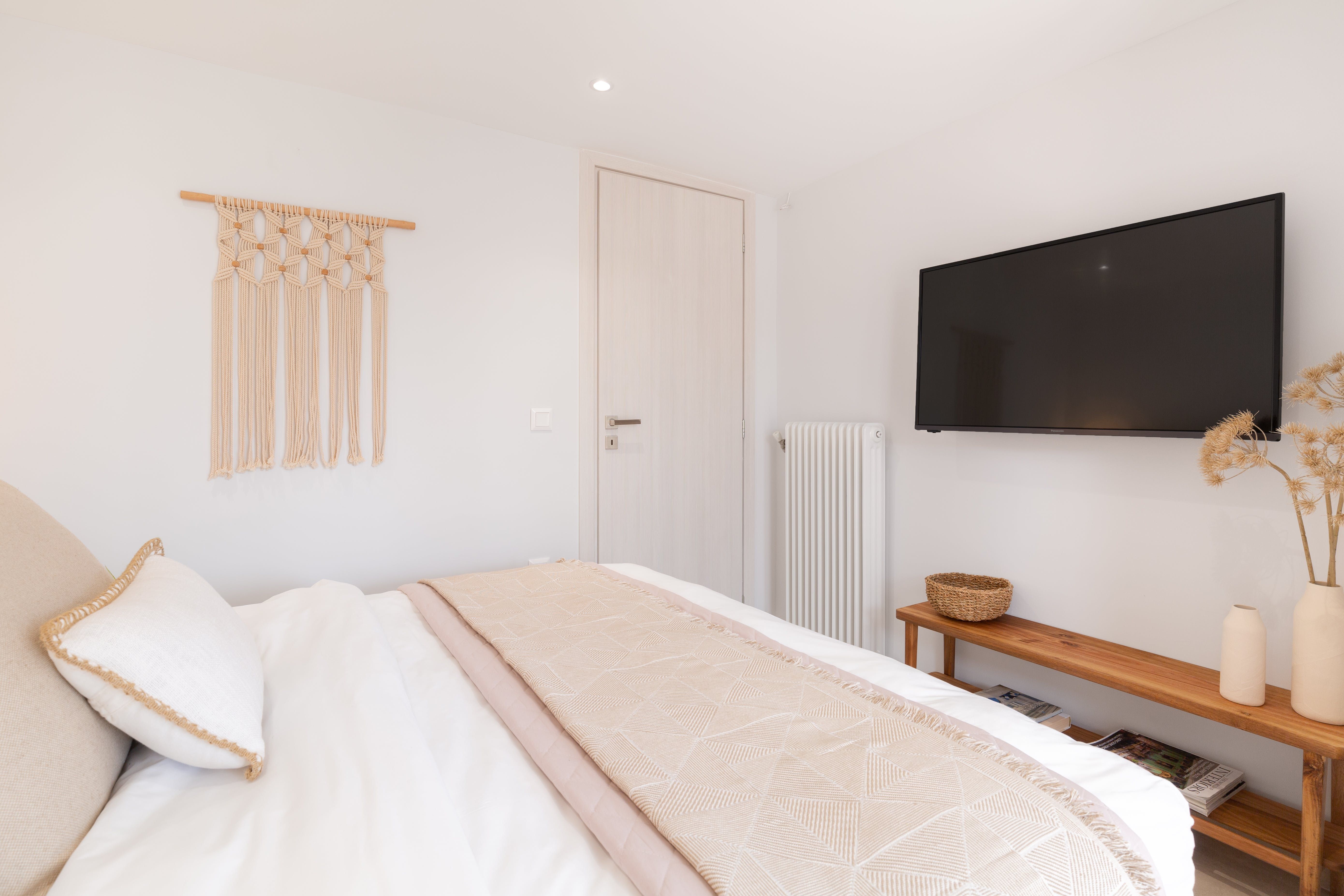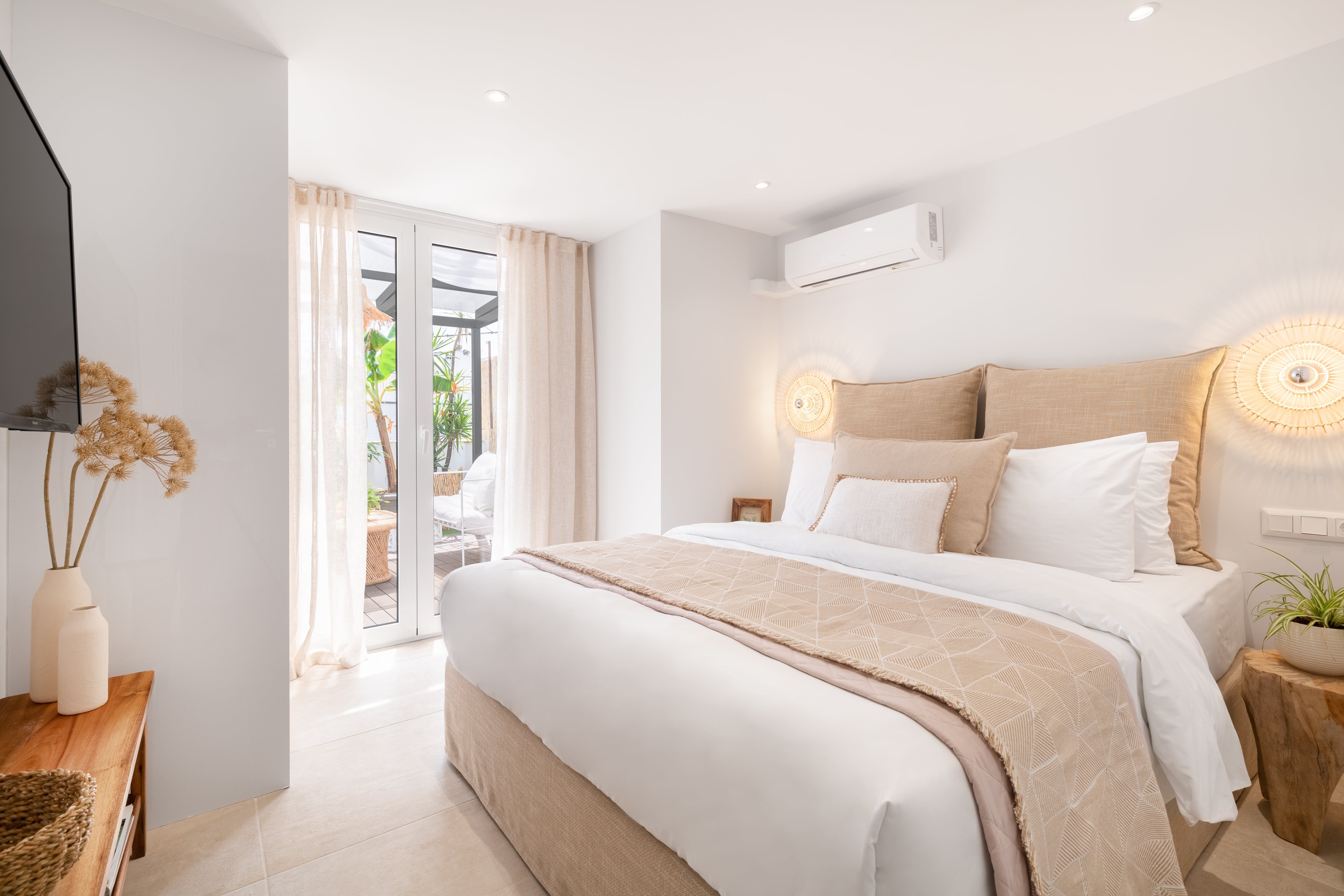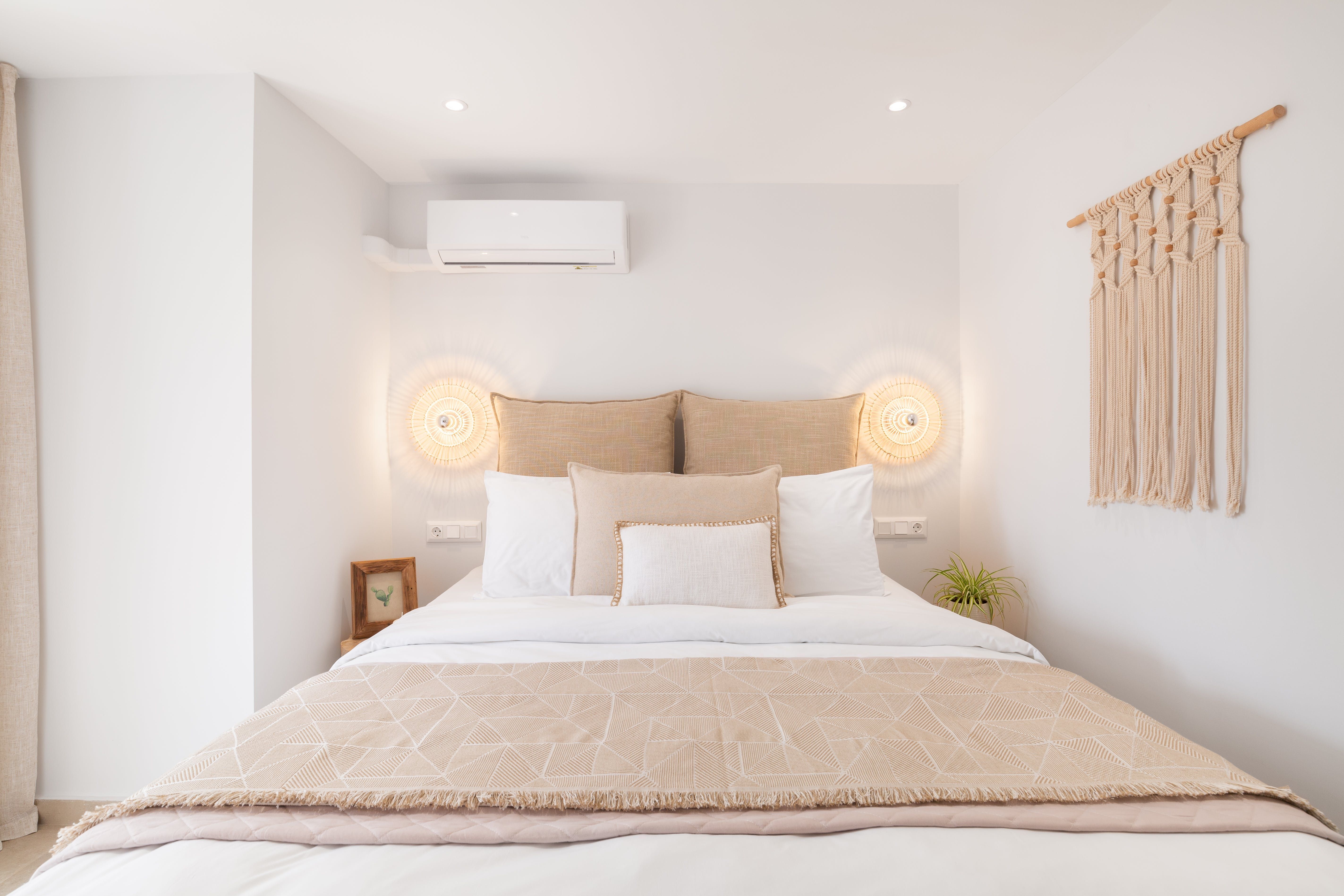 With an incredible terrace giving way to rooftop views, this beautifully styled apartment is just the ticket for those looking for a sunny stay away from the tourist crowds. We love the careful curation of this home’s outdoor space. From the elegant canopy framing a seating area and dining table to the row of leafy plants giving it a jungle feel, this heavenly terrace is where you’ll want to spend sun-up till sun-down. Choose a lounger on which to catch some rays, before enjoying alfresco meals and celebratory drinks beneath the shade.
