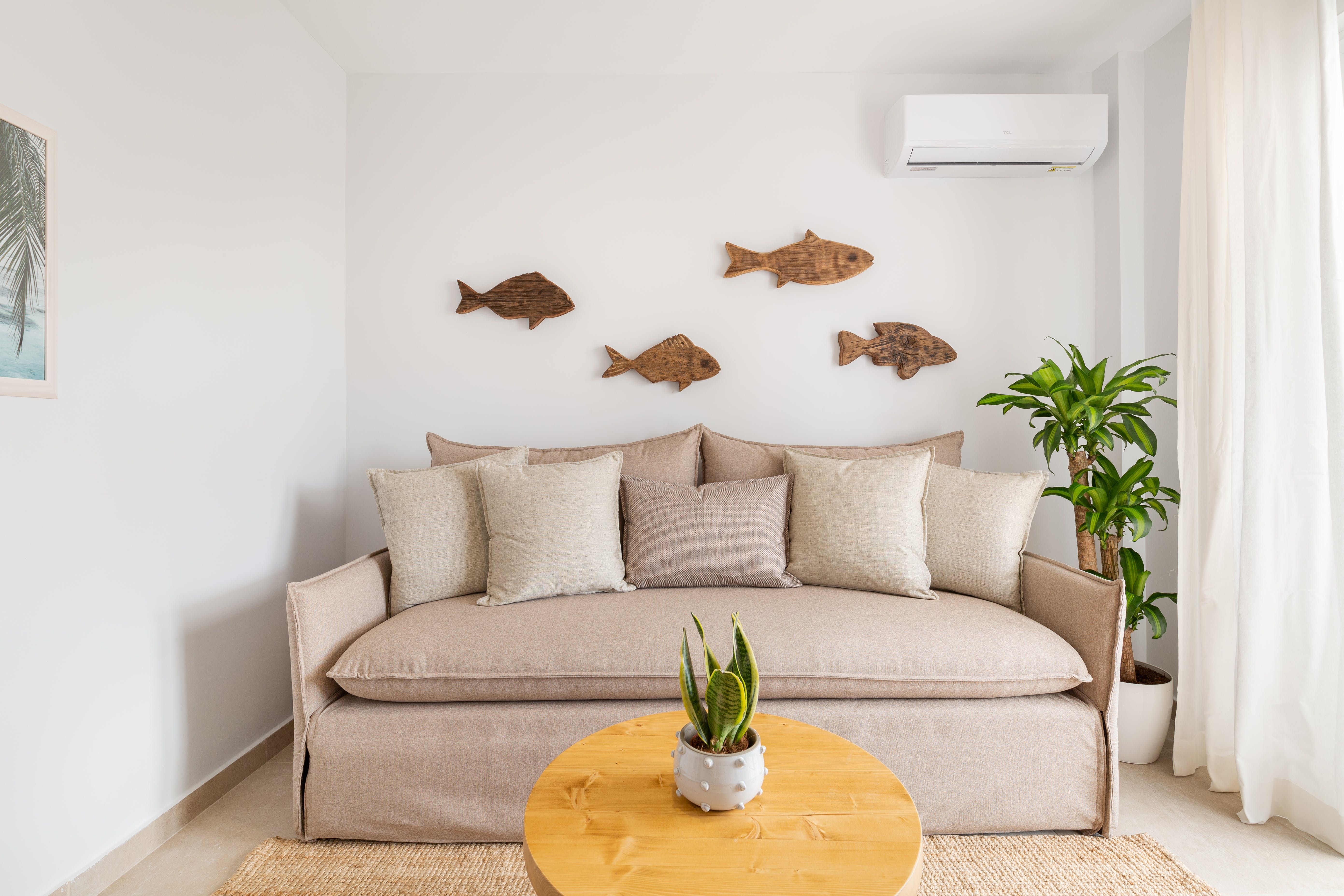 Inside, the decor is pared-back yet effortlessly stylish, emanating relaxing beach vibes with the living room’s fish ornaments and the kitchen’s glossy green tiles. With a pair of comfortable bedrooms and a sleek bathroom to get your days off on the right foot, you’ve got everything you need for a carefree stay.