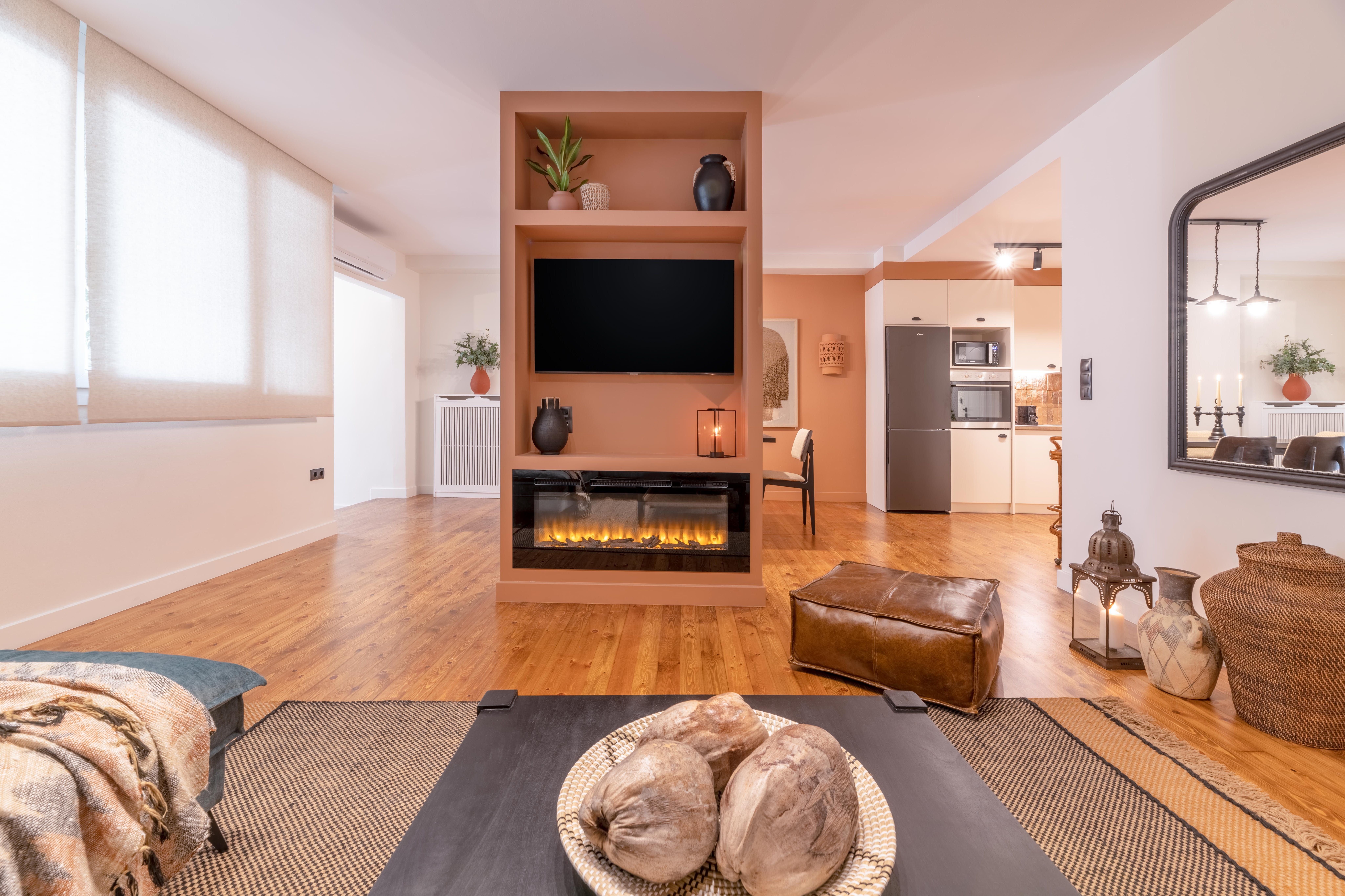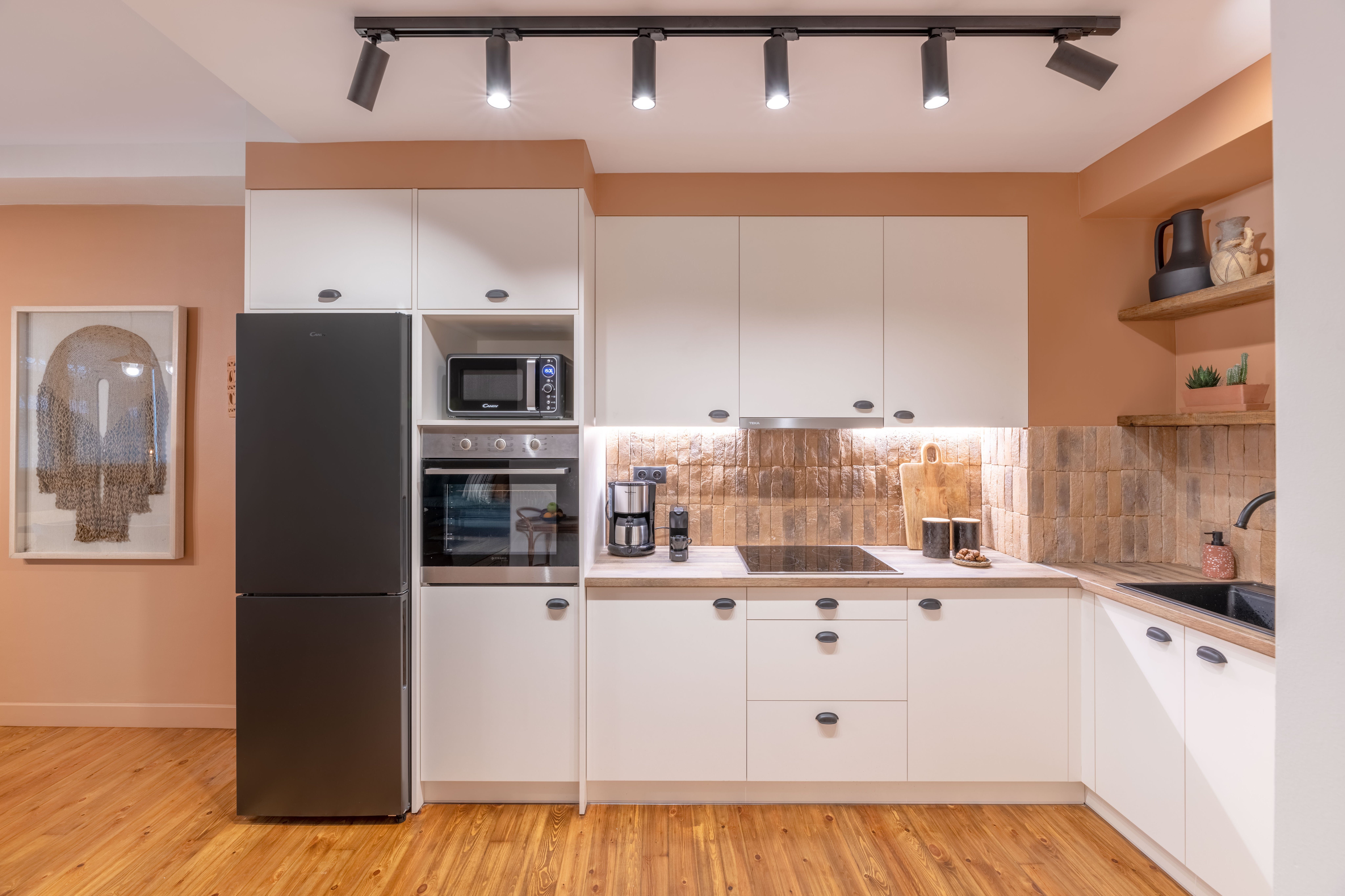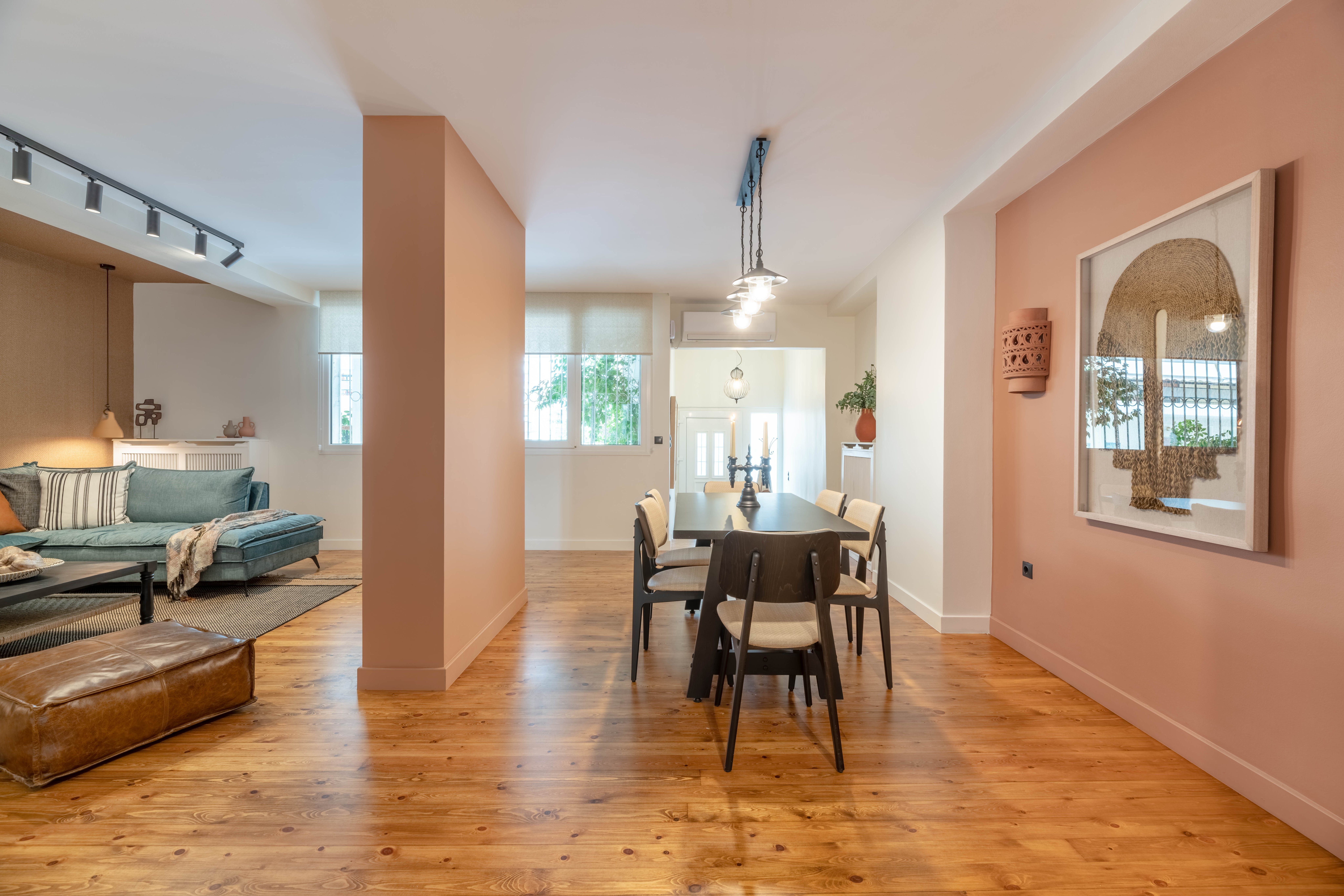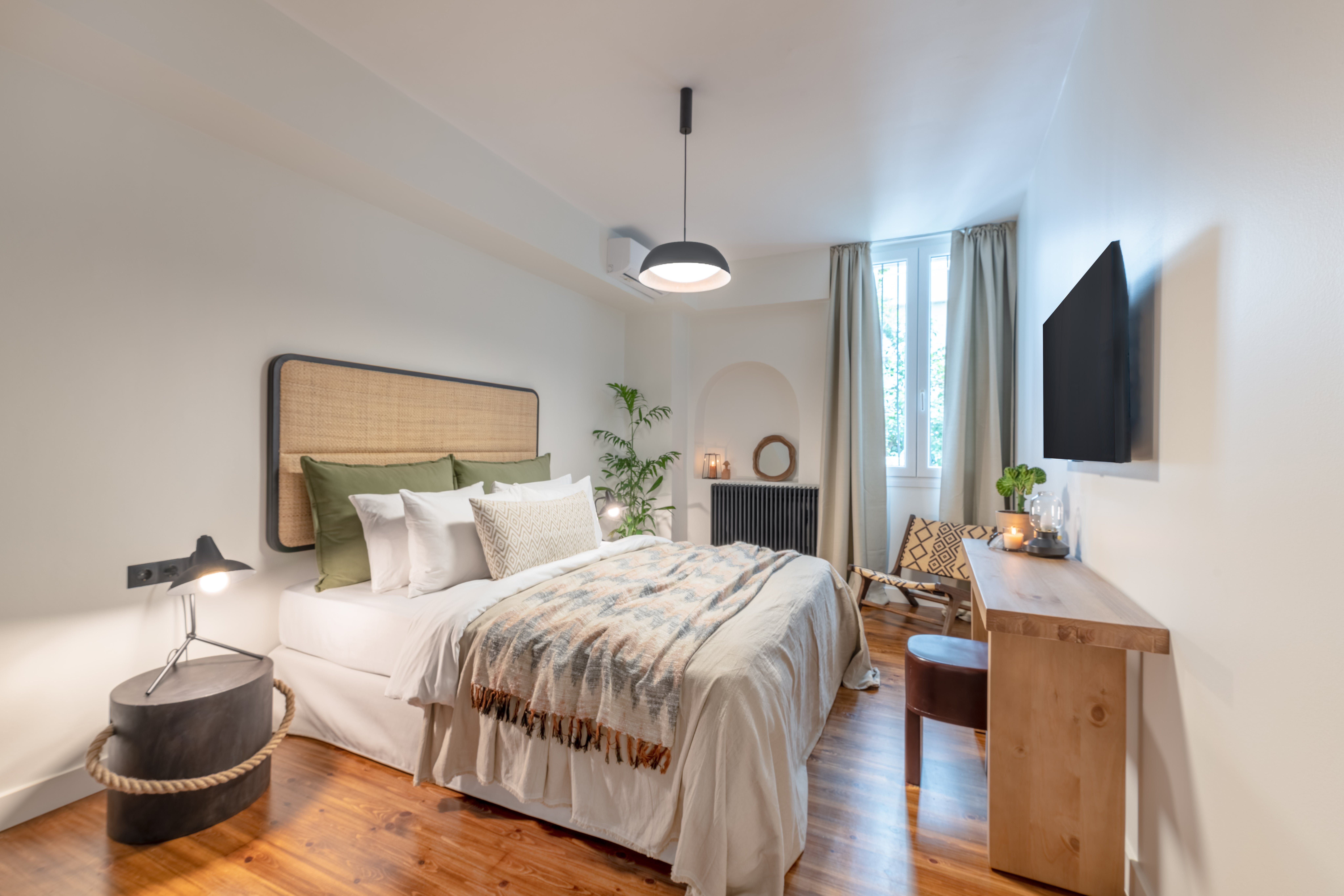 Back at this home, relax on the patio with a glass of wine. Inside, the palette of warm hues is welcoming, and plenty of cushions, throws and plants create a homely vibe. If the Athens air turns chilly, cosy up by the fire on the chaise sofa. When you prefer to eat in, whip up some tzatziki in the blender and enjoy it with some saganaki at your dining table. This home is ideal for two couples, a family or business professionals looking for a sought-after and well-connected address.