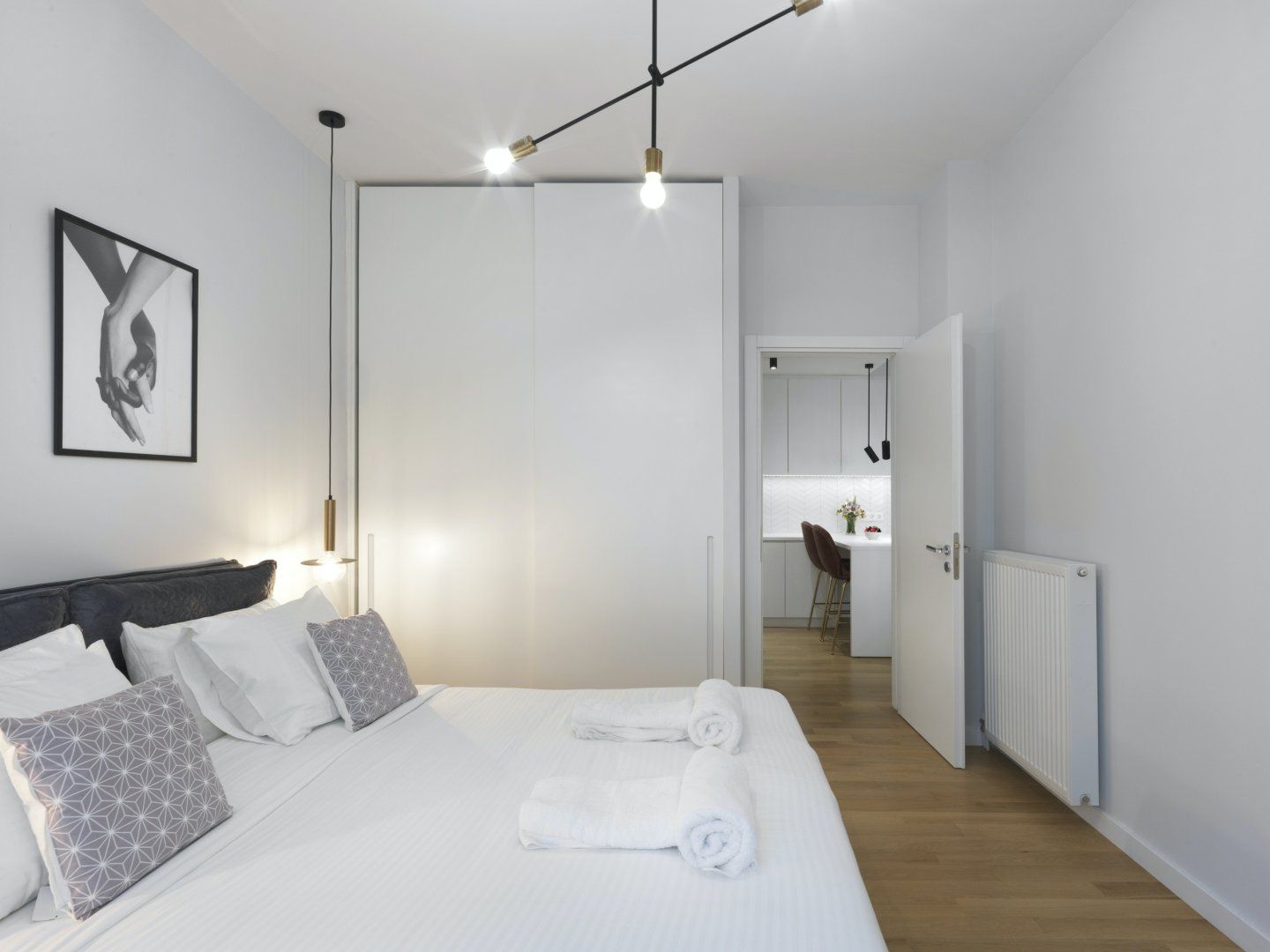 You couldn’t be better placed to explore the cultural and historic delights of Athens than this bright, modern apartment located in the city’s Koukaki neighbourhood. Dazzling white walls adorned with art prints, wood floors and contemporary decor combine to create a welcoming impression in the open-plan living area. Ample natural light pours in through the glass doors that lead out onto a balcony. Start mornings here with a fresh cup of Greek coffee or enjoy a glass of ouzo as you people-watch from above before setting out to sample one of the local restaurants for dinner. With a sleek, pared-back bedroom and a rainfall shower to boot, you’ve got everything needed to enjoy city living in style.