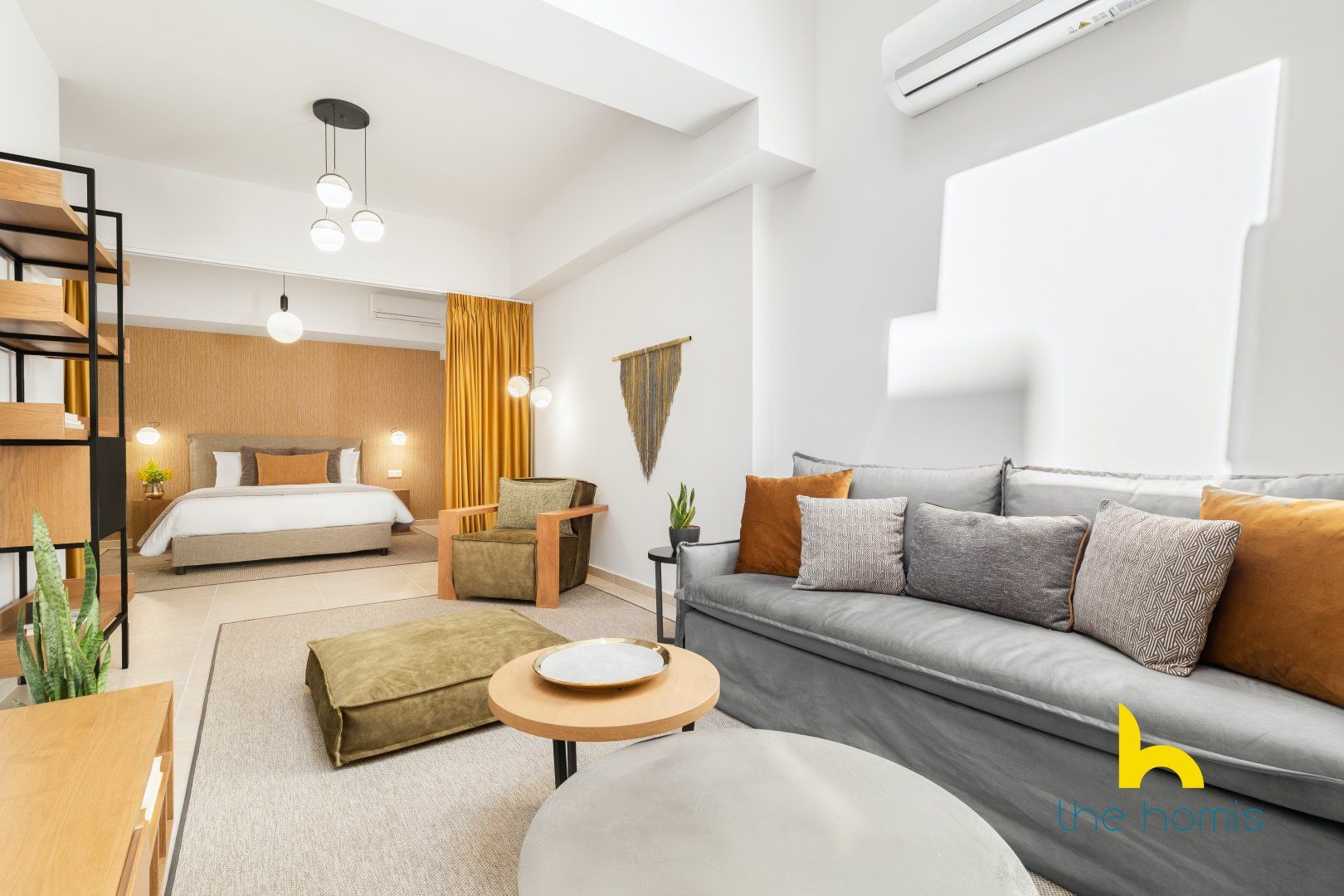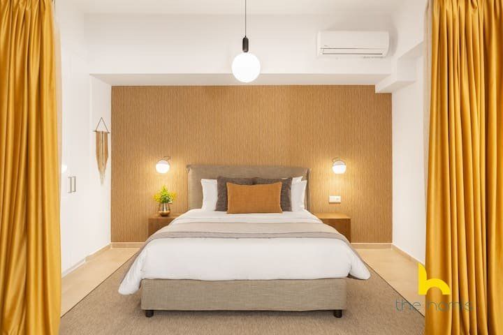 Minimalist and beautifully unpretentious, this warming apartment beats in the heart of Athens. An earthy palette and neutral tones create a cosy ambiance, touched with high-quality fittings and modern technology. It's the perfect place to explore this vibrant metropolis.