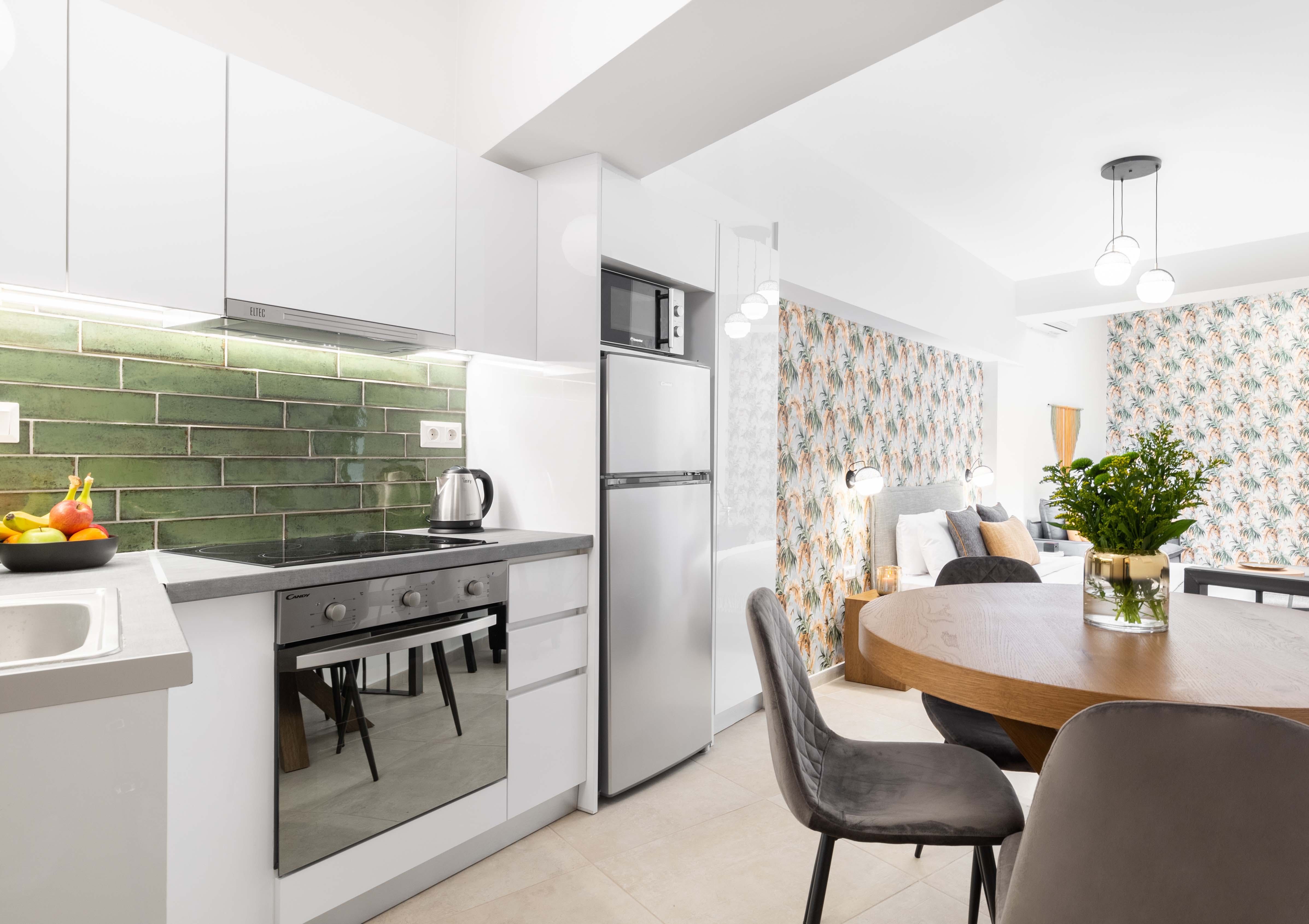 Situated in the lively Makrigianni neighbourhood, this eclectic studio apartment has Athens’ most iconic sights within easy reach. Inside, it’s fresh and modern thanks to the botanical print wallpaper, earthy colour palette and natural materials. Wake up feeling refreshed in the hotel-quality bed and start your mornings with breakfast in the neat kitchen-diner. Finish your morning coffee from the comfort of the loveseat.