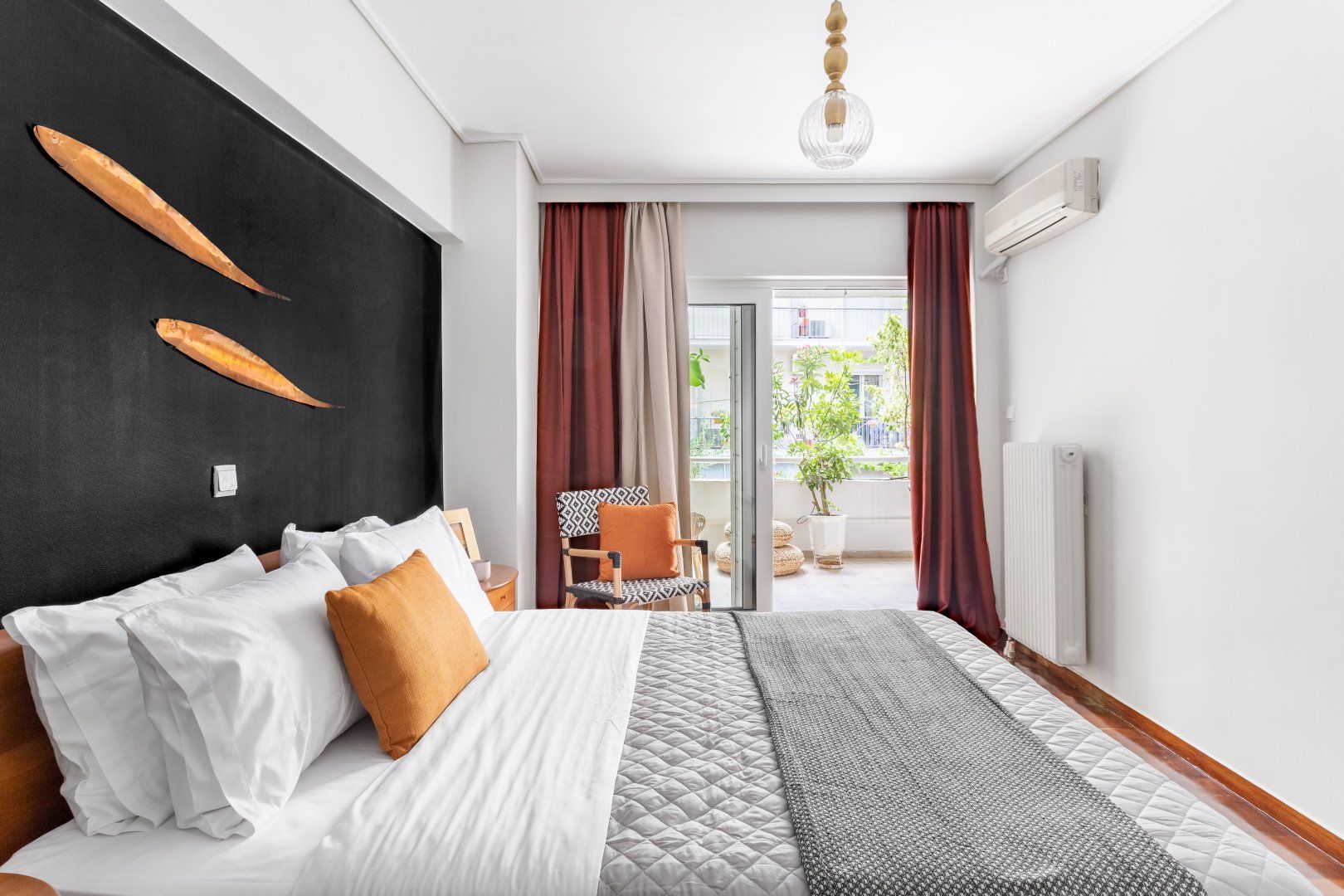 The interior is a fusion of classic charm with a modern twist. When you need to refuel, you can whip up some home-cooked Greek favourites in the kitchen to share at the chic dining table. Afterwards, head out onto one of the two balconies to enjoy a glass of Greek wine in the sunshine. Or, if you're visiting during the colder months, you can curl up beside the fireplace and get cosy.