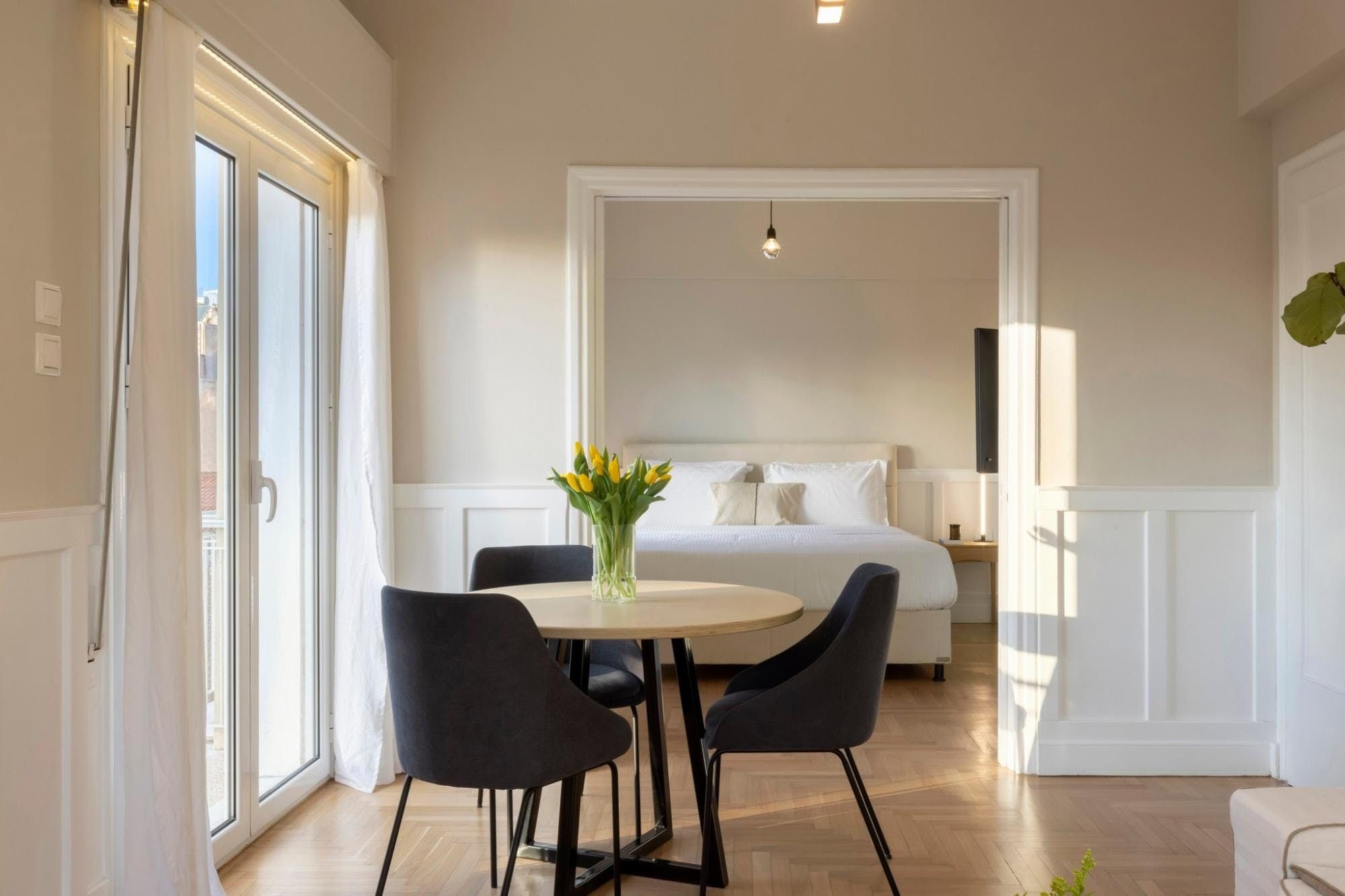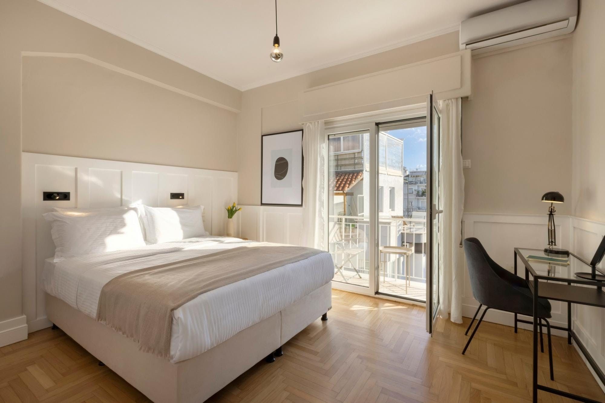 Just take a look at the Acropolis views from this apartment's balcony and you'll see why it caught our attention. There are also vistas from inside, and there's access to the balcony from one of the bedrooms – name a better way to wake up each morning. The kitchen is galley style, relatively compact and somewhat dated, but it has everything you need. And, of course, you'll be located in the heart of Athens in one of the most upmarket districts of the capital and just steps away from restaurants. You'll also find nearby boutiques, museums and a metro station easily accessible on foot.