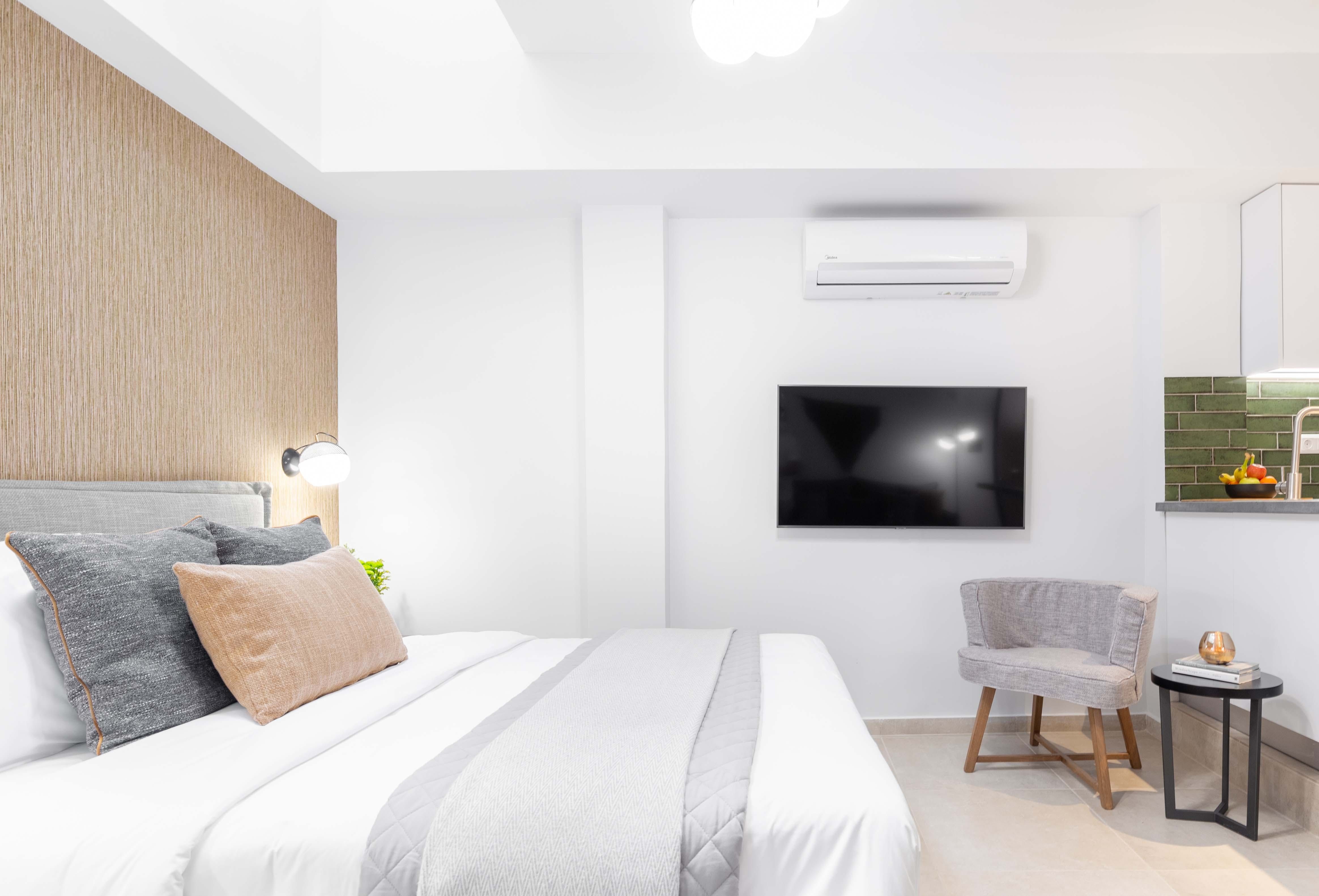 The apartment itself is thoroughly up-to-the-minute with its funky botanical print feature wall, sleek mod-cons and stylish furnishings. The comfortable living area is a treat to return to at the end of a busy day spent exploring, and the neat kitchen has everything you need for rustling up Greek-inspired dishes. When it’s time to call it a night, there’s nothing better than falling into the hotel-quality bed and drifting off into a deep sleep.