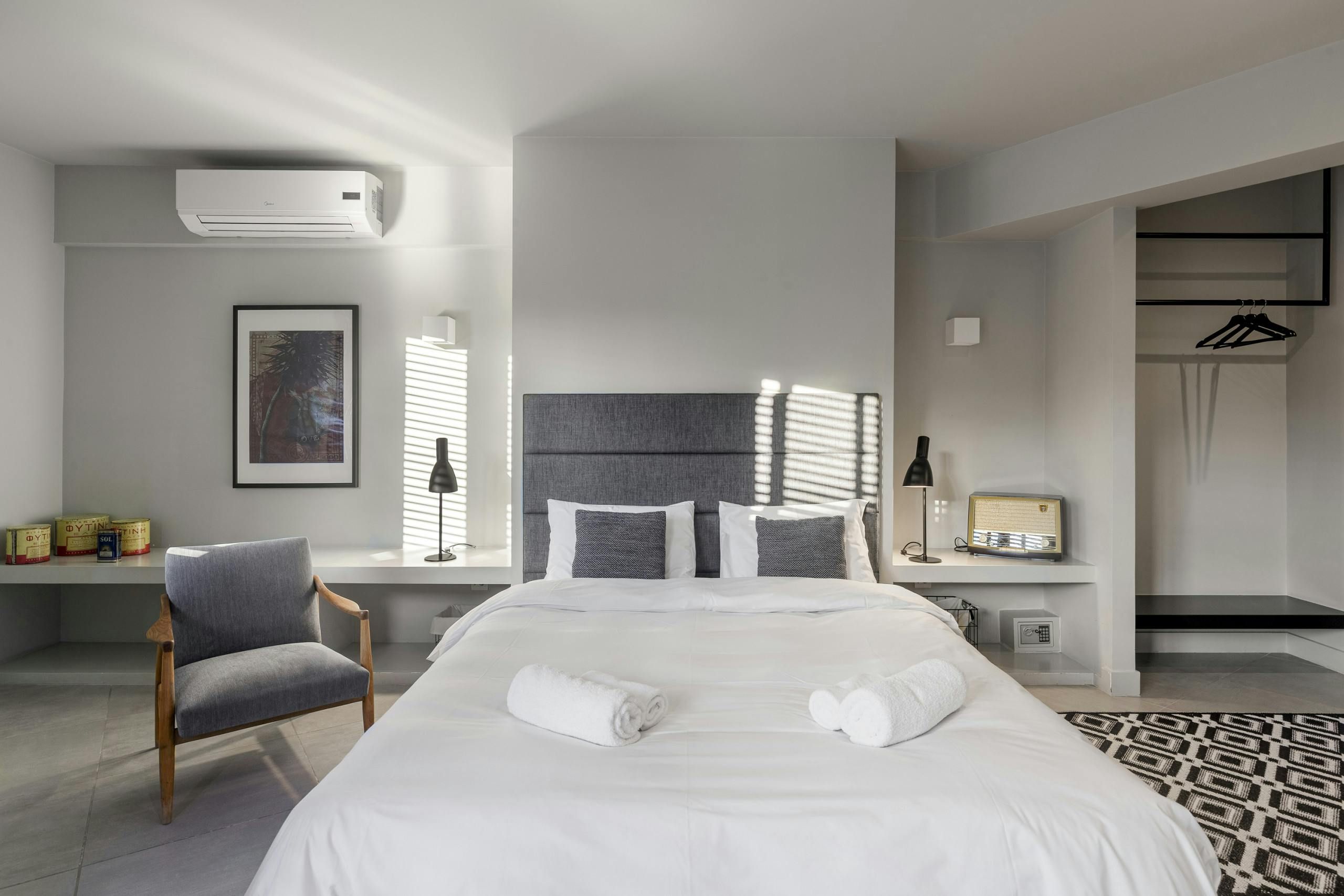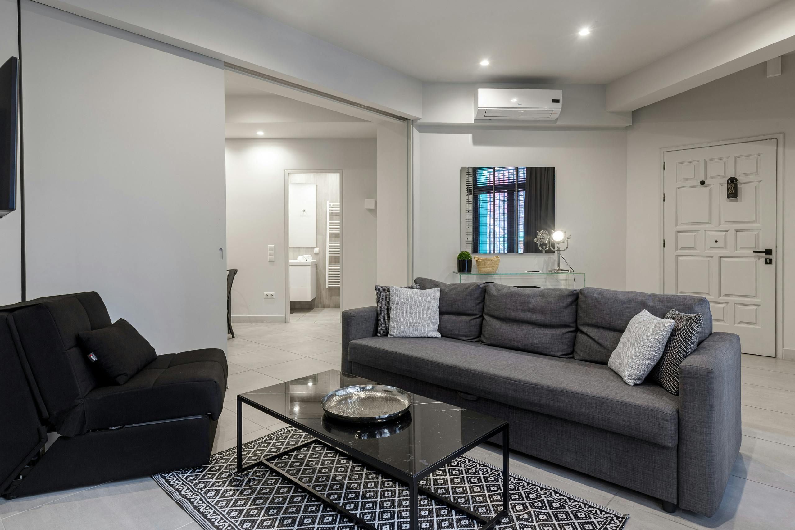 This home is all about the location – from the communal rooftop terrace, shared with two other apartments, you can gaze at the Acropolis. You can walk to most city attractions from here, and the pad will suit both those travelling for business and pleasure. The decor is corporate and minimalist here so those on the lookout for something cosy may prefer another option. Bear in mind that the living area will get a bit crowded at full occupancy – we recommend this home for a smaller group or a family.