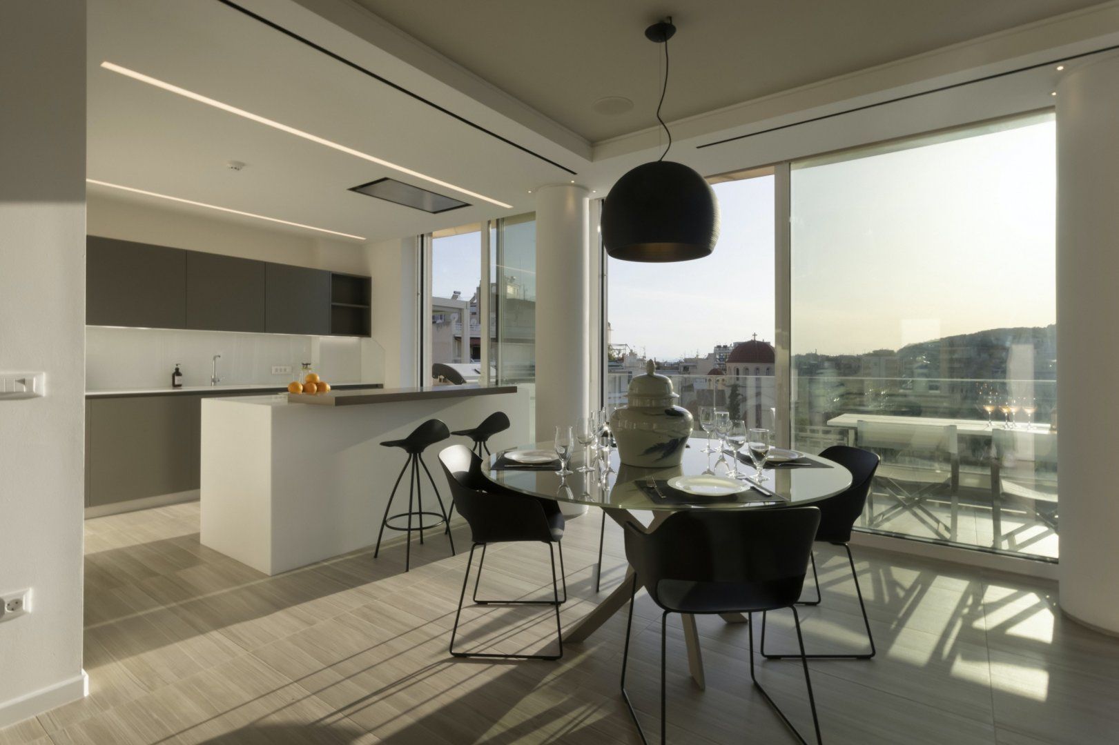 Vistas speak louder than words at this showstopping penthouse set in the heart of buzzy Athens. Offering up next-level views of the Acropolis rising majestically above the city, that vast private veranda has sundowners and sunset barbecues written all over it.
