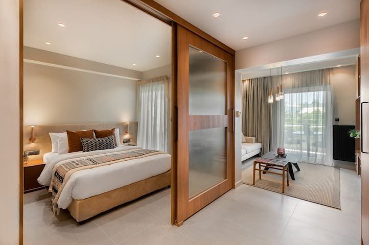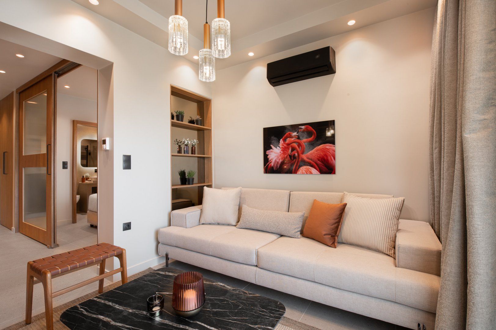 A new, high-spec apartment in one of Athens's cosmopolitan seaside suburbs, this home is as stylish as it is comfortable. Everything from the cabinetry to the lighting is chic and modern, with a sociable flow to the layout and great natural light. Set in a peaceful, residential spot, just a five-minute walk from the cafes and grocery stores and less than thirty minutes from Voula Beach on foot, it's a great choice if you're looking to stay on the outskirts of Athens (the city is around a forty-five-minute drive).