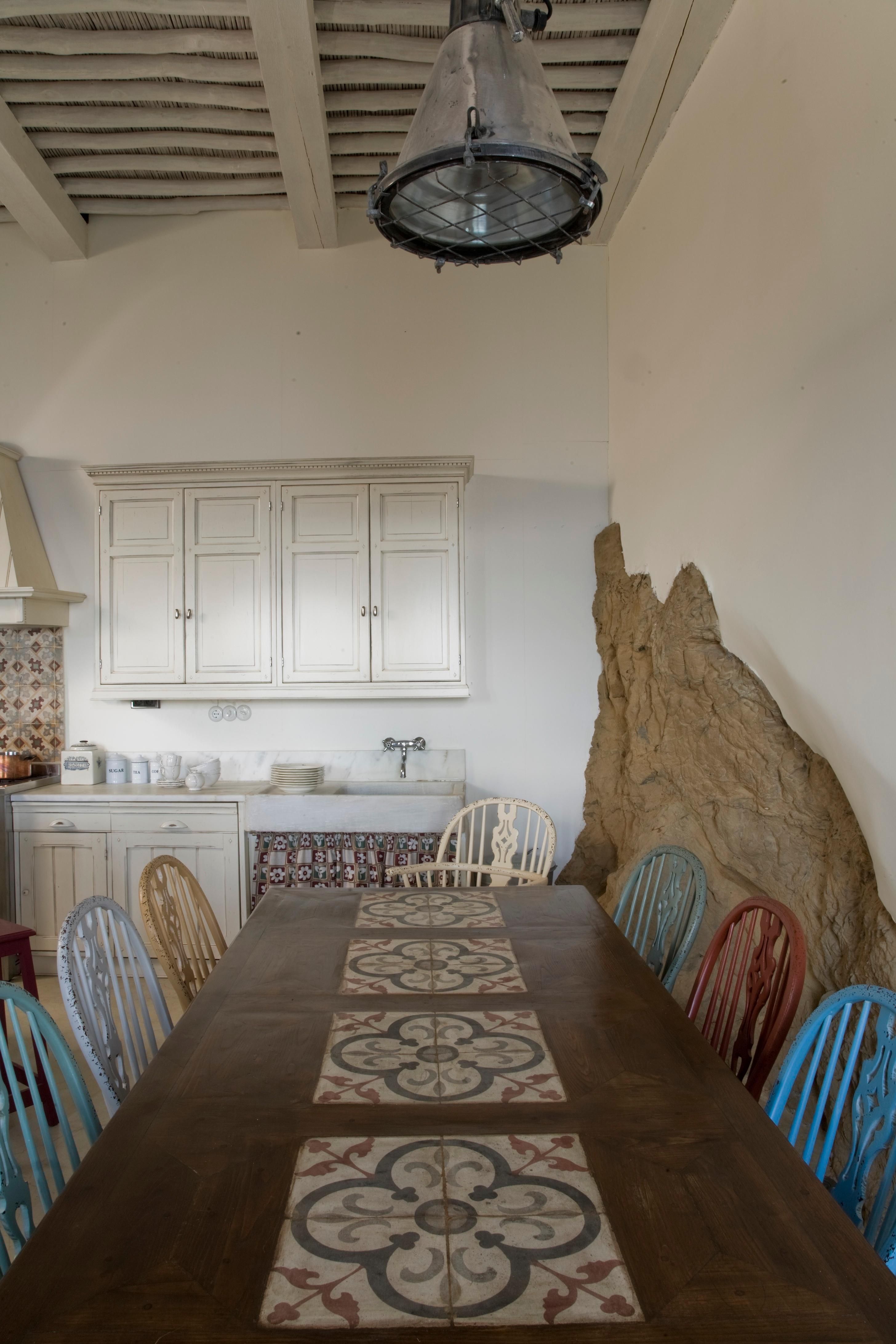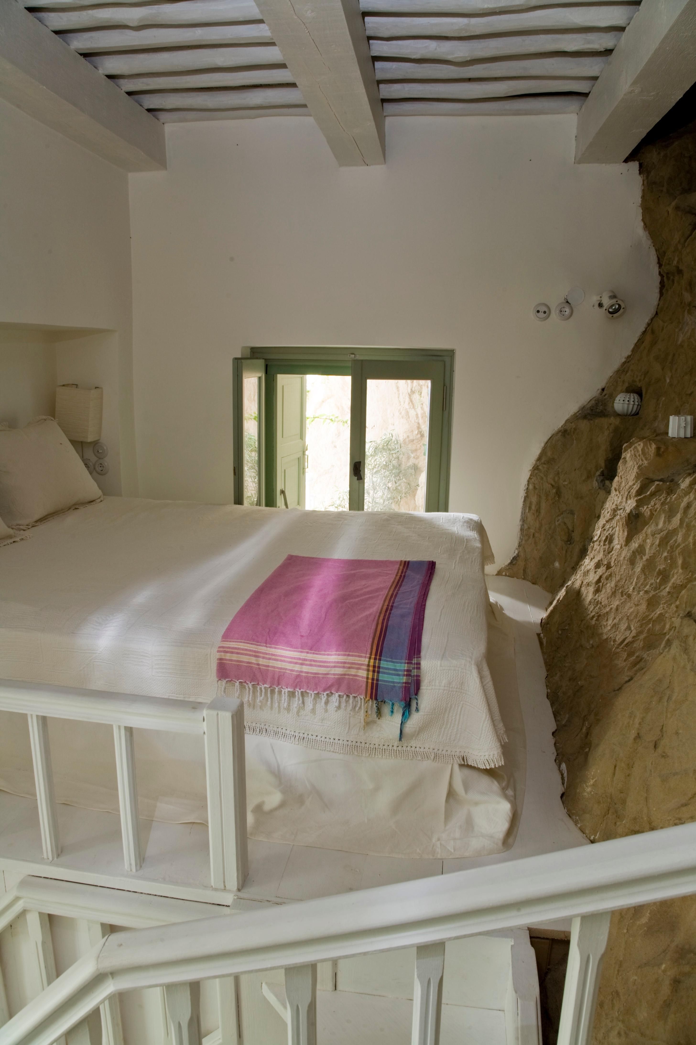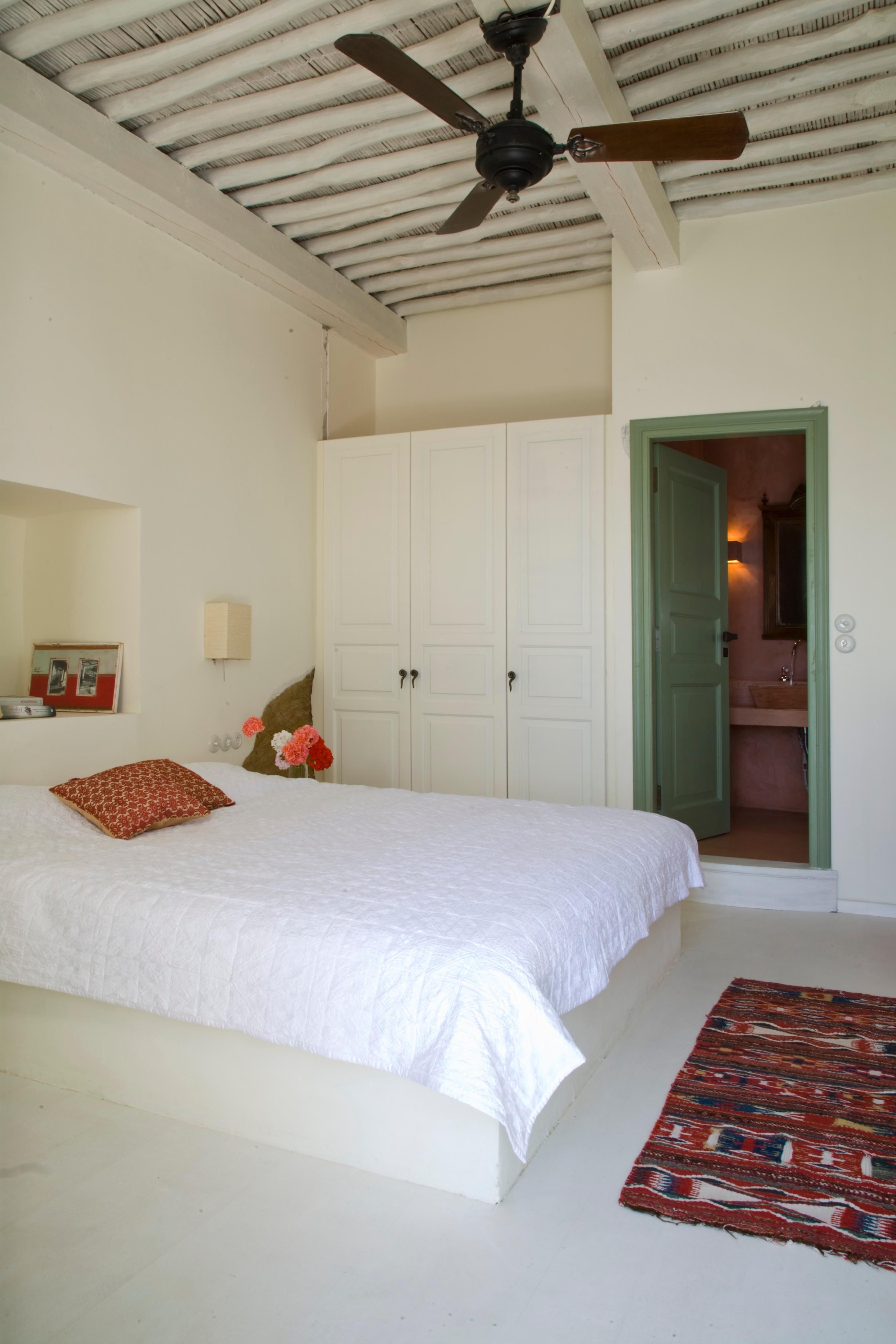 Some typically Skyrian architectural features have been retained — including a large patch of exposed rock in the dining room — but it's fair to say that the interior has been modernised over the years. This means that you'll find whitewashed walls, sleek bathrooms and a rather smart kitchen complete with an island.