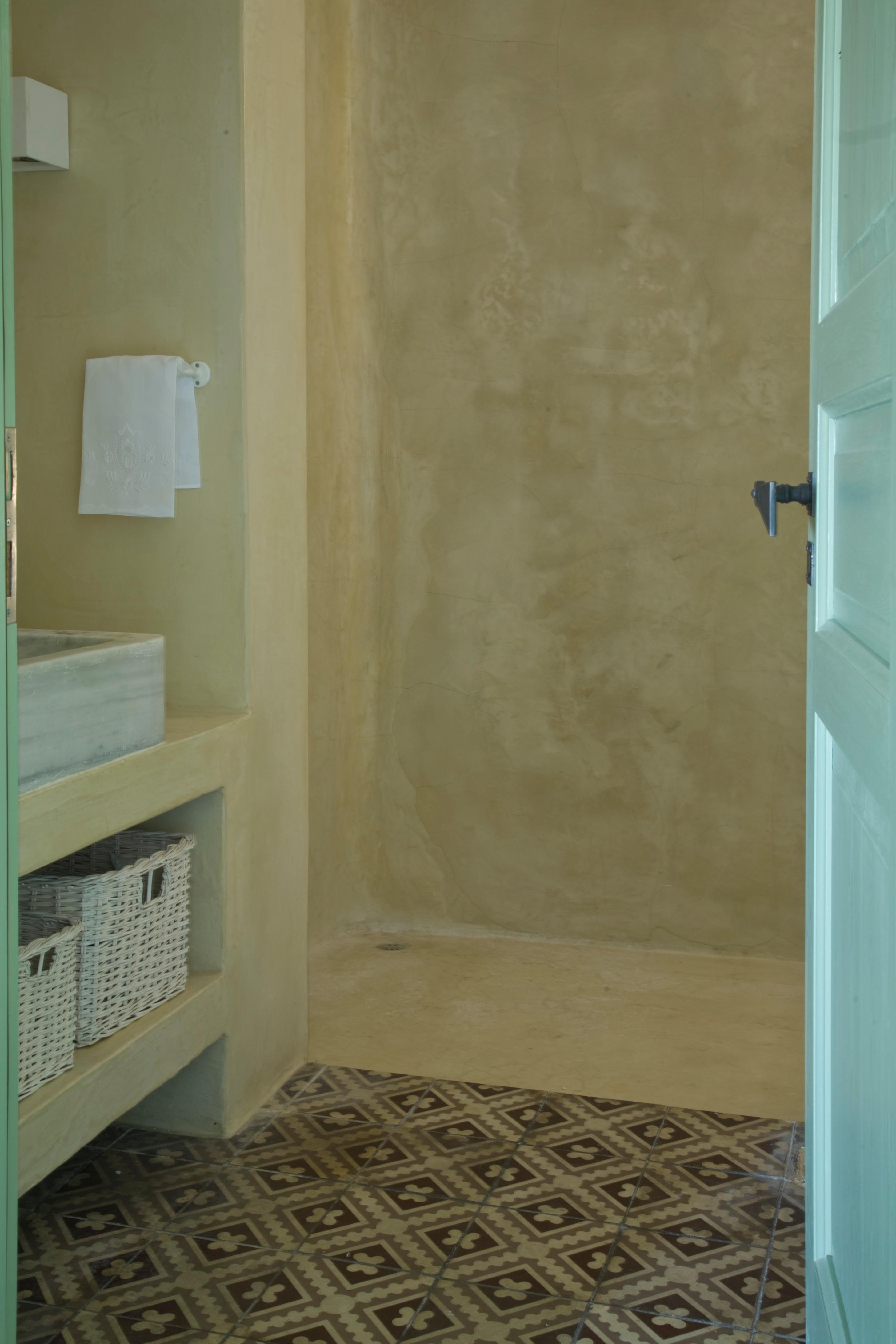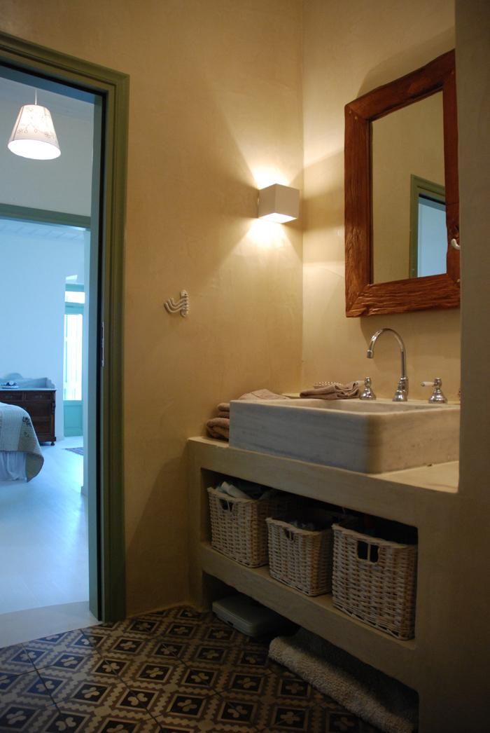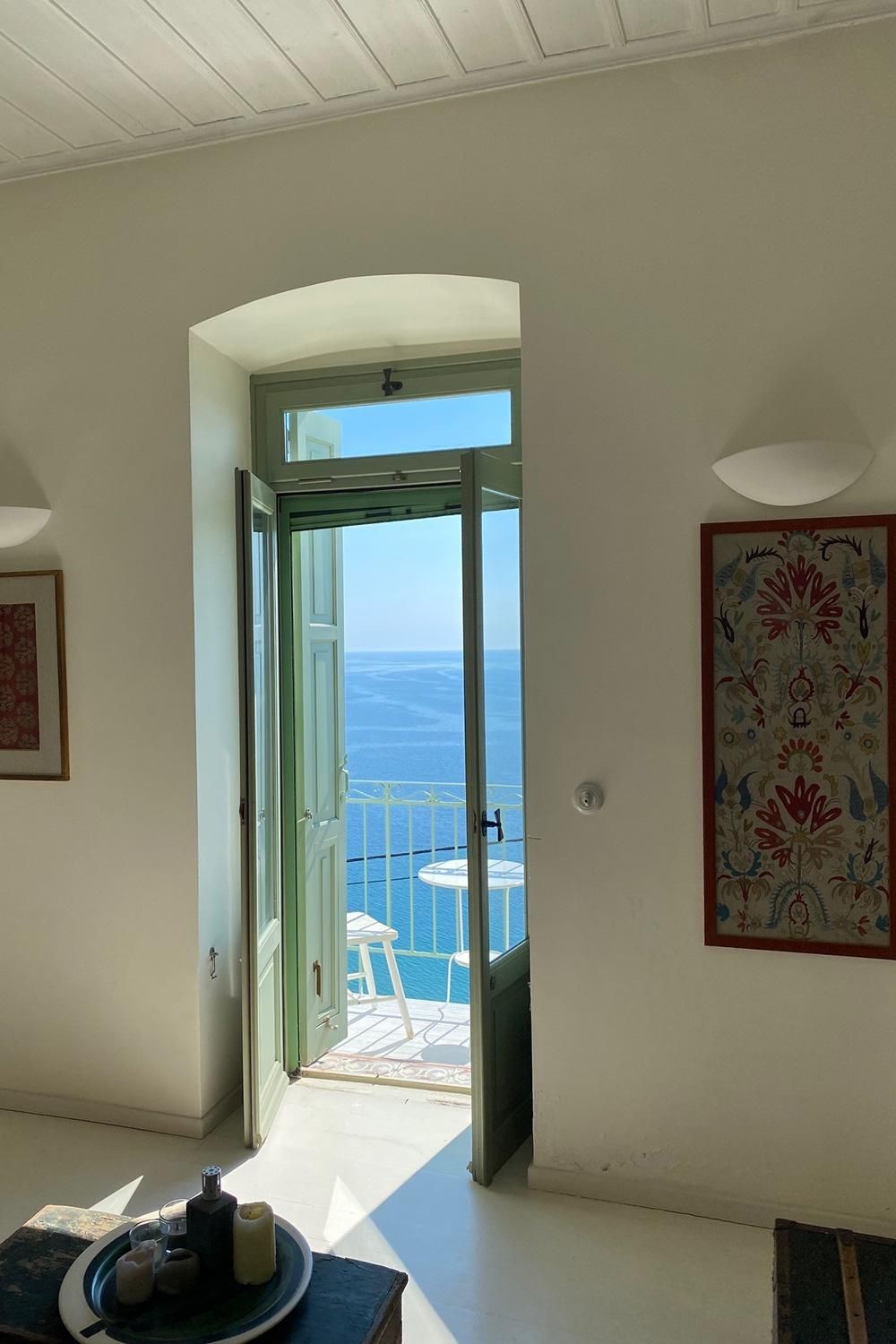 Some typically Skyrian architectural features have been retained — including a large patch of exposed rock in the dining room — but it's fair to say that the interior has been modernised over the years. This means that you'll find whitewashed walls, sleek bathrooms and a rather smart kitchen complete with an island.