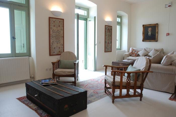 Found next to Brooke Square in Skyros Town, this villa was built way back in 1892 and it still overflows with charm more than a century on. Much of this is down to the stunning view of the Aegean Sea that comes with the elevated position, which can be enjoyed in the garden, balcony or even out through the large windows that also bathe the space in natural light.