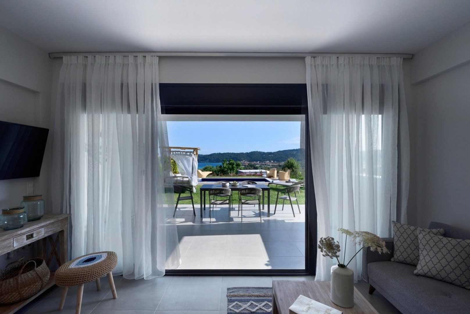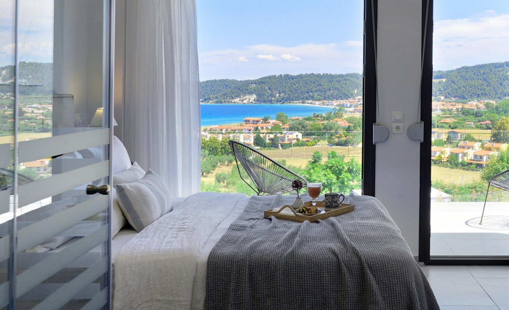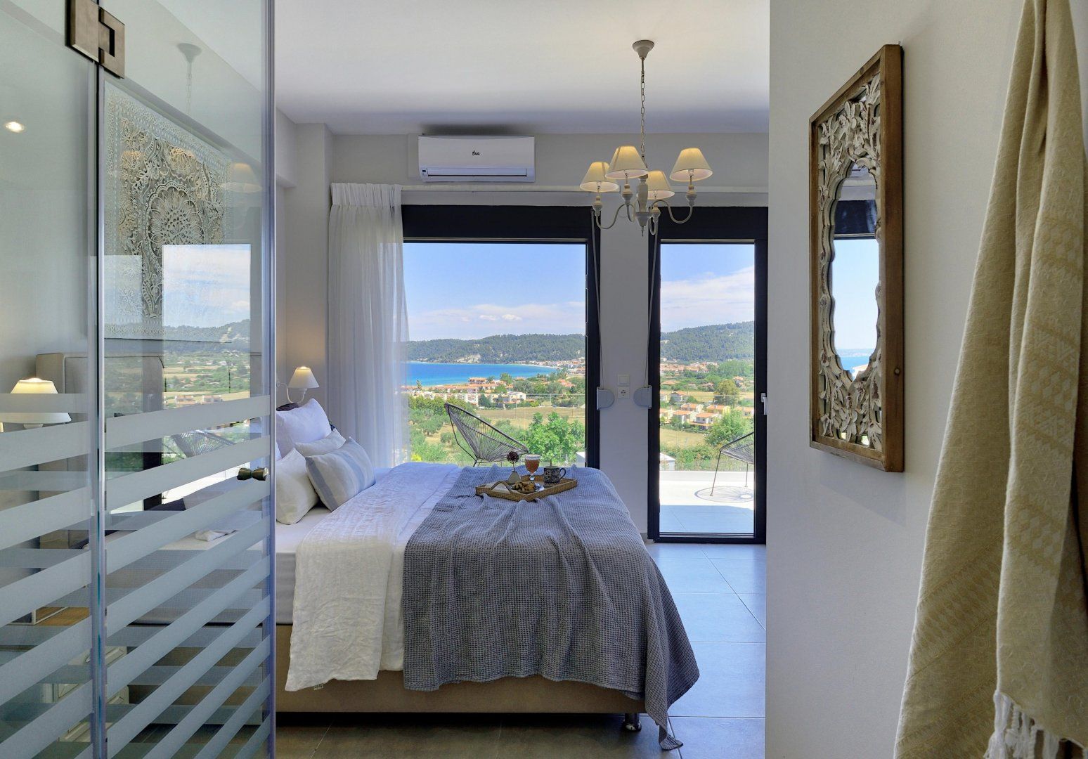 Set in a small, exclusive complex that features fifteen acres of grounds, this contemporary home has an incredible view of the Aegean. Sleek and super comfortable, it's the perfect spot if you value your modern luxuries. Here you'll be forever gazing out across the bay, with fabulous views from the terrace, private pool and bedroom balcony – where a glass balustrade and floor-to-ceiling bedroom windows make sure nothing detracts from the vista.