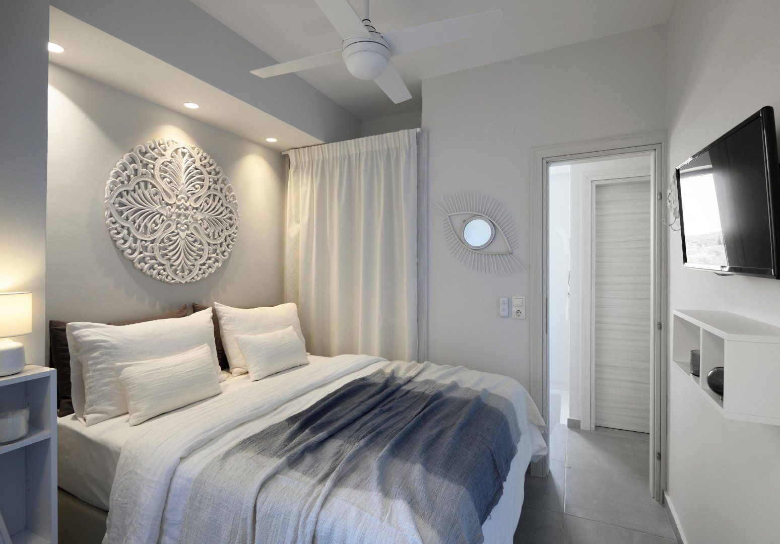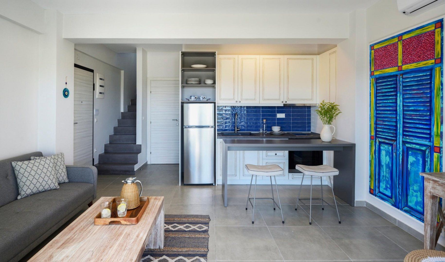 Inside, it's decorated in soft, calming tones, with comfy furnishings and a small, but practical kitchen. Touches of colour come in the form of typically blue Greek tiles in the kitchen and bathrooms. Perfect for a family, the lucky guests staying in the spacious master bedroom will have a stylish in-room wet room with a Jacuzzi shower, too.