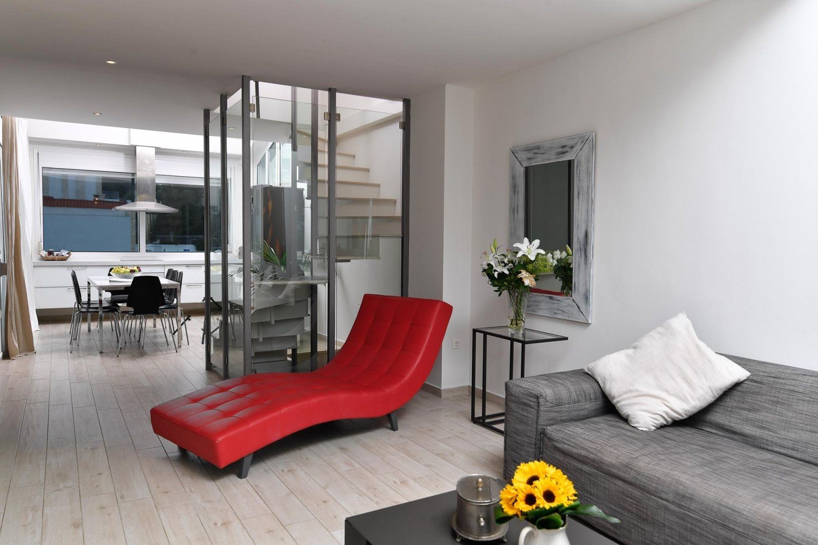 Out on the sundeck, there’s nothing but the cheep of birds in the trees and the trickle of the waterfall filling the pristine swimming pool. During the day, it’s all about lying on a lounger and soaking up the rays, but when the sun sets, the view is simply stunning with islands silhouetted against the ocean and sky. A corner wall of windows means you can enjoy this view from the kitchen while mixing some drinks for the group. The living room is a haven of modernity with a striking red chaise longue juxtaposed against the slate-grey sofa.