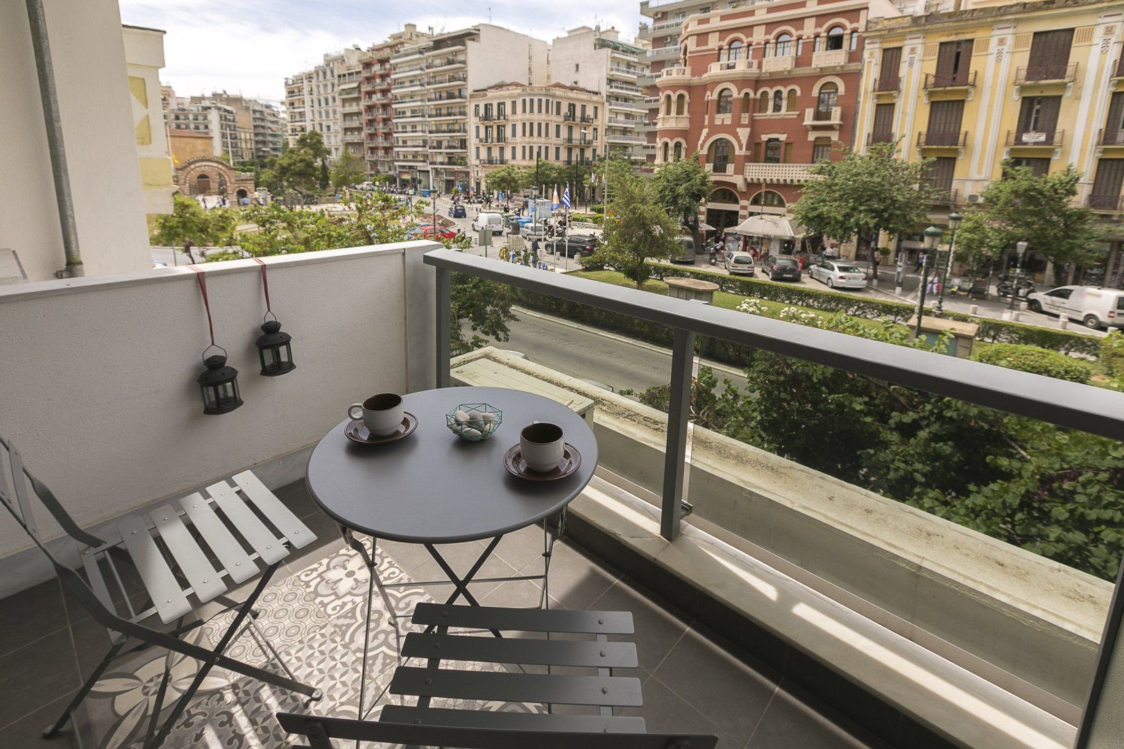 Sitting in an elevated position overlooking the historic streets of Thessaloniki, this trendy apartment provides a cosy home for a couple or a small family to return to after busy days spent discovering all this coastal city has to offer. It's super central too, so it makes a great base for visiting historic sites and sight-seeing spots. Contemporary and stylish, it features some cool artwork and soft furnishings that give it some character. Head out to the balcony and enjoy gazing out over the city – the ideal place to watch the sunset from on sleepy evenings in.