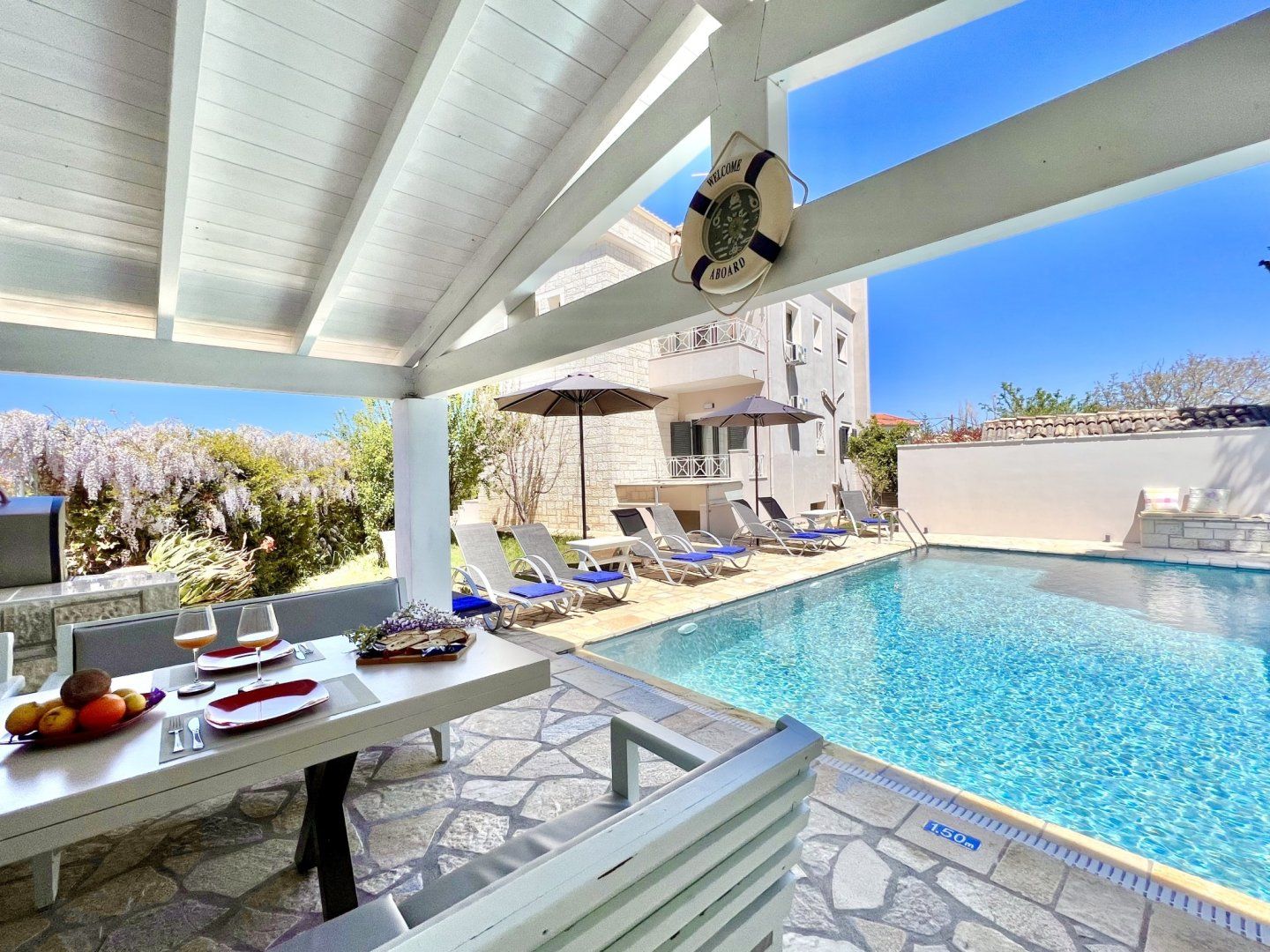 If the Greek sun becomes a bit too much, a dip in the sparkling pool will leave you feeling refreshed in no time. Standing out from the crowd is our favourite spot – the undercover terrace. Equipped with a barbecue, second kitchen and sweet seating, it makes for wonderful days and evenings dining alfresco. Imagine the homemade treats you could rustle up here – a place to make memories, seasoned with joy and laughter.