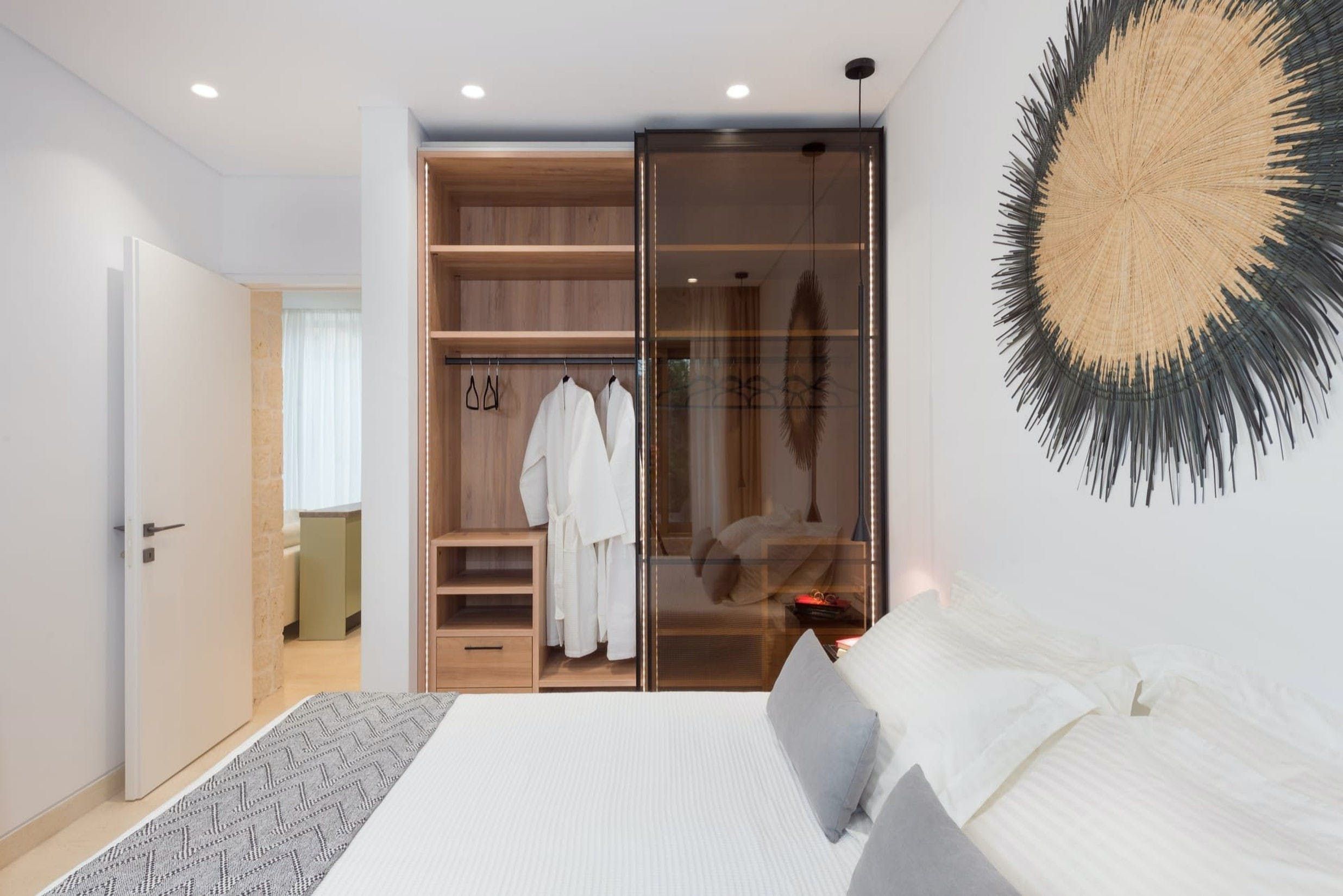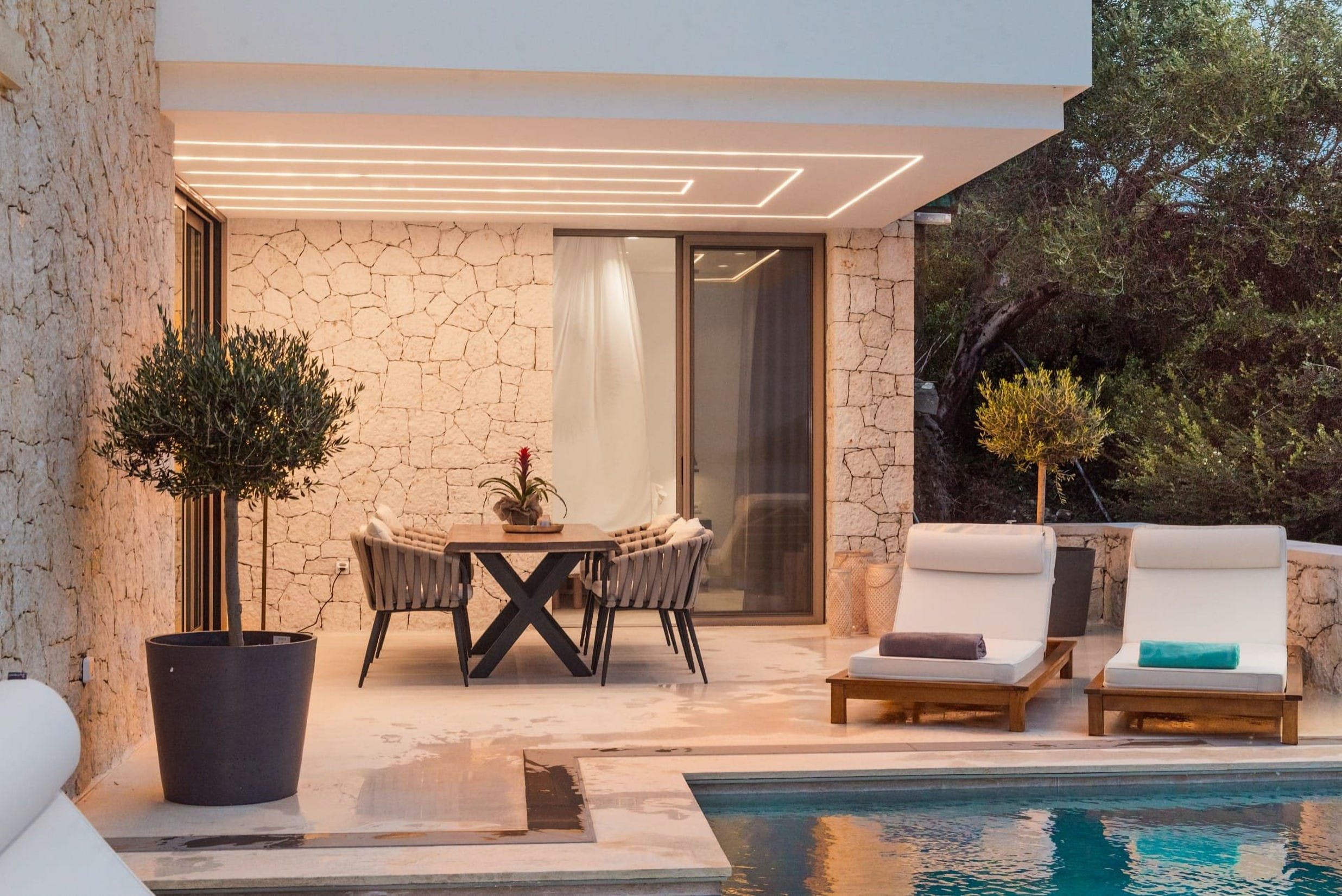 Perched on a hill alongside two other villas, this contemporary home is an escape from it all. Choose to stay here, and you won’t ever tire of the endless sea views – or the private pool, for that matter. If the sight of the sea tempts you, you’ll find Agios Georgios beach a short distance away. With its blue flag status, it’s an ideal choice for the whole family. And the added bonus for us? You’ll find a selection of restaurants dotted along its four-kilometre stretch for a true taste of island cuisine.