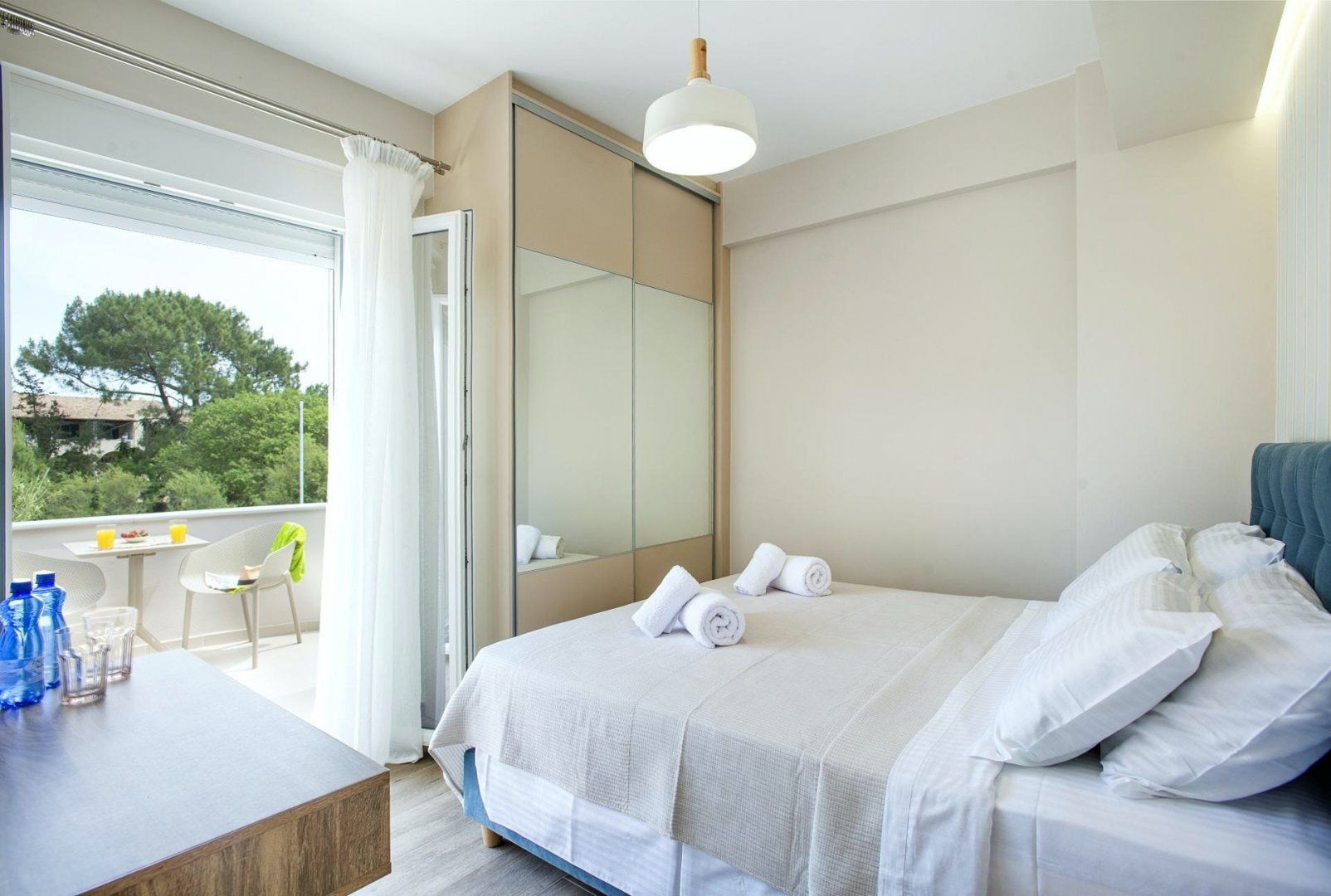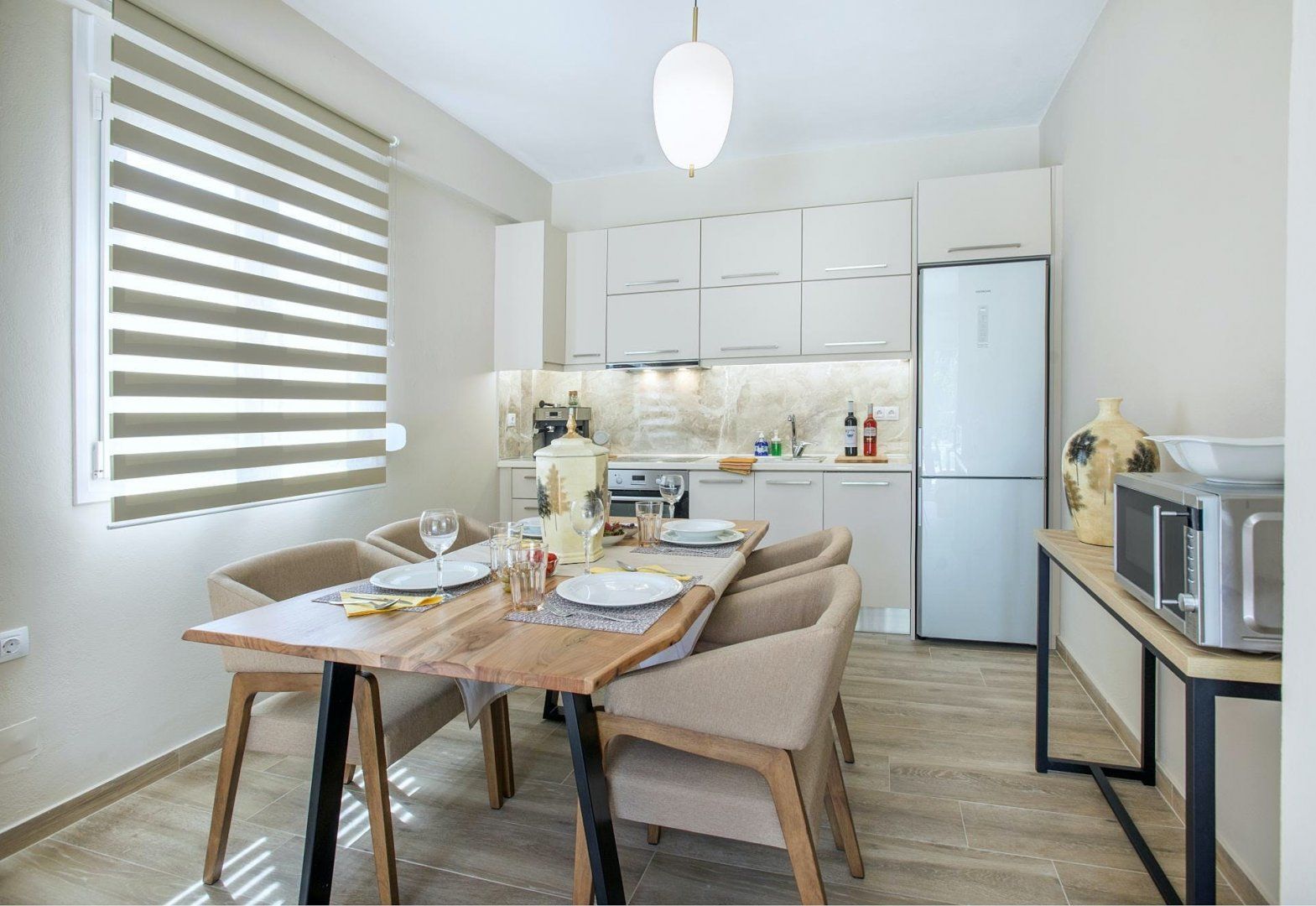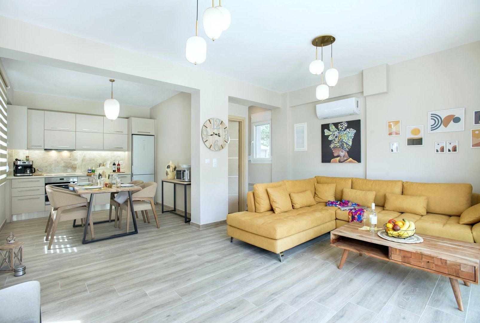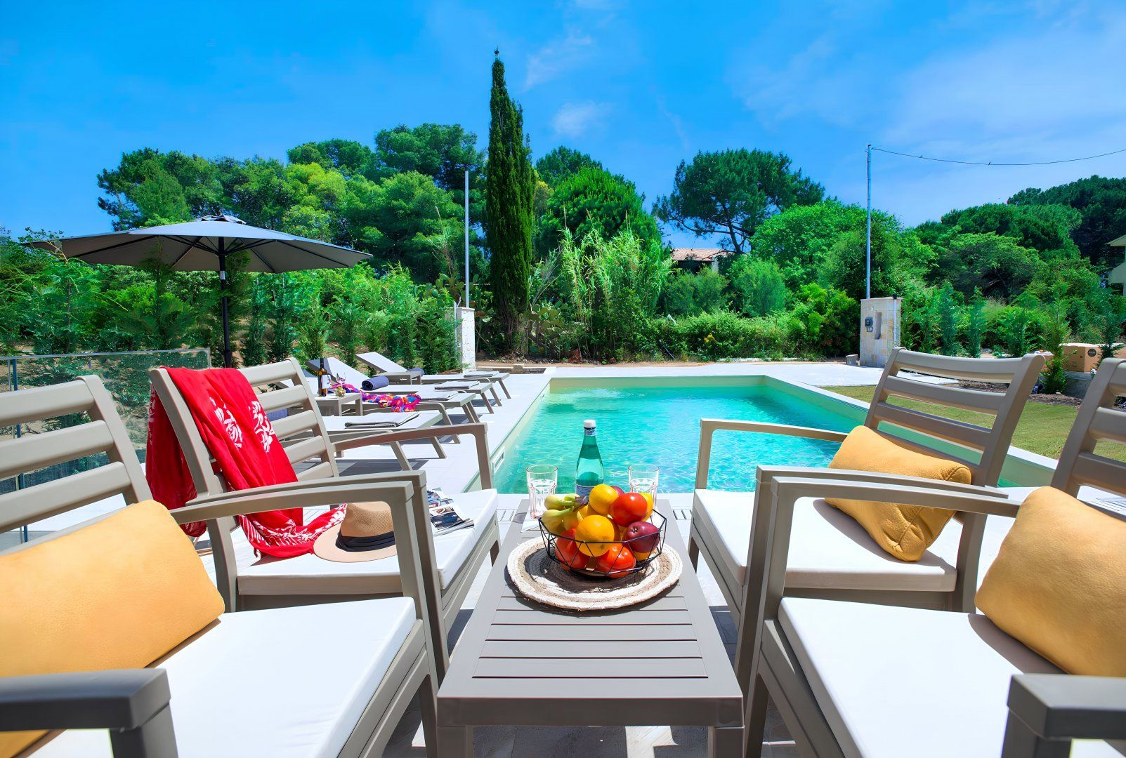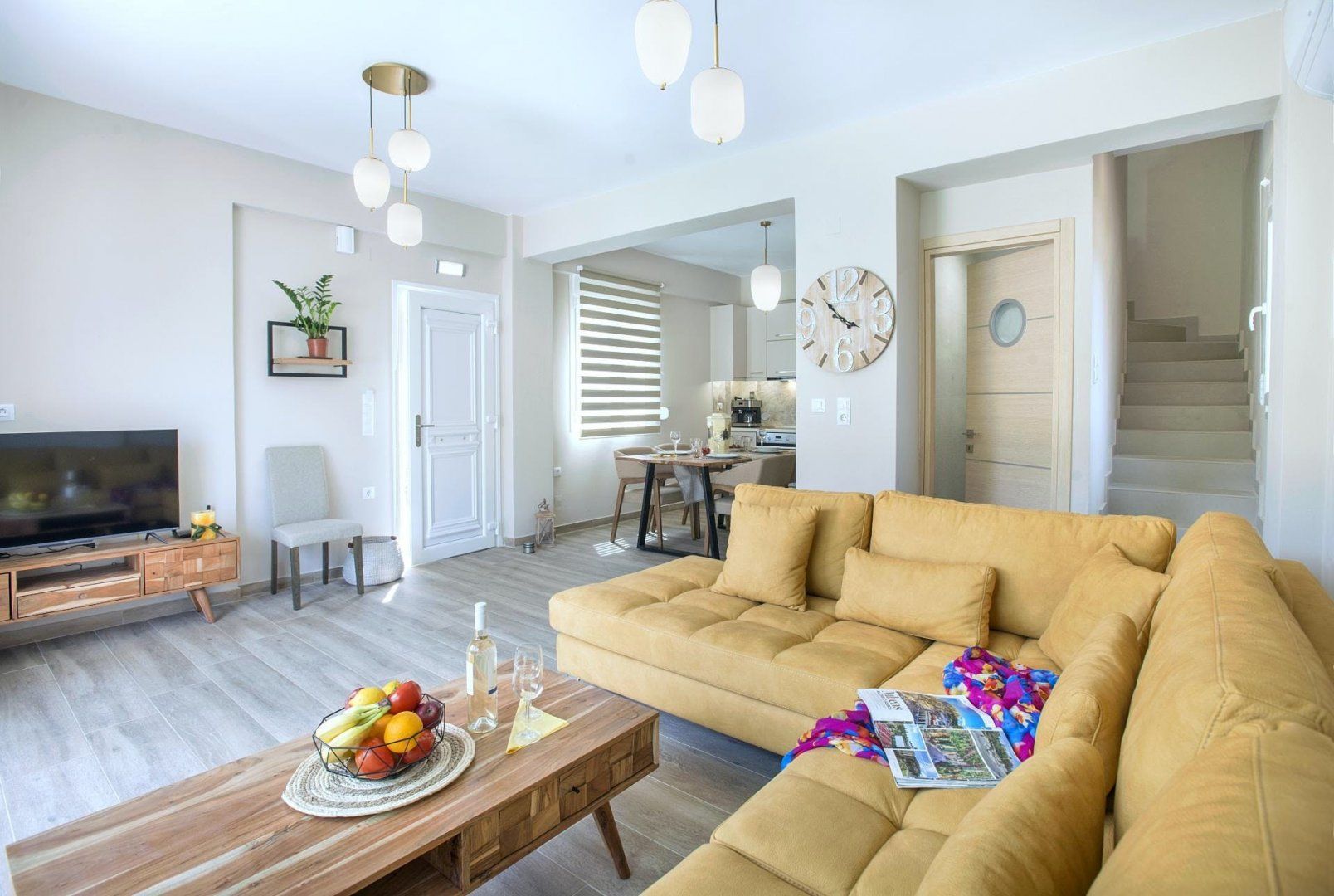 This contemporary villa boasts an enviable location. Within walking distance of the picturesque Saint George Argyrades, you’ll have over nine kilometres of sandy beach at your feet where you can try a range of water sports. The lively resort of Agios Georgios is also within walking distance, where you’ll find an array of shops, bars and tavernas. You’re surrounded by unspoiled countryside as well, meaning you can enjoy a varied itinerary if you like. The home itself has everything you need to relax, from a private, heated swimming pool to a balcony offering picture-pretty views.