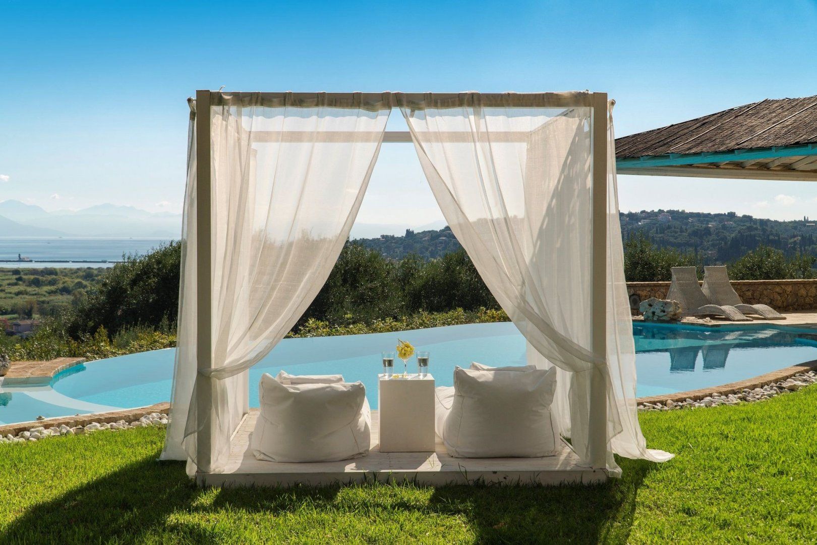 We are totally smitten with this stunning Corfu villa, and with just one glance at the outdoor space, you'll see exactly why – the beautiful infinity pool, the flowing white curtains and the views over the hills and houses of picturesque Corfu, all work to make this home feel like a true paradise. It's based in a peaceful and pretty spot, just a short drive from the beach in the idyllic village of Kastania.