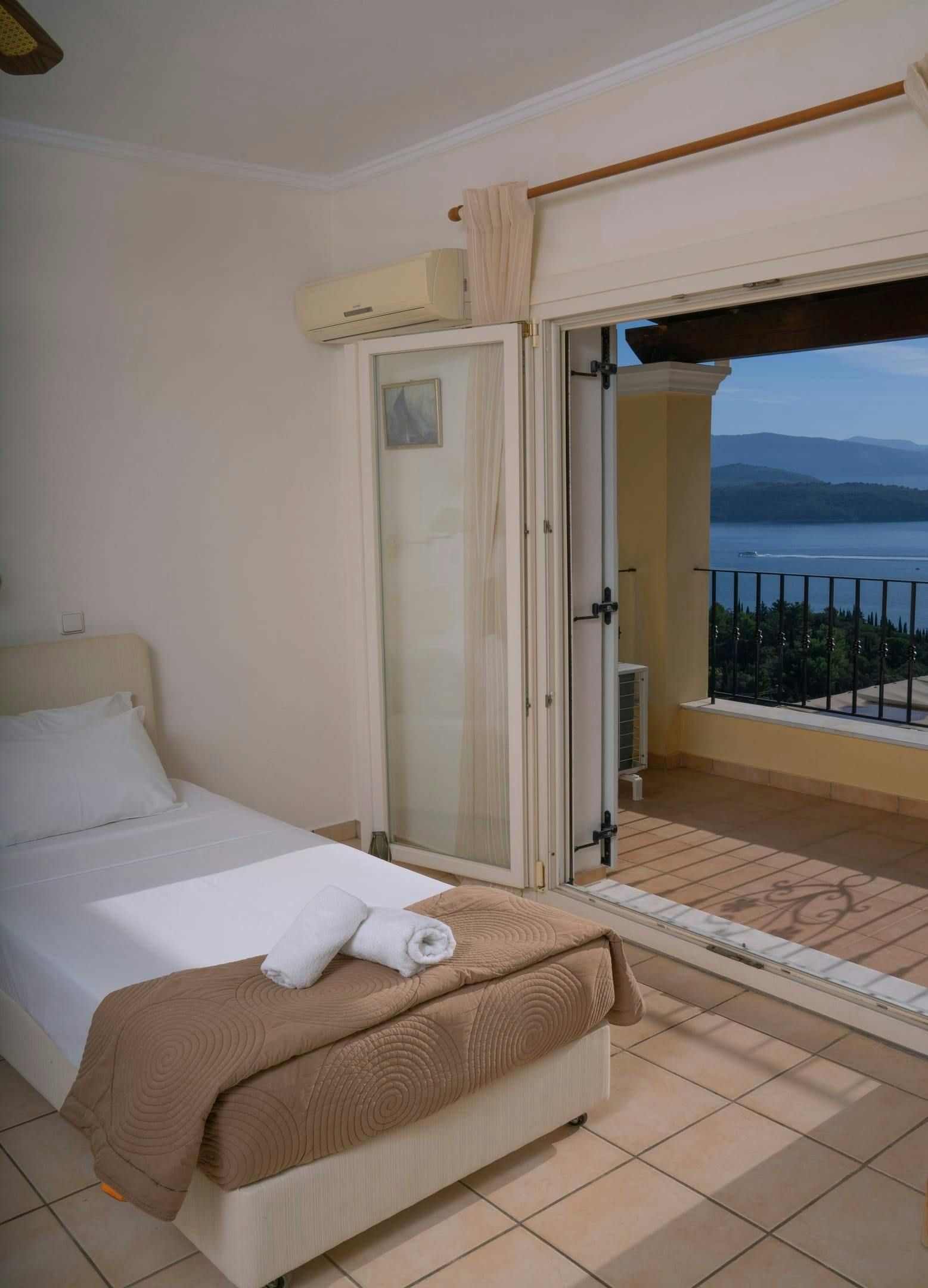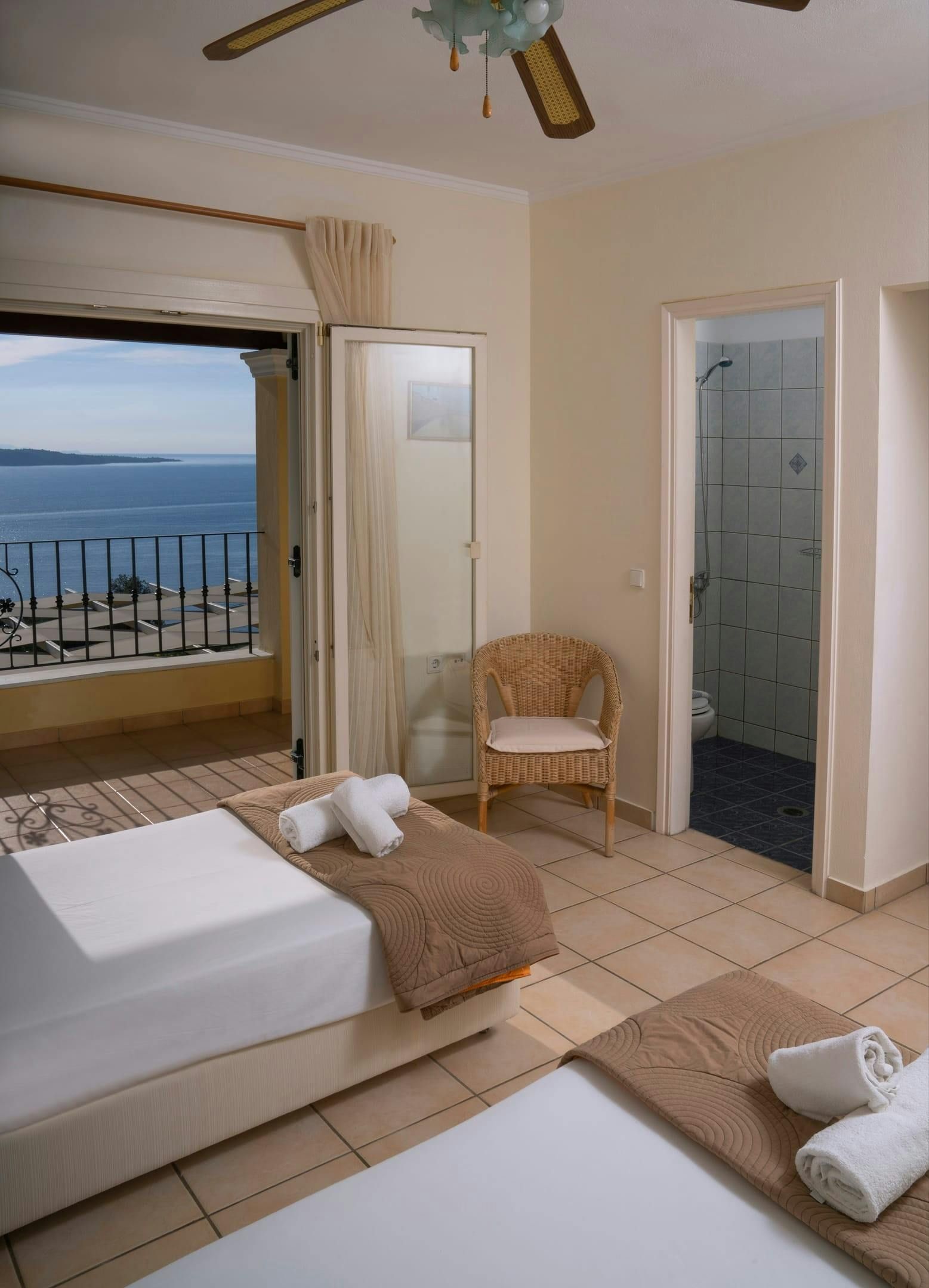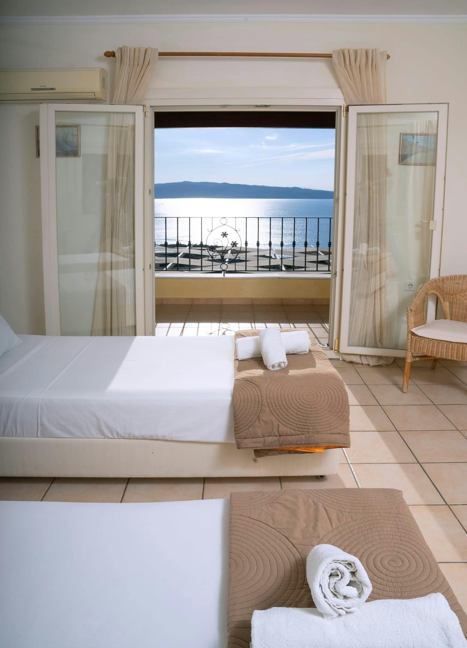 With unobstructed views from every corner of the home, a heated pool for splashing about with your loved ones and situated only a fifteen-minute walk from Kerasia Beach, this villa is an ideal holiday home for any family or group of friends. While the interiors are a little dated, everything functions as it should, and the kitchen is well-appointed for trying your hand at recreating traditional Greek food. When you’re not soaking up the sun on the sprawling terraces, your host can arrange excursions as an optional extra.