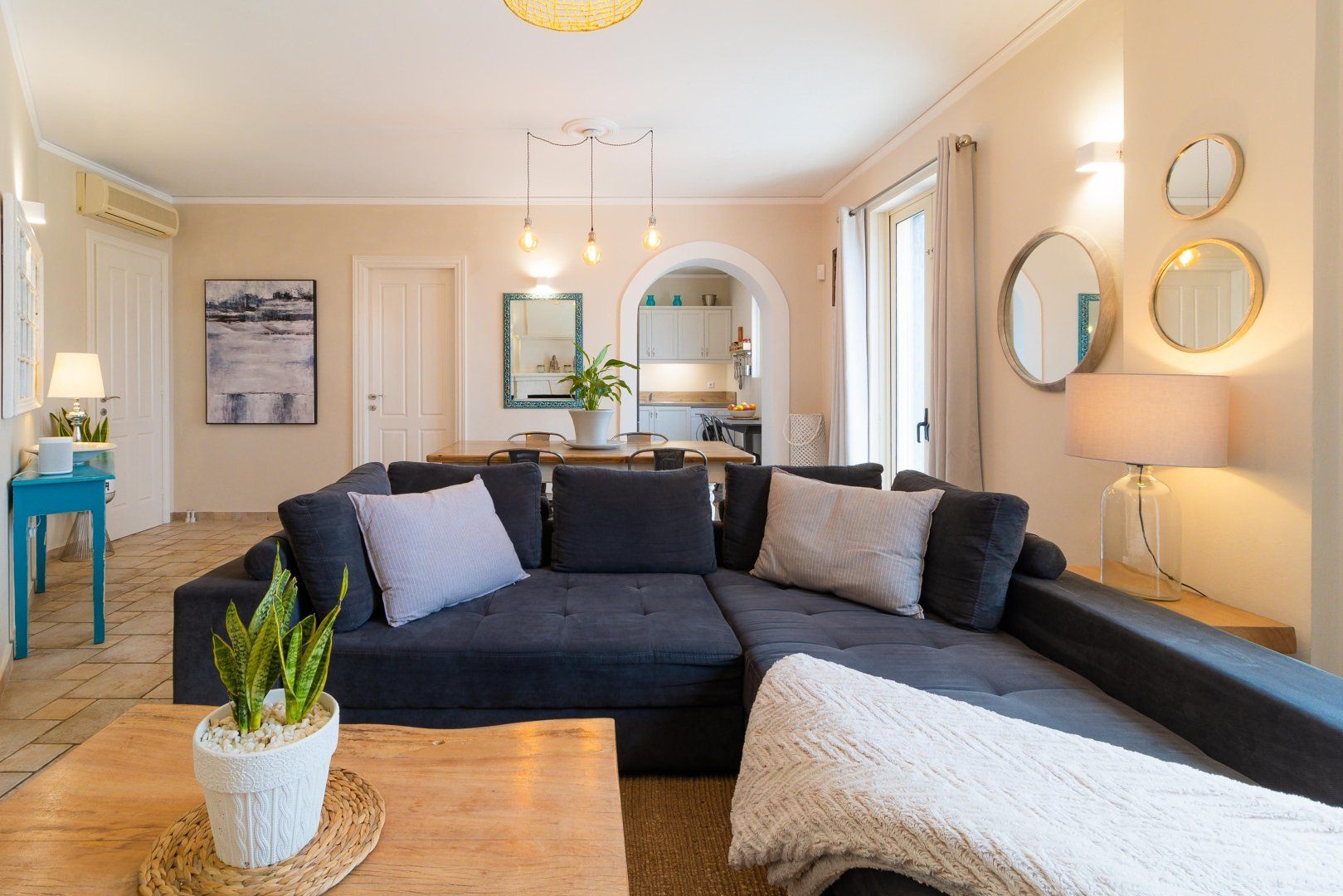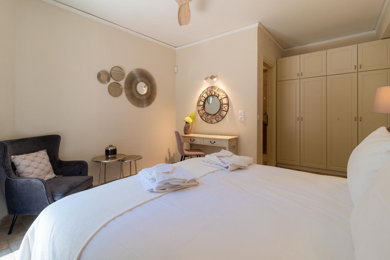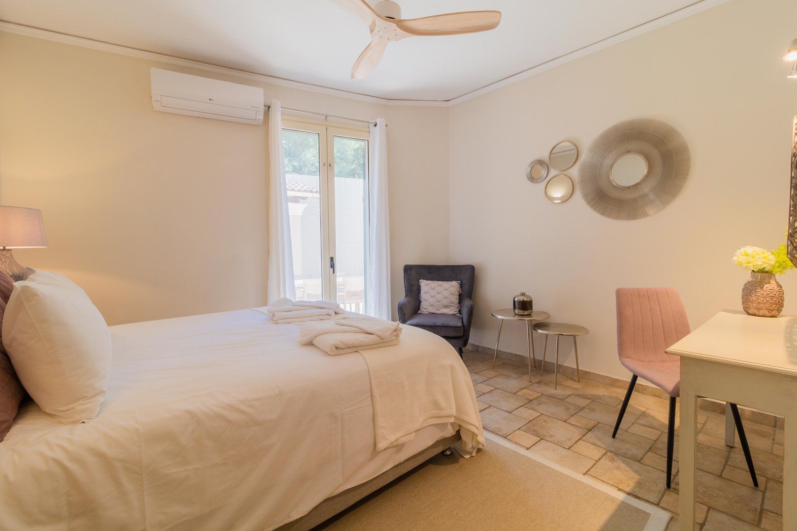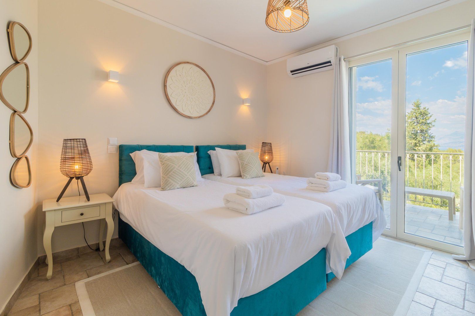 Find your new happy place at this impressive villa above the harbour village of Kassiopi. With blue views of the Ionian Sea and across the olive and cypress groves that reach all the way to Albania, you'll need to pinch yourself each time you step outside.