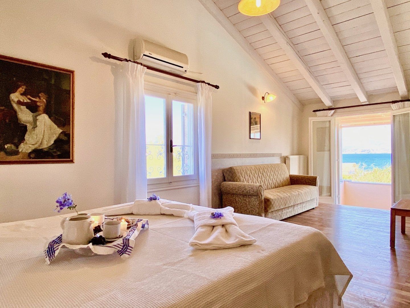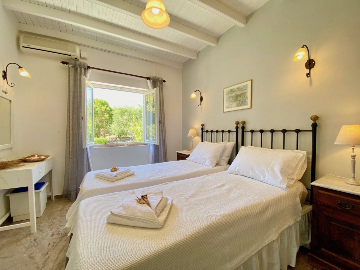 When a visit to the beach is in order, you only have two hundred metres to walk until you're standing on the sand and the larger Avlaki Beach isn't that much further down the coastline. The town of Kassiopi can also easily be reached on foot whenever you need restaurants or shops.