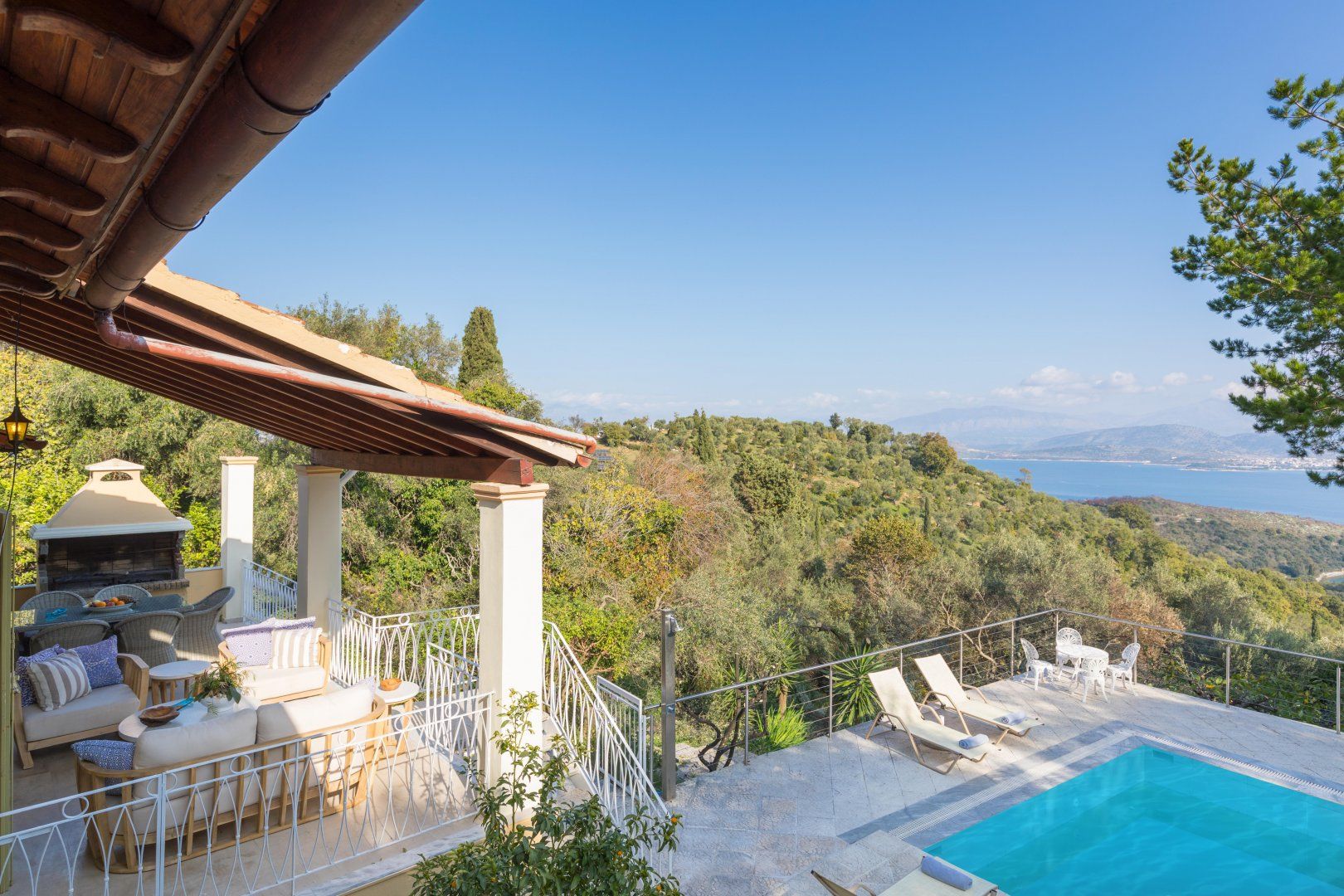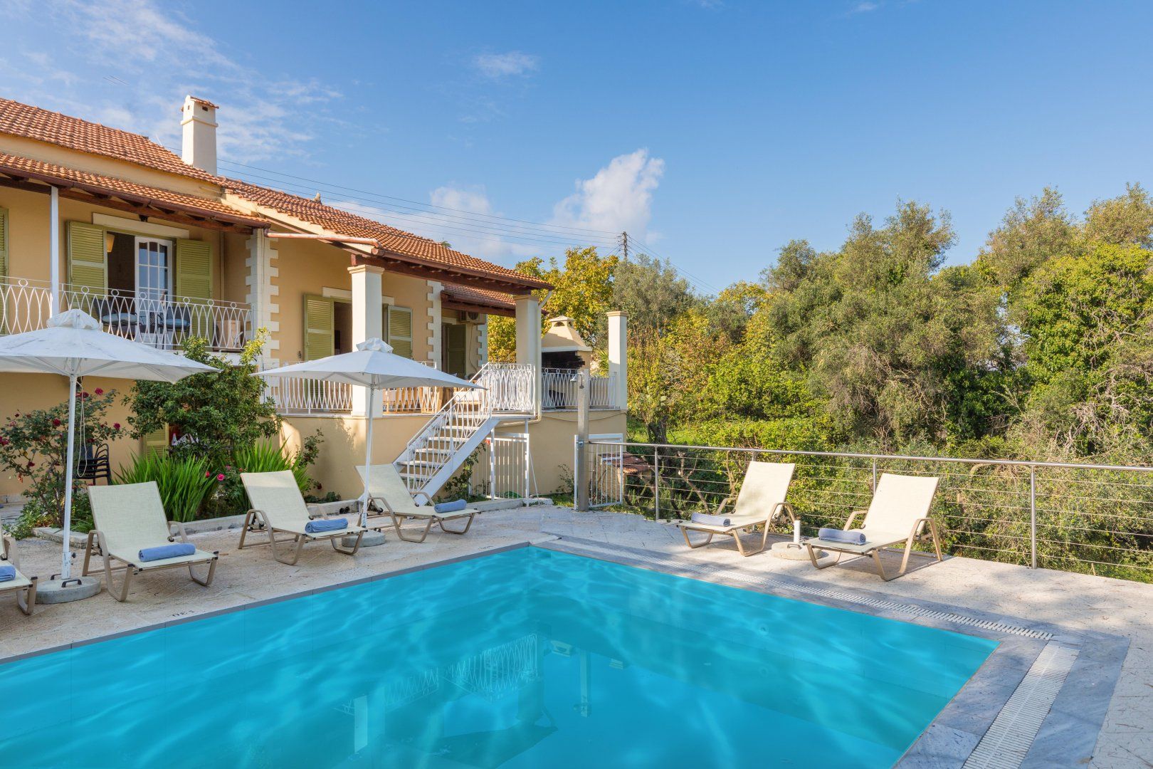 With picturesque sea views, a sprawling pool terrace, an alfresco dining area and a smattering of covered balconies, this traditional villa promises a relaxing retreat to the beautiful Greek island of Corfu.