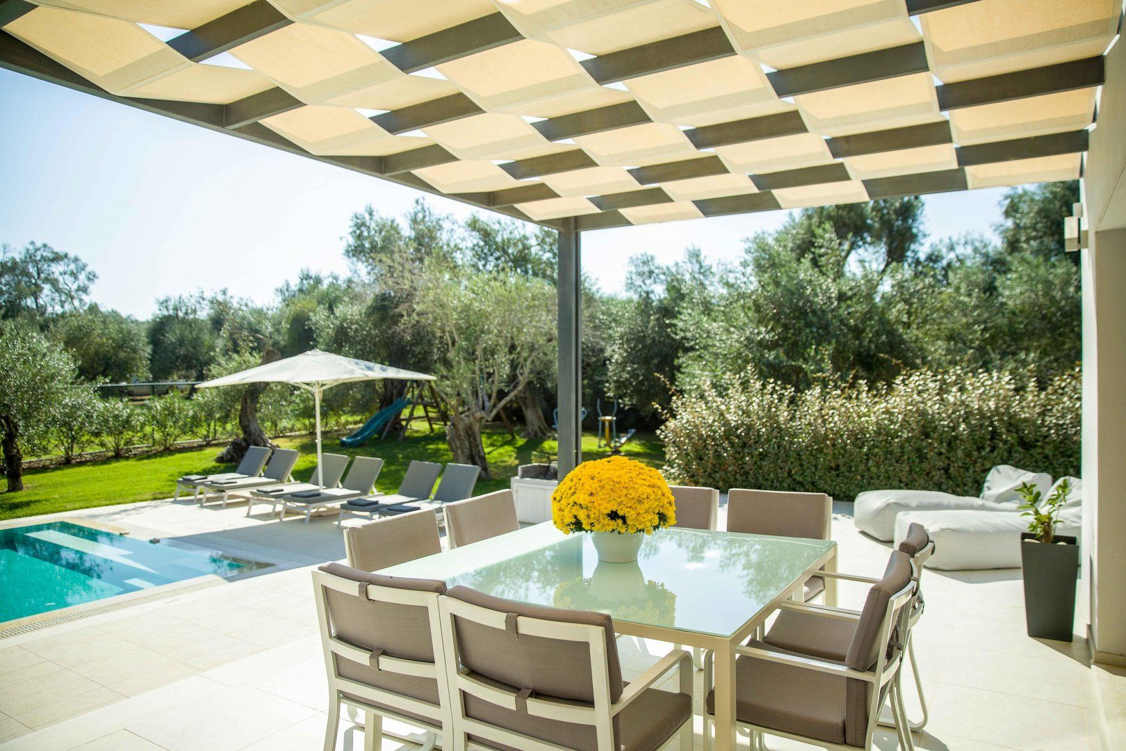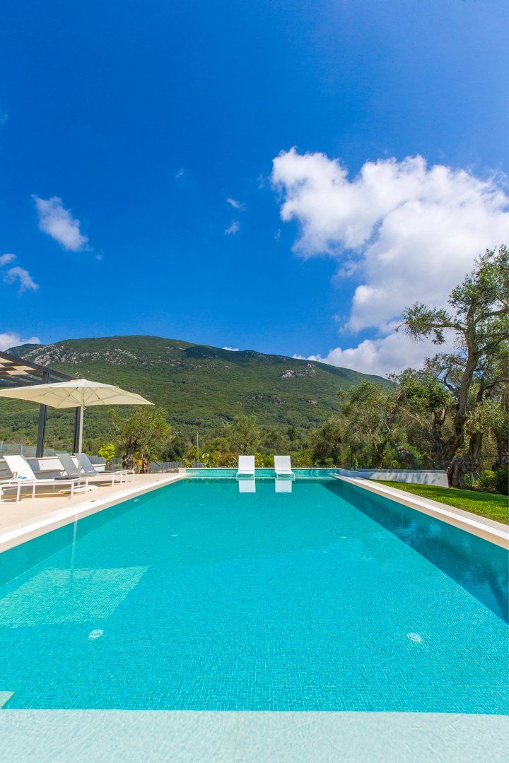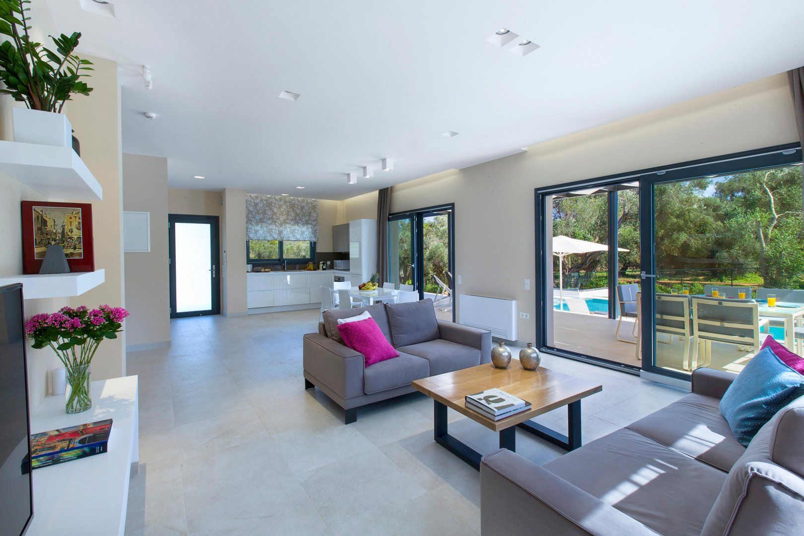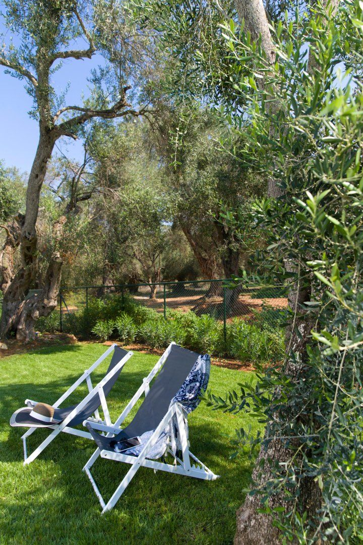 Surrounded by olive groves, vineyards and citrus trees, and situated only 150 metres from the peaceful Kanouli Beach, this sprawling villa commands outdoor living. The terrace brings with it the sounds of Mediterranean summers: loved ones splashing in the pool, the clattering of plates at the alfresco dining table, drinks poured over ice and the sizzle of the barbecue.