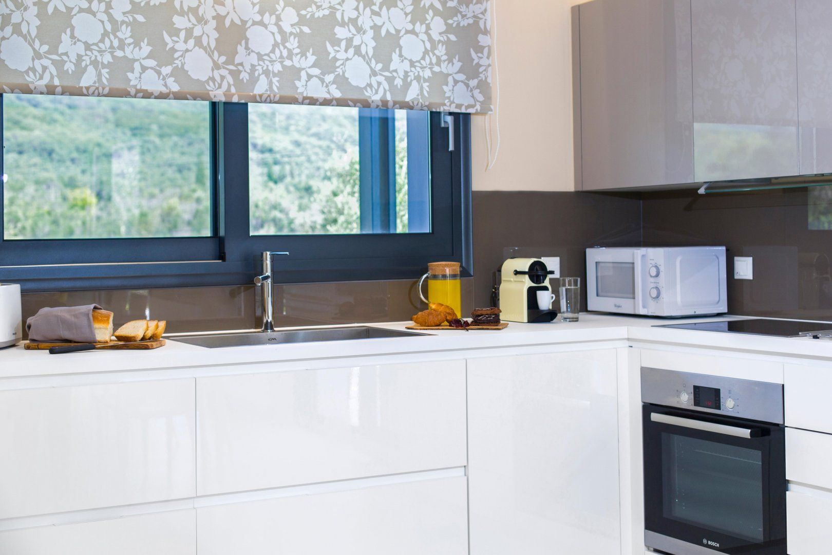 Begin your mornings in the garden, reclining on a deck chair with a Greek coffee in hand. When the temperature starts to rise, cool off with a gentle swim or retreat to a shady nook. Nip inside to rustle up some breakfast – the floor to ceiling windows ensure you never miss a second of the glorious sunshine.