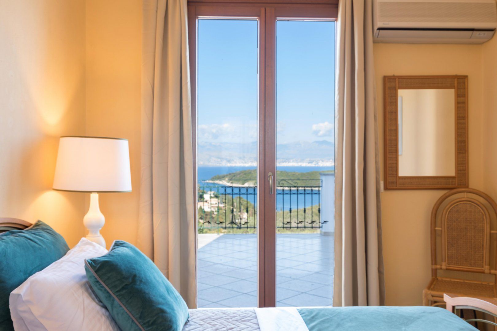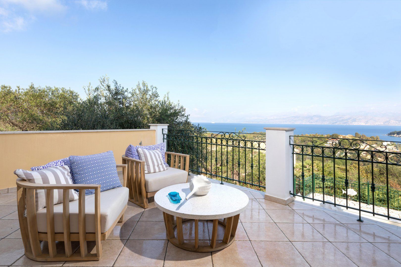 Complete with a built-in barbecue and a dining table that comfortably seats the entire group, it's the perfect space to come together for dinner while overlooking the ocean views and the beautiful hillside landscape. You're well catered for when it comes to outside living space with a little balcony and a sprawling pool terrace to while away the hours in the Mediterranean sunshine.