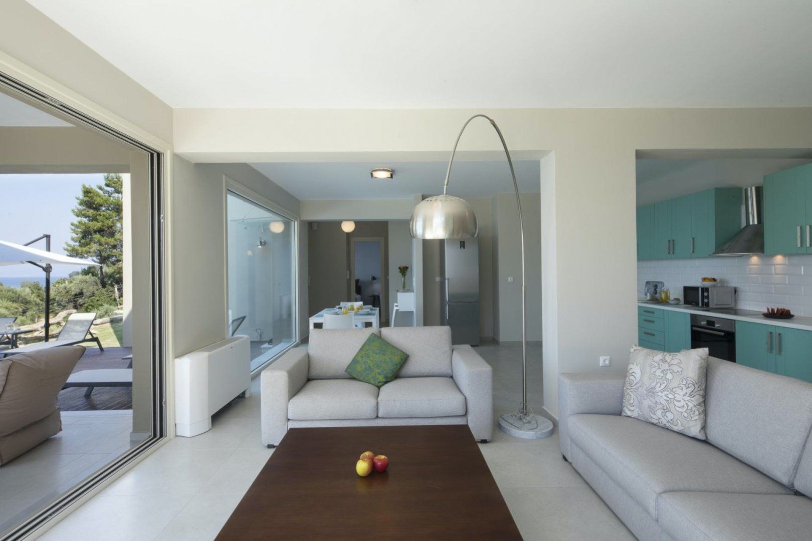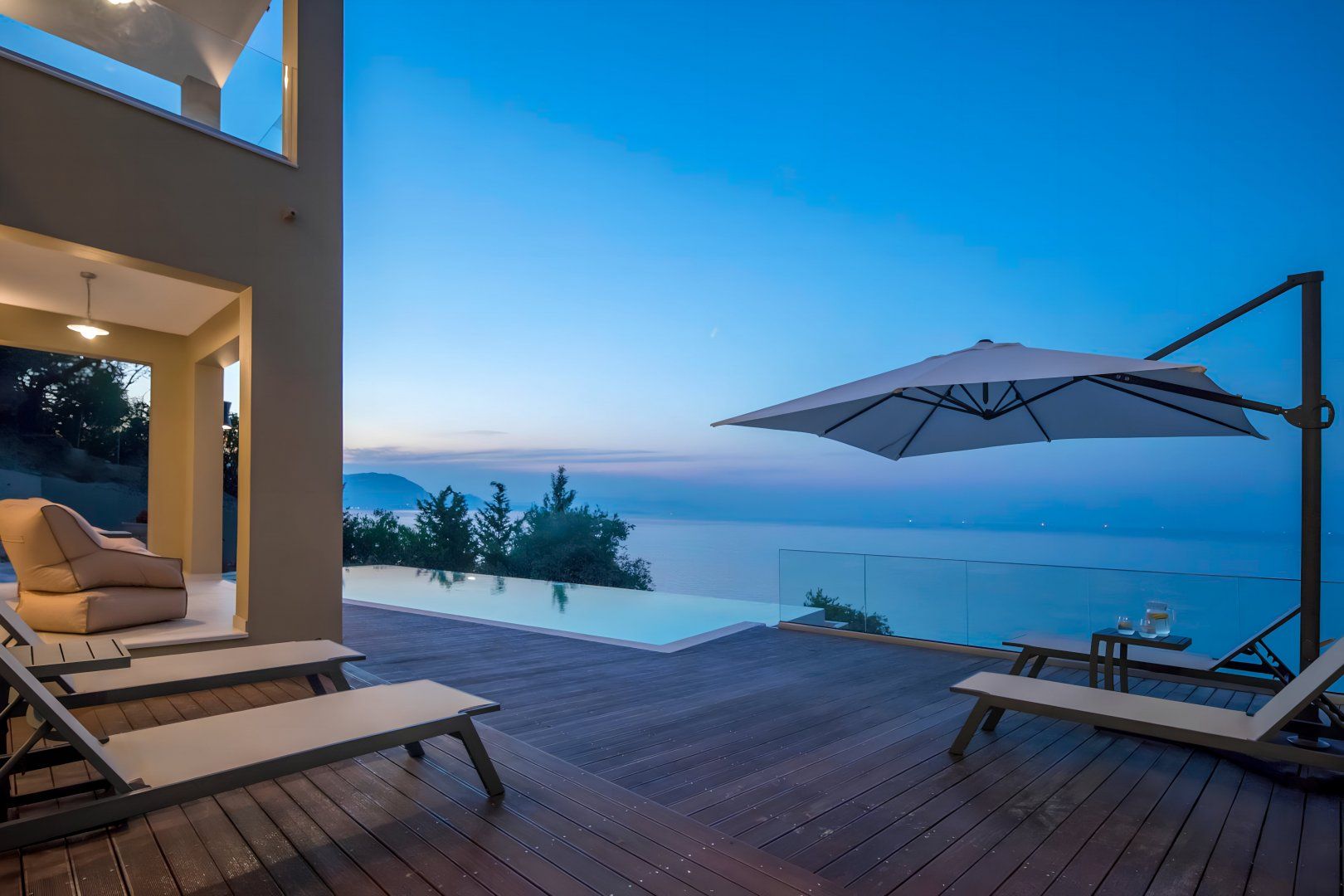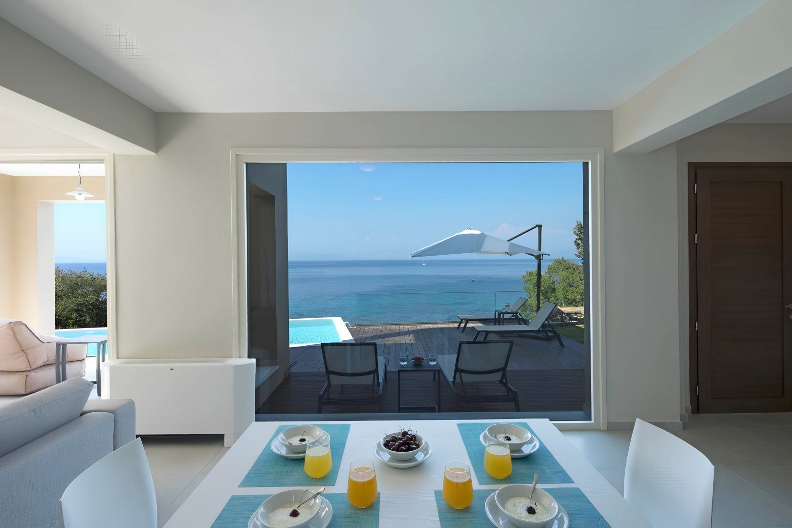 Thanks to its elevated position on the coast of Corfu, this contemporary villa has spectacular views across the Ionian channel. And with panoramic windows in the living area, the vistas can be enjoyed from inside as well as out. You’ll have your own private pool here as well as easy access to the sea, which is just 20m away. The villa is within a short stroll of several tavernas, including two of the island’s best known, and the popular resort of Messonghi is just a twelve minute drive away.