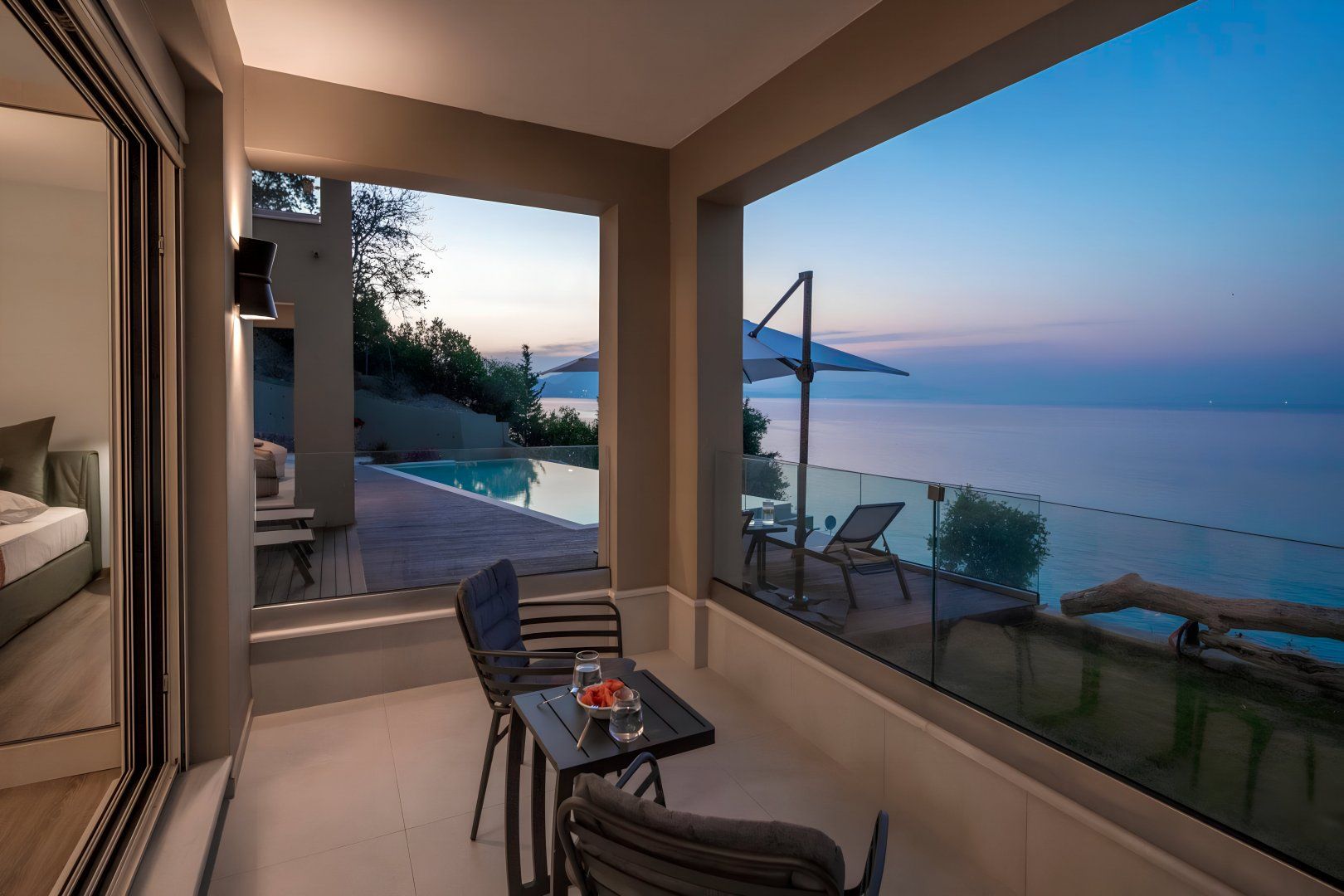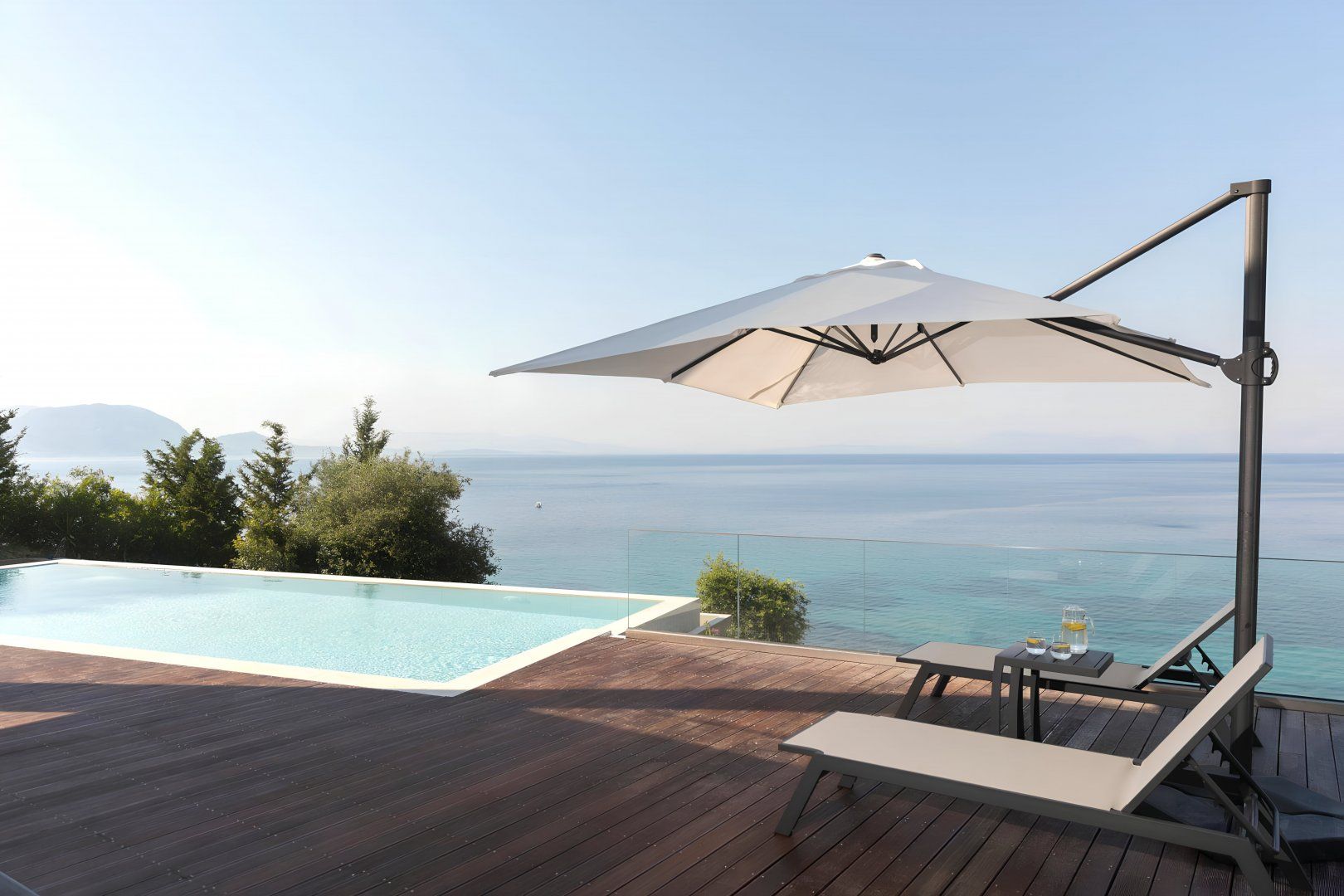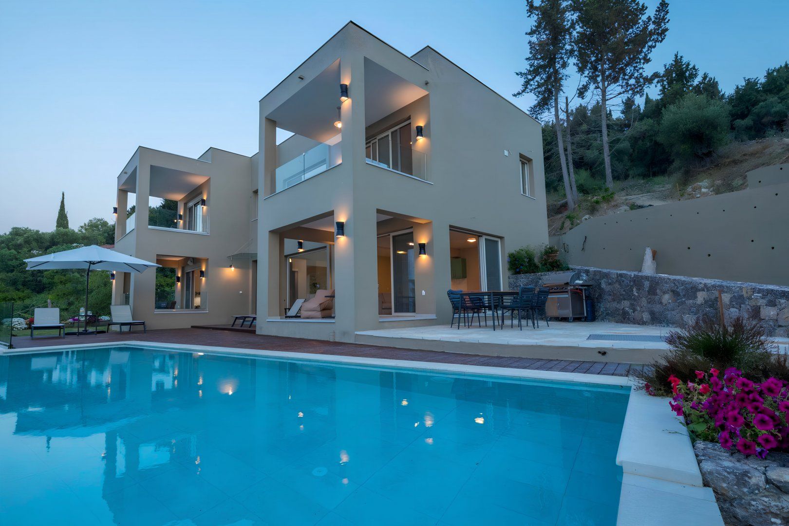 Thanks to its elevated position on the coast of Corfu, this contemporary villa has spectacular views across the Ionian channel. And with panoramic windows in the living area, the vistas can be enjoyed from inside as well as out. You’ll have your own private pool here as well as easy access to the sea, which is just 20m away. The villa is within a short stroll of several tavernas, including two of the island’s best known, and the popular resort of Messonghi is just a twelve minute drive away.