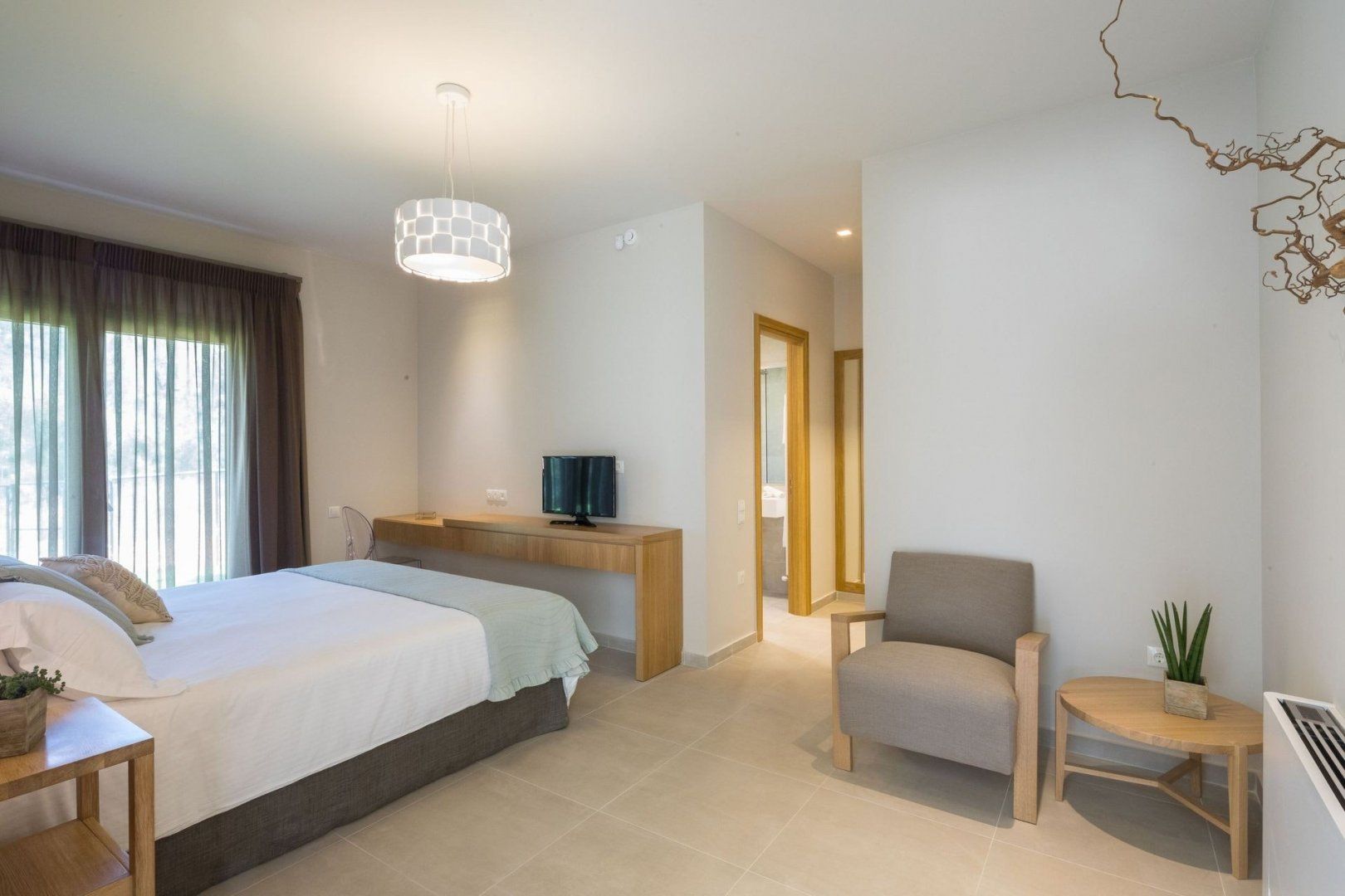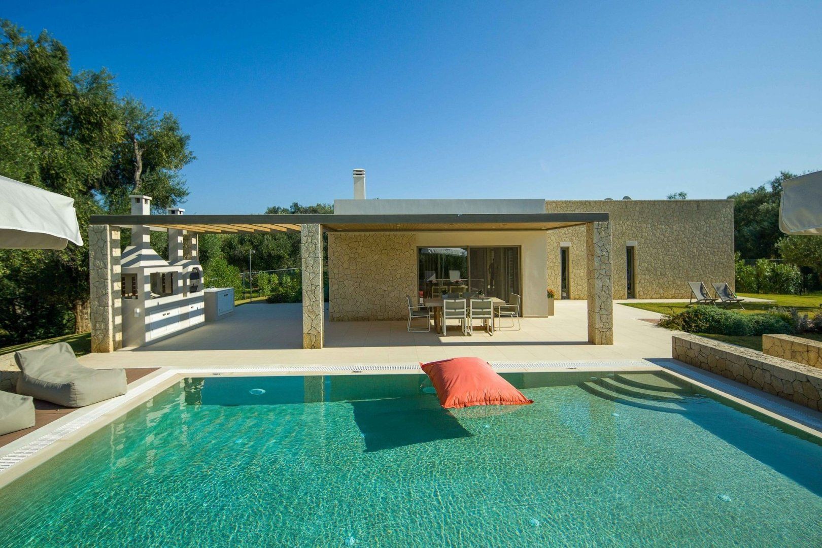 Located just a short walk from one of Corfu’s stunning beaches, this single-level villa is a great base for a family holiday. You’ll be able to soak up the sun while relaxing on one of the many comfy loungers by the pool, and there’s also ample space for communal feasts, both indoors and alfresco. There’s also a large garden, with a gym and a play area for little ones. Bear in mind that there’s only one bathroom to be shared by all the guests here.