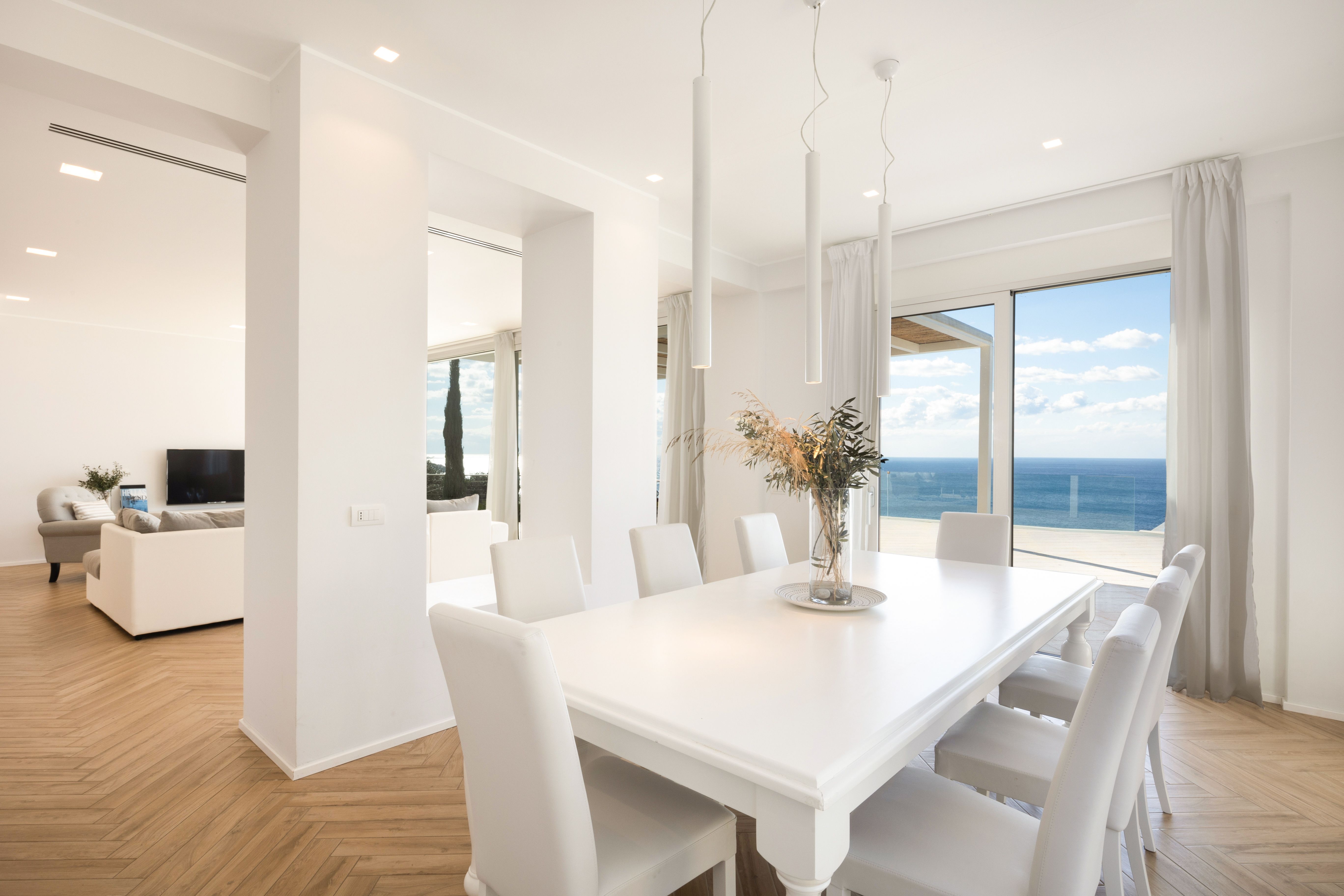 Inside the home, it’s pared-back and refined with a living space that calls for curling up with a coffee in the mornings and a dining room geared up for feasts that last well into the evening. Watch the waves ripple on the horizon from your bedroom’s private balcony before indulging in a serious pamper session in the sunken bathtub – the huge window ensures you never miss a second of the glittering ocean vistas.