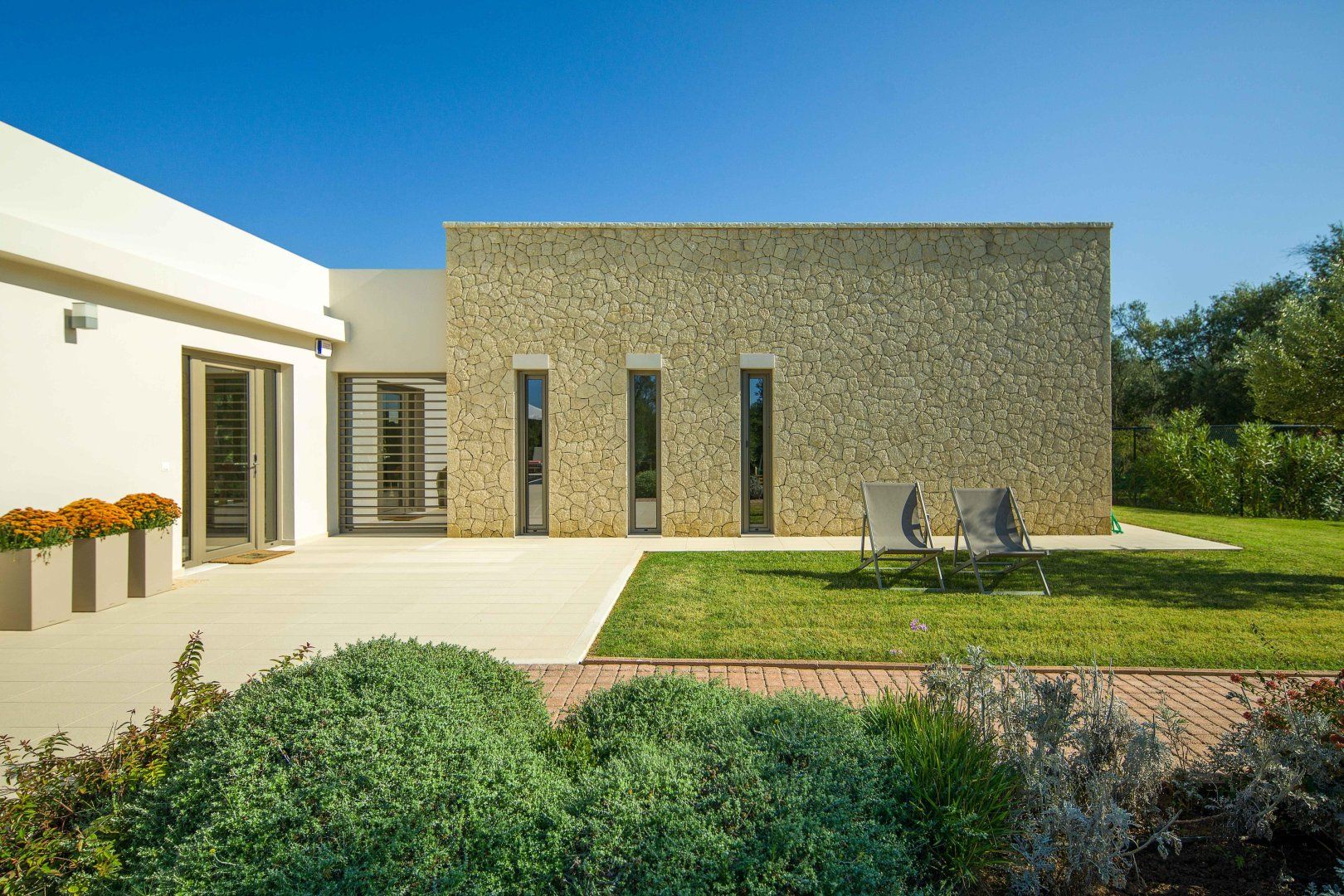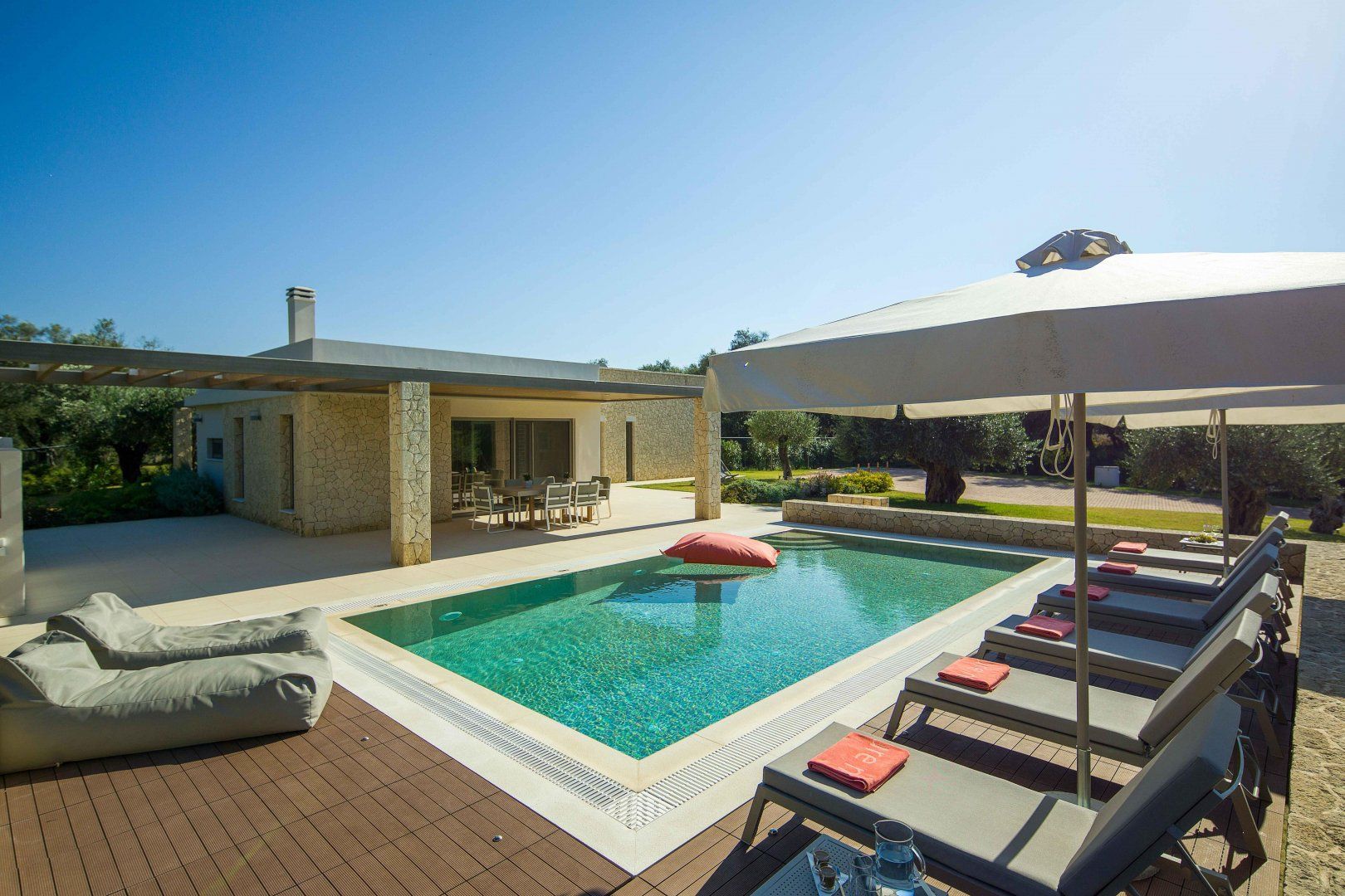 Surrounded by olive groves, vineyards and citrus orchards, this modern villa is truly a place where lasting memories are made. Off in the distance, the mighty Gamelion mountain stands tall, providing the perfect backdrop for lounging in the sun. And, even better, you'll have access to the secluded Kanouli Beach at the foot of the cliff, so you can wake up and dip your toes in the sea in no time.