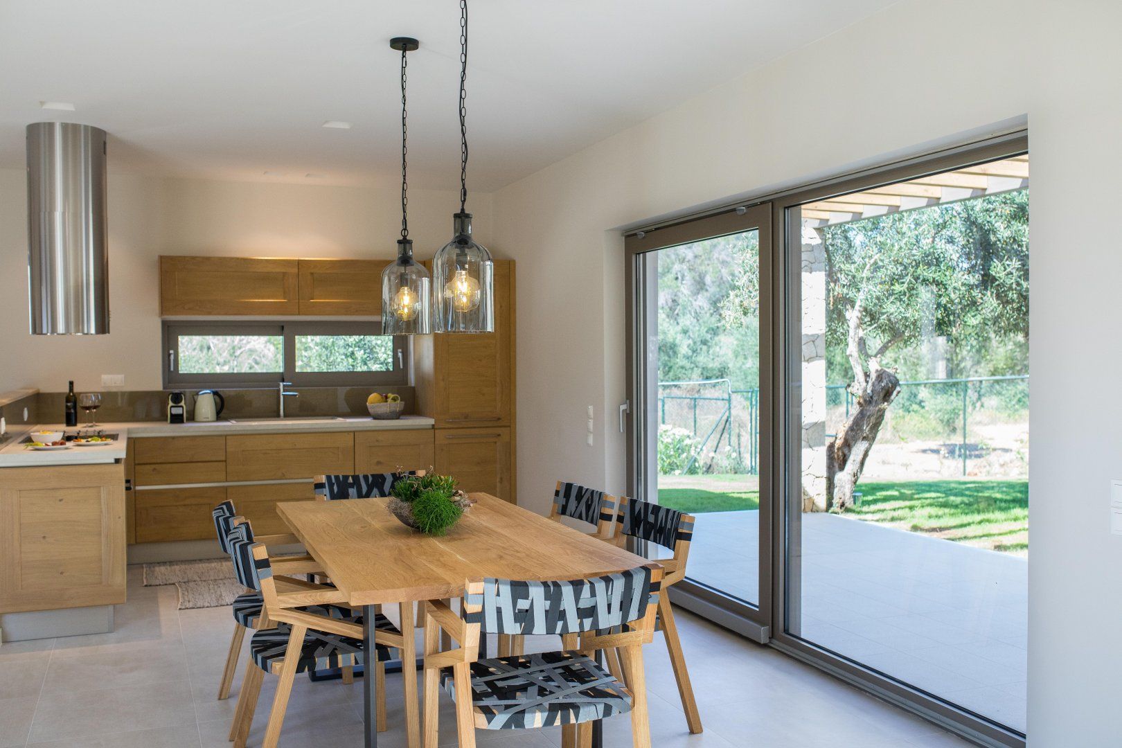 Absolutely everything you need for a relaxing holiday is taken care of – a welcome basket filled with traditional Corfiot goodies, rainfall showers in the sleek bathrooms, a gorgeous built-in barbecue for alfresco dining, even a playground for the kids and an outdoor gym for the fitness buffs. On the terrace, the sparkling heated pool takes centre stage – when you're not at the beach, chances are you'll be lounging poolside or floating in the crystal-clear water. Inside, the design is refined and contemporary – think wooden tones and stunning windows drenching each room with sunshine – while mod-cons like a PS4, fully-equipped kitchen, air conditioning and smart TVs ensure you'll be at your most relaxed.