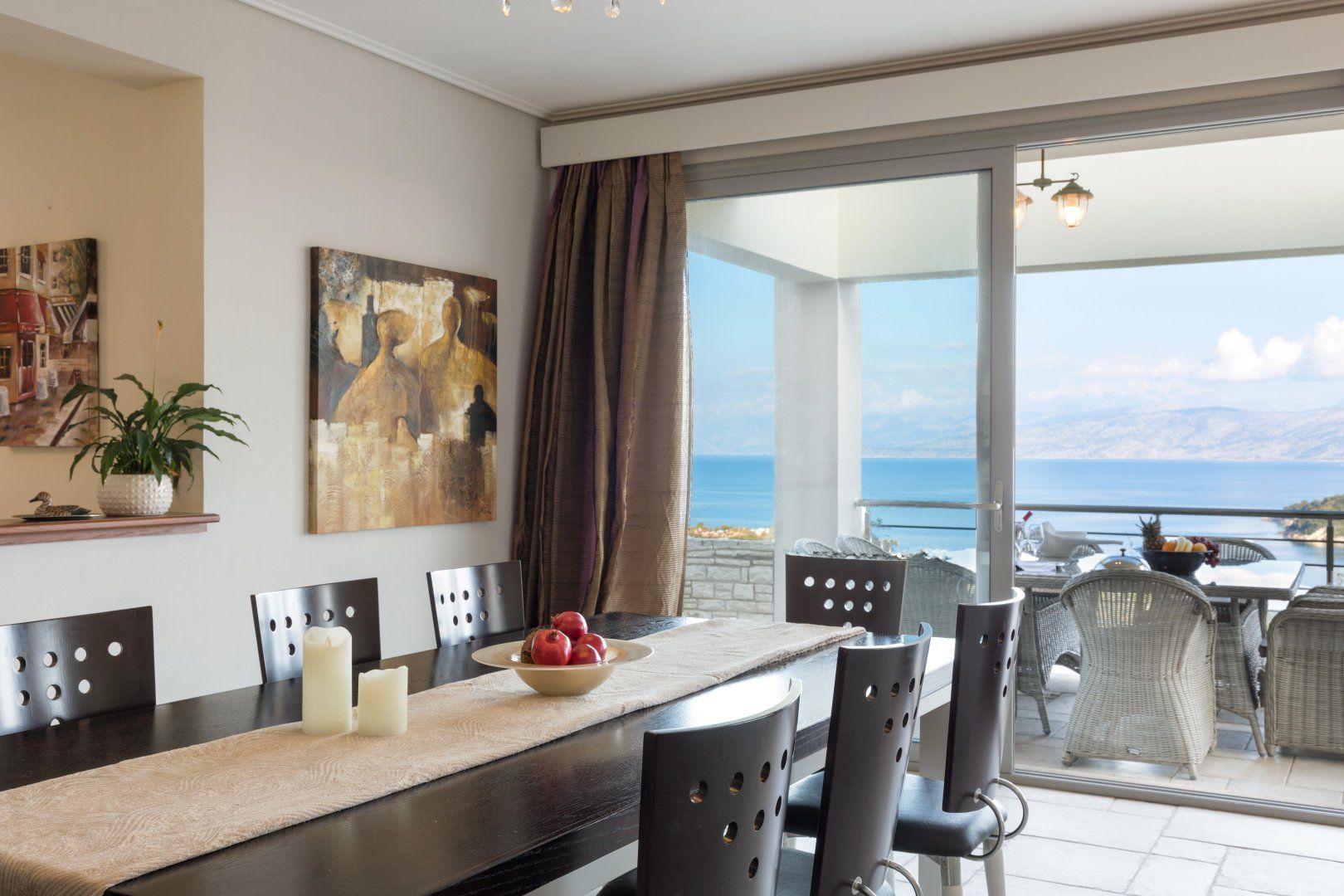 Wake up in the morning with dappled sunlight on your face, and take your coffee to the balcony to drink in the views as you start your day. Thanks to floor-to-ceiling windows and sliding doors, the entire ground floor of the property showcases the impressive panorama, so if you prefer to enjoy breakfast at the dining table, you’re not missing out.
