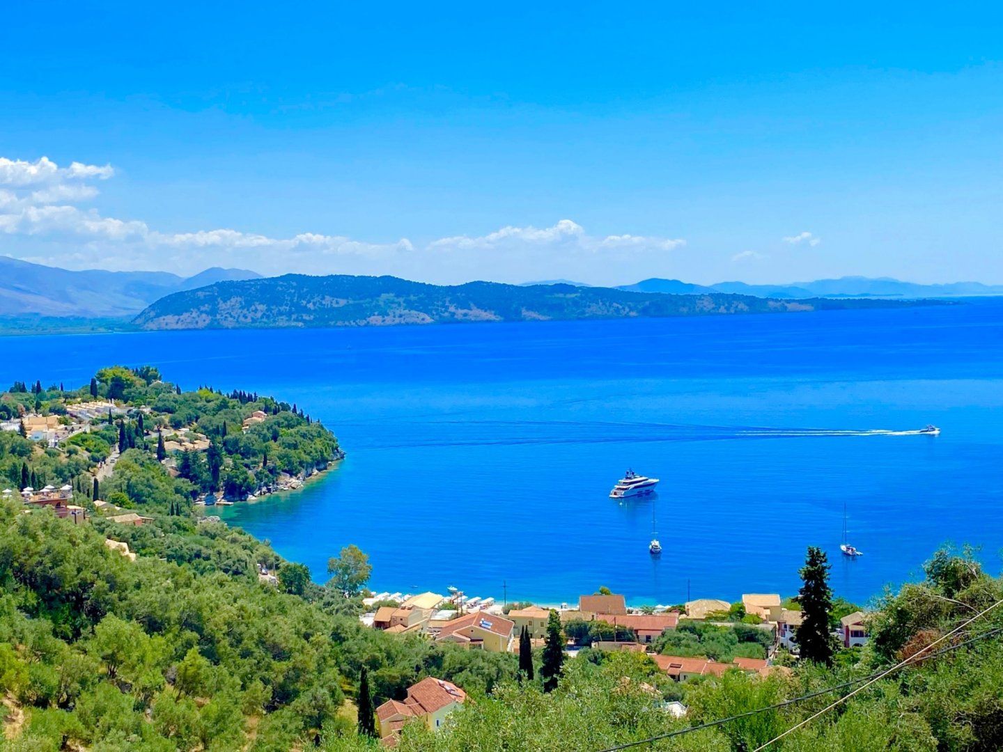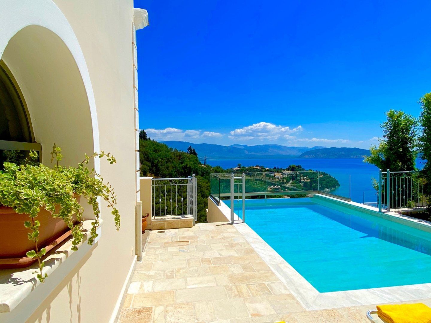Only 500 metres from breathtaking Kalami Bay – the famous former home of the Durrell family – this stylish villa is blessed with elevated views stretching over the vivid Ionian Sea. By strolling down the olive grove-lined footpath to the water's edge, you can sunbathe on Kalami Beach, or perhaps you'll charter a yacht. Just 100 metres from your doorstep, you'll discover a traditional taverna which is ideal for afternoon refreshments.
