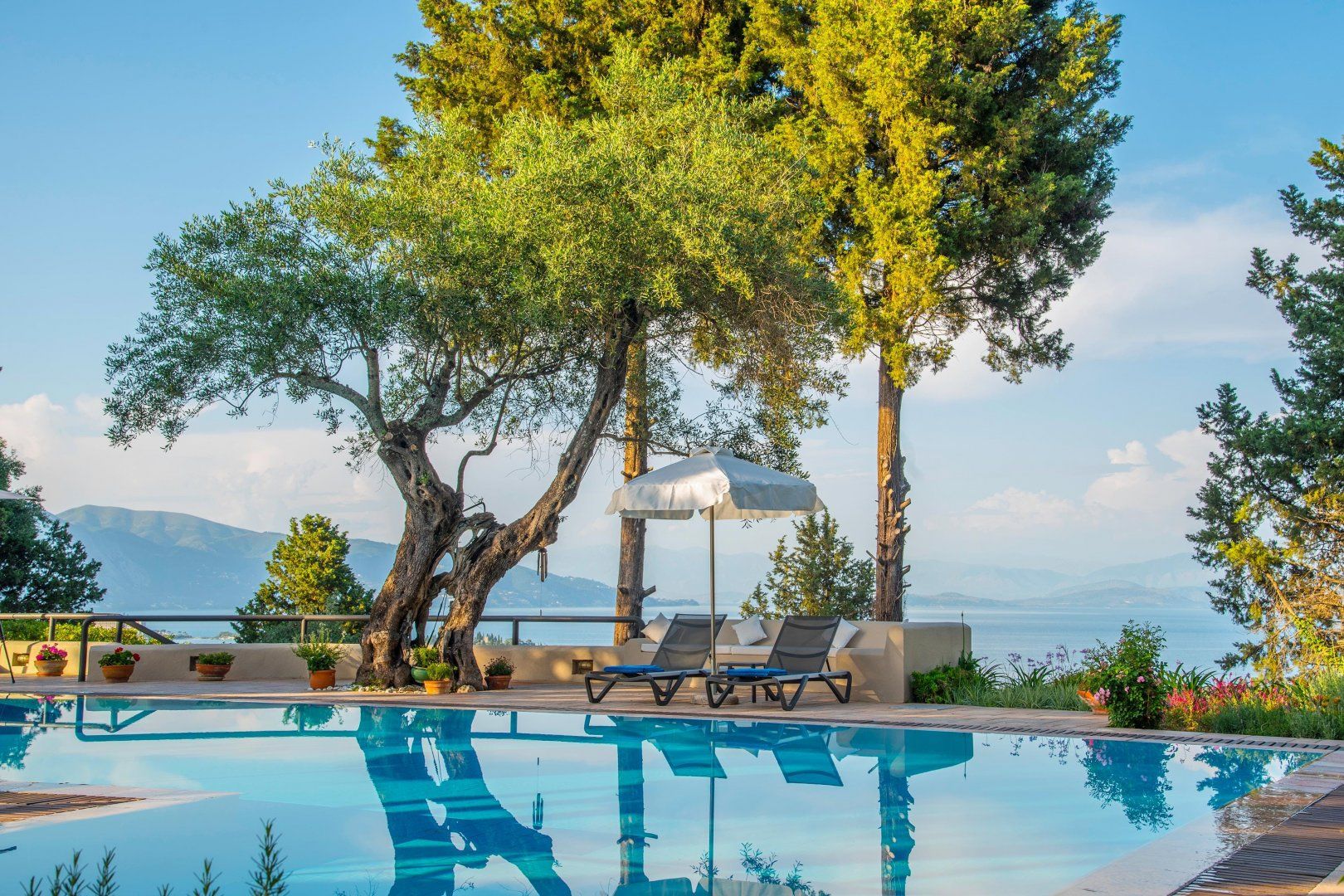 On Corfu’s east coast, perched upon a hilltop is this stunning retreat. It’s a hard one to beat. The 180-degree sea views are out of this world. Watch them as you float in the dreamy heated pool. Or as you gather with your favourite people around the alfresco table. Happy days.
