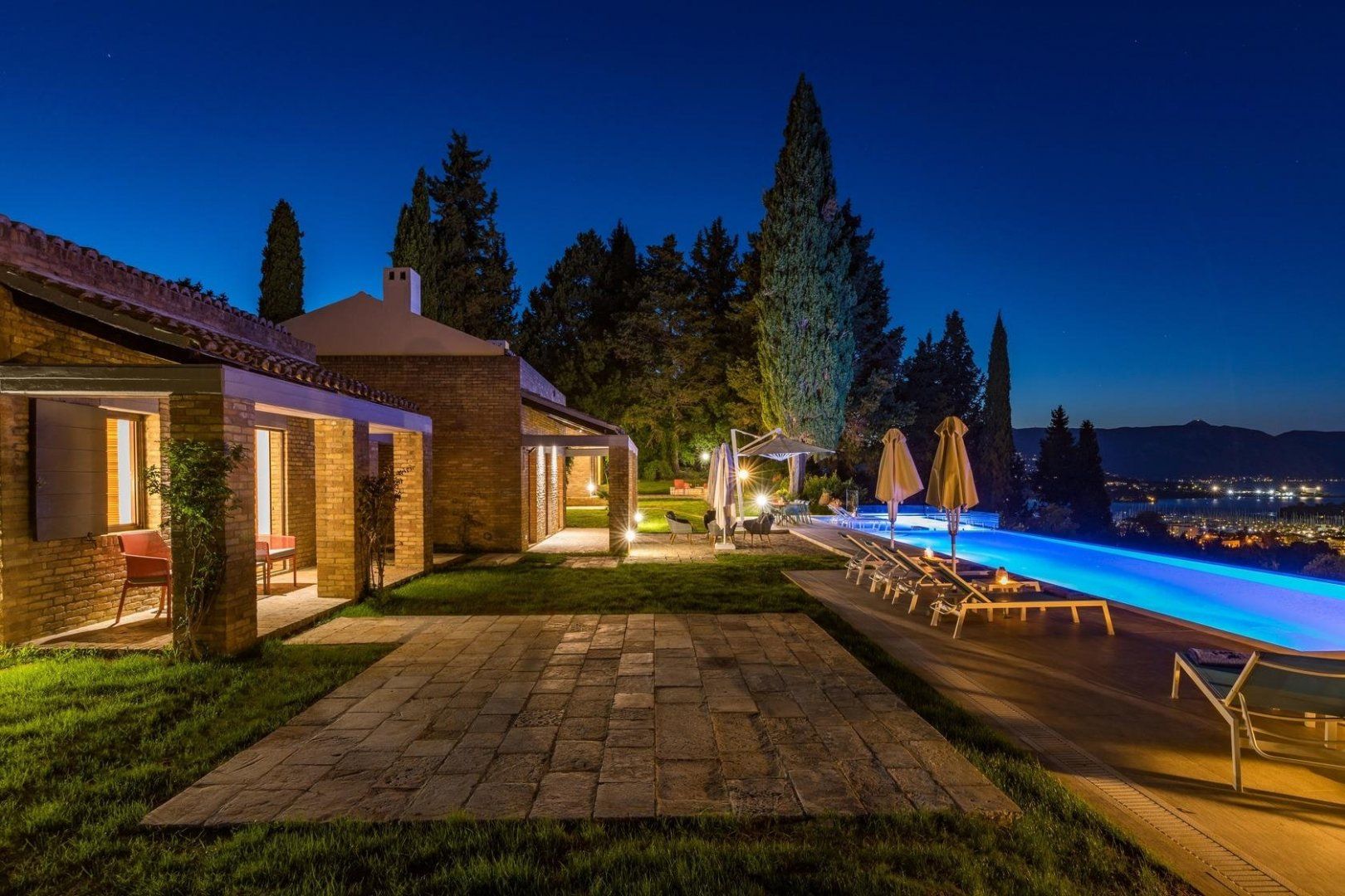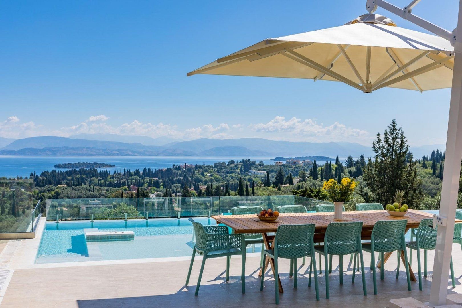 If you can tear your eyes away from that view, Corfu's magnificent old town is a ten-to-fifteen-minute drive away, while some of the island's most picturesque beaches, such as Glyfada, can be reached in a similar amount of time.