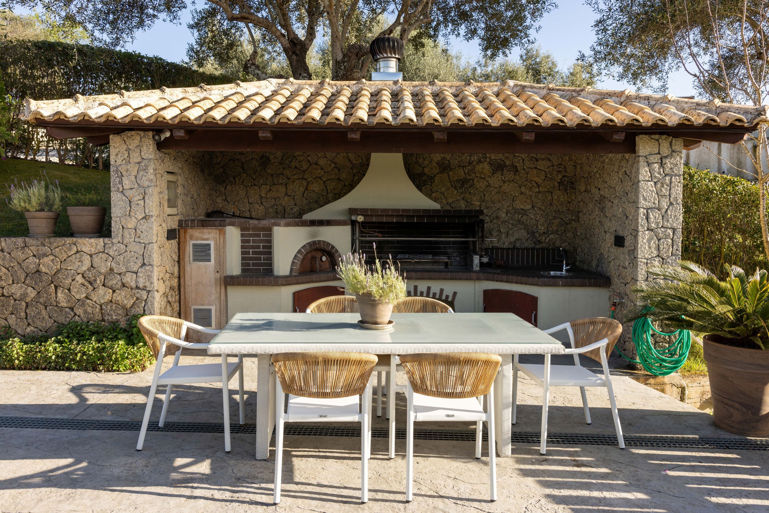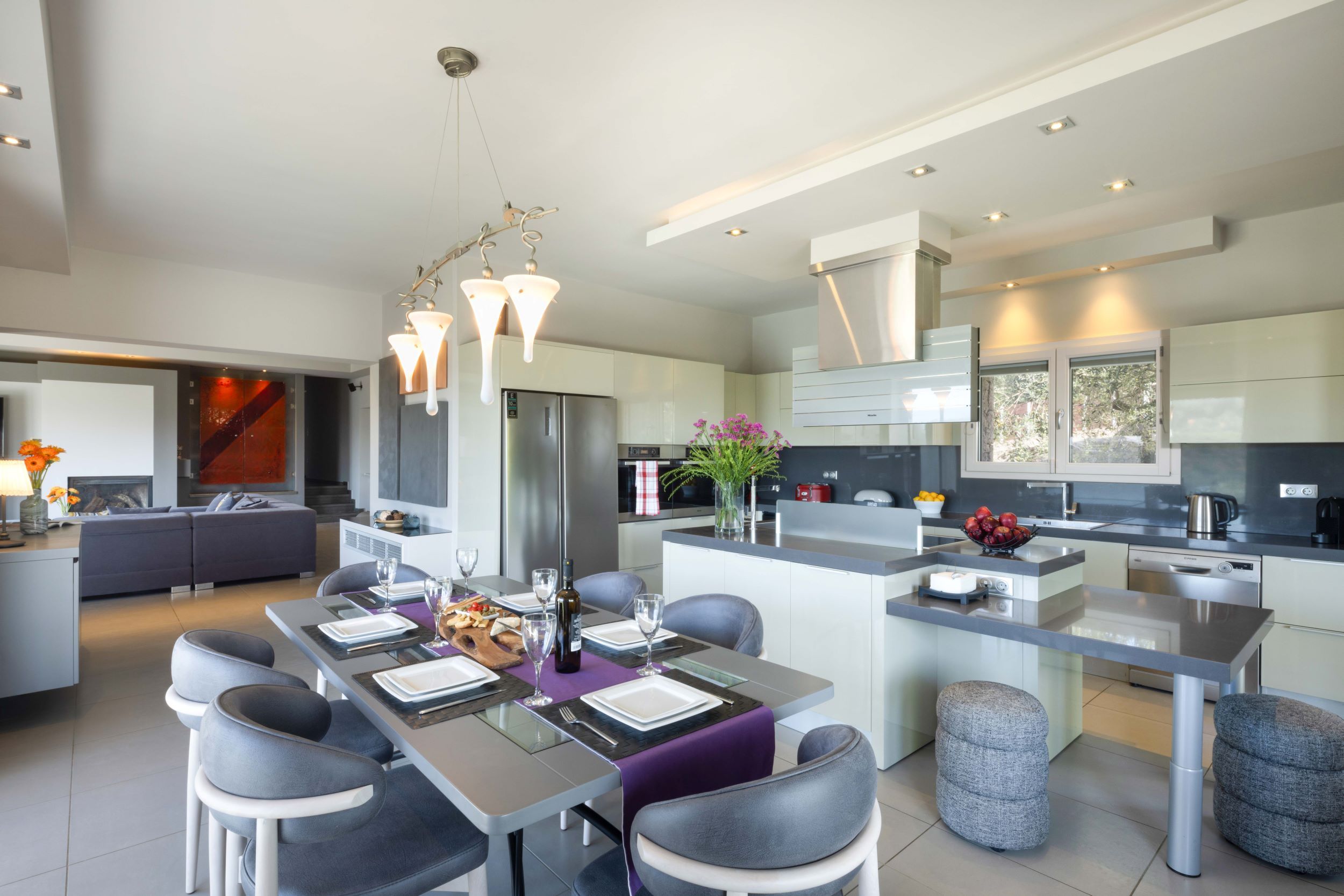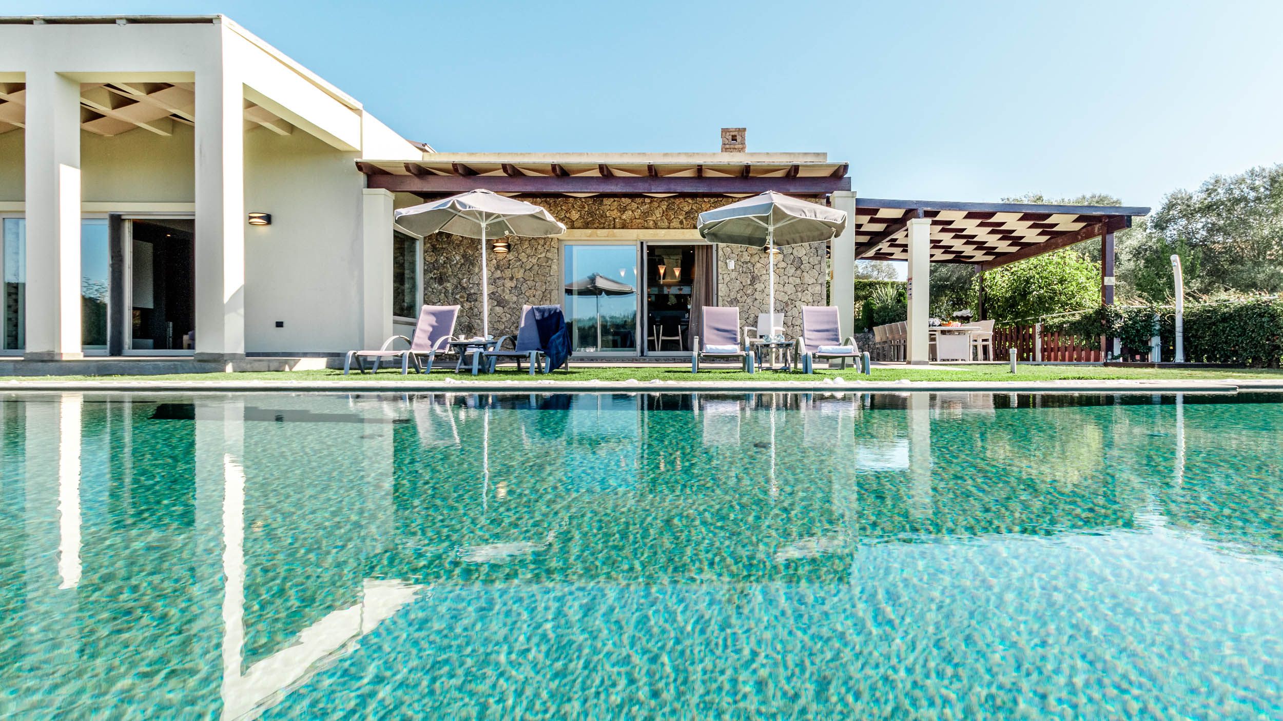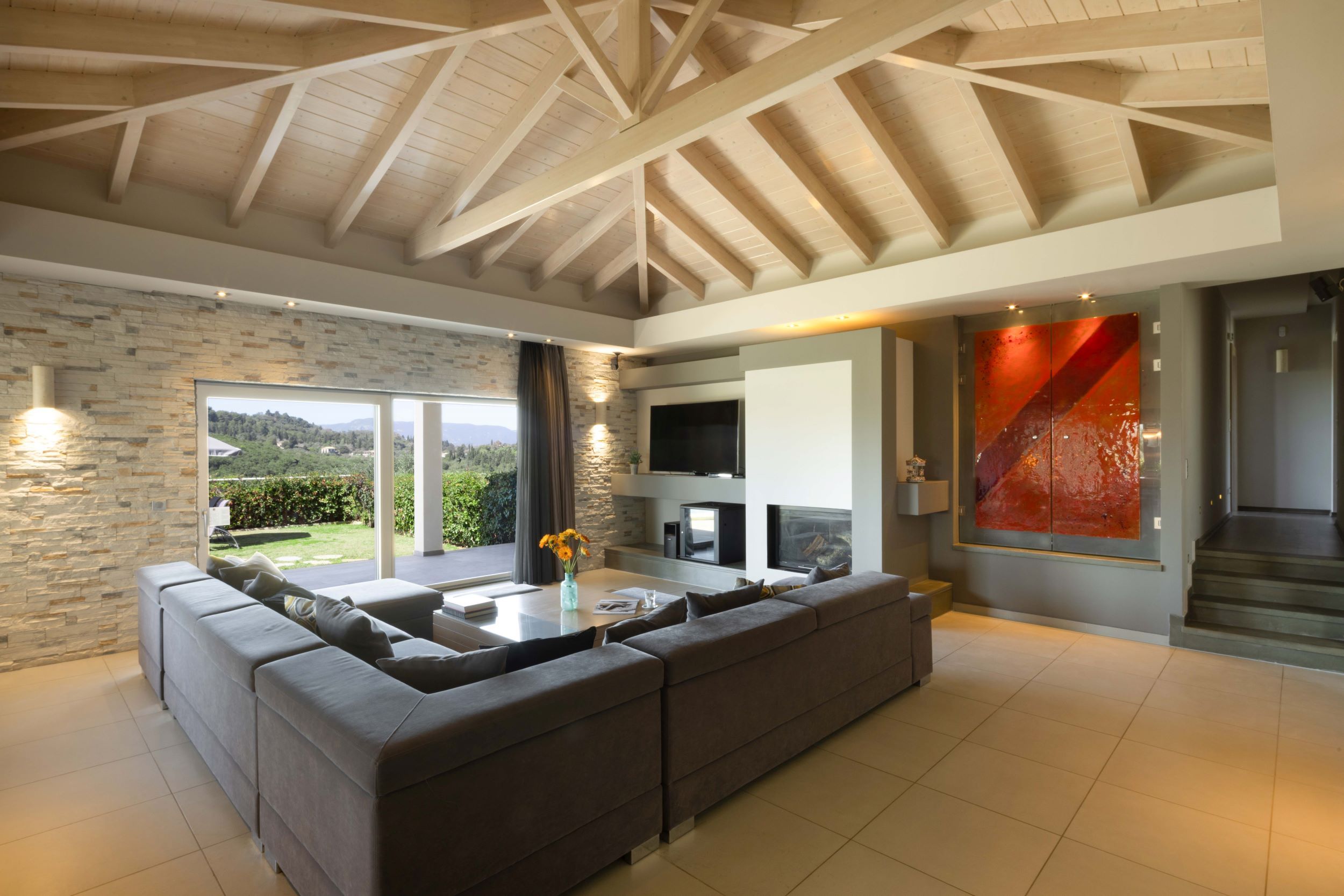 Sleek and stylish, this villa is a splendid base for a relaxing break in Corfu. It’s located on a small hilltop just off the central road to Corfu Town, eight minutes from a fabulous golf course, with plenty of beaches nearby. Tranquil Ermones beach is only ten minutes away. The villa is modern and attractive, with a beautiful infinity pool facing delightful views, and an alfresco dining space. Inside, there’s plenty of room for everyone to spend time together in the living room, the well-equipped kitchen, and the games room.