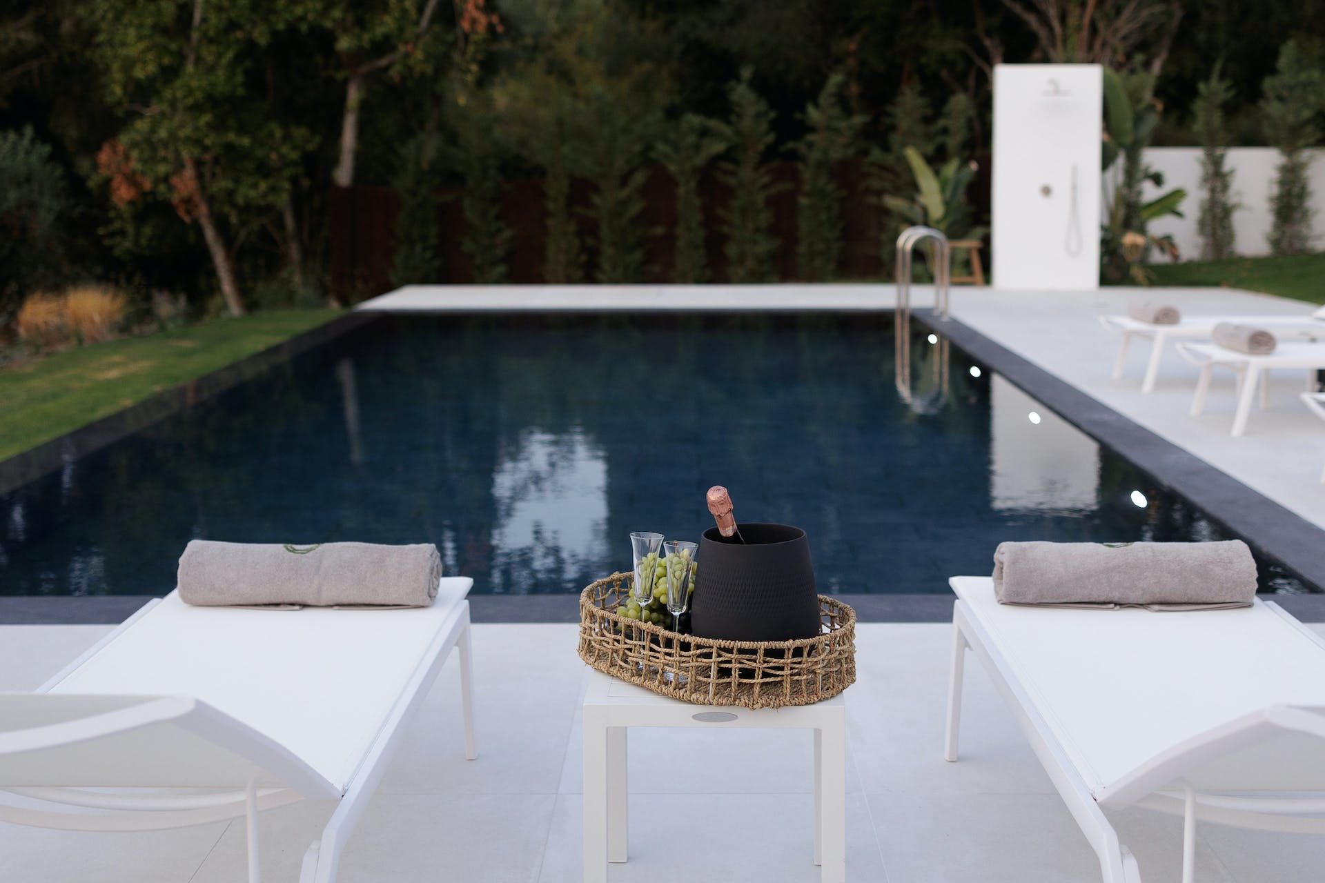 Head downstairs and discover three en-suite bedrooms decorated in soothing earth tones to help you effortlessly drift off after a day in the sun. Each enjoys direct access to the lush gardens and poolside patio, where we imagine you'll spend most of your time lounging in the sun, enjoying refreshing dips in the water and relishing those awe-inspiring vistas.