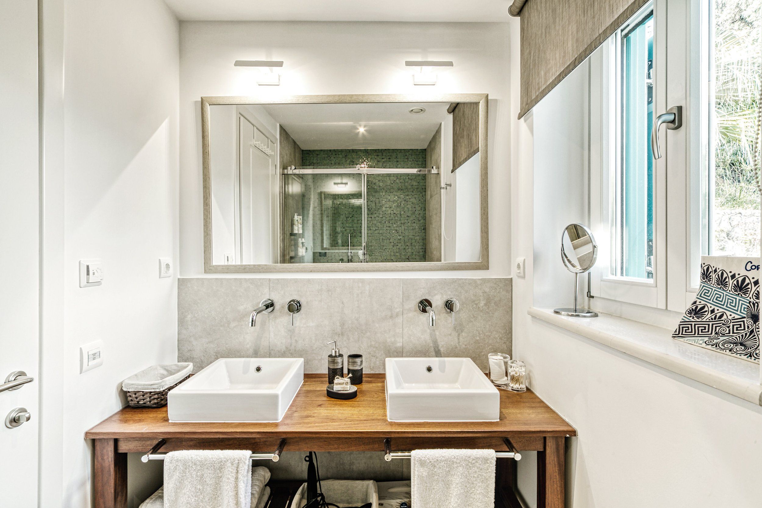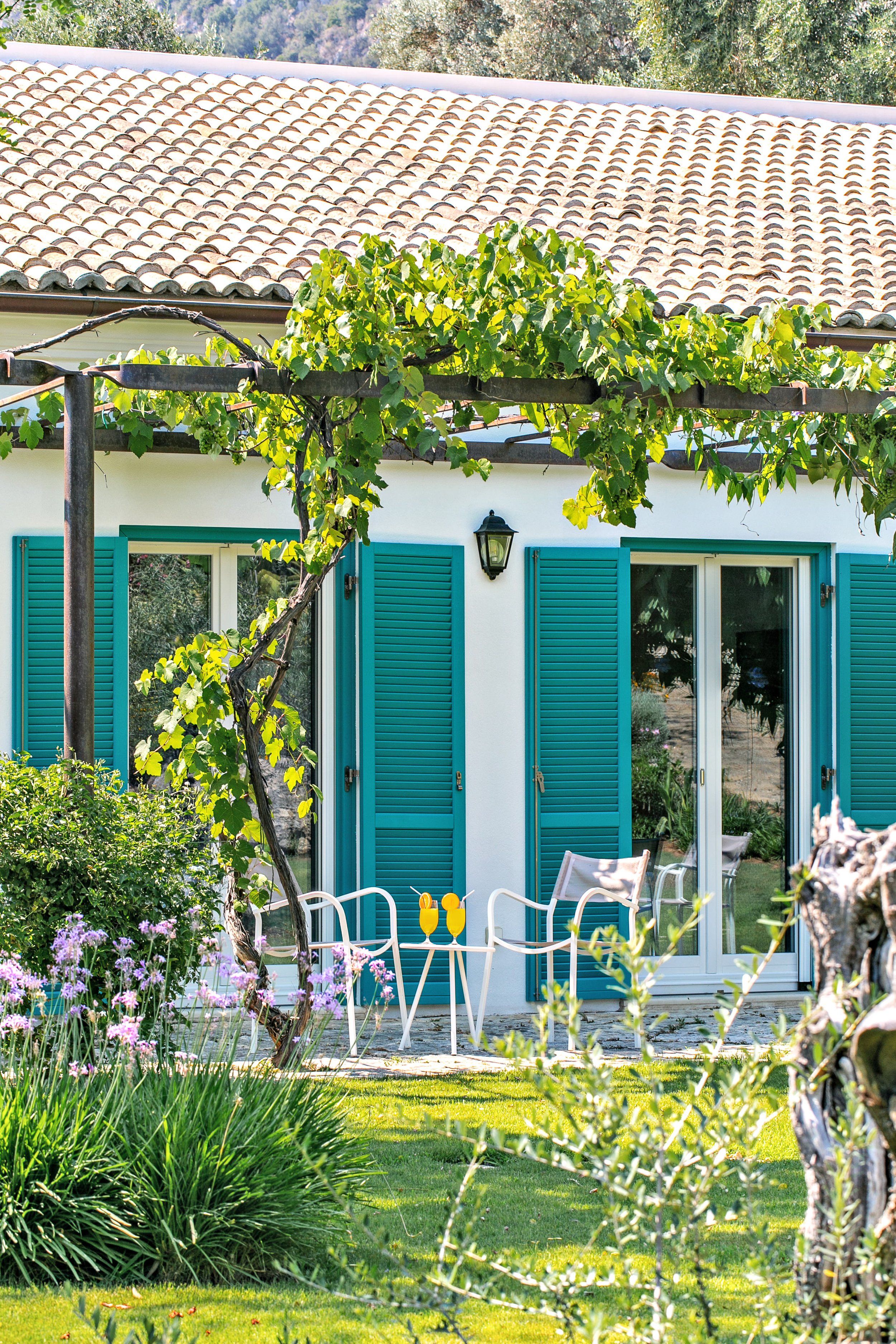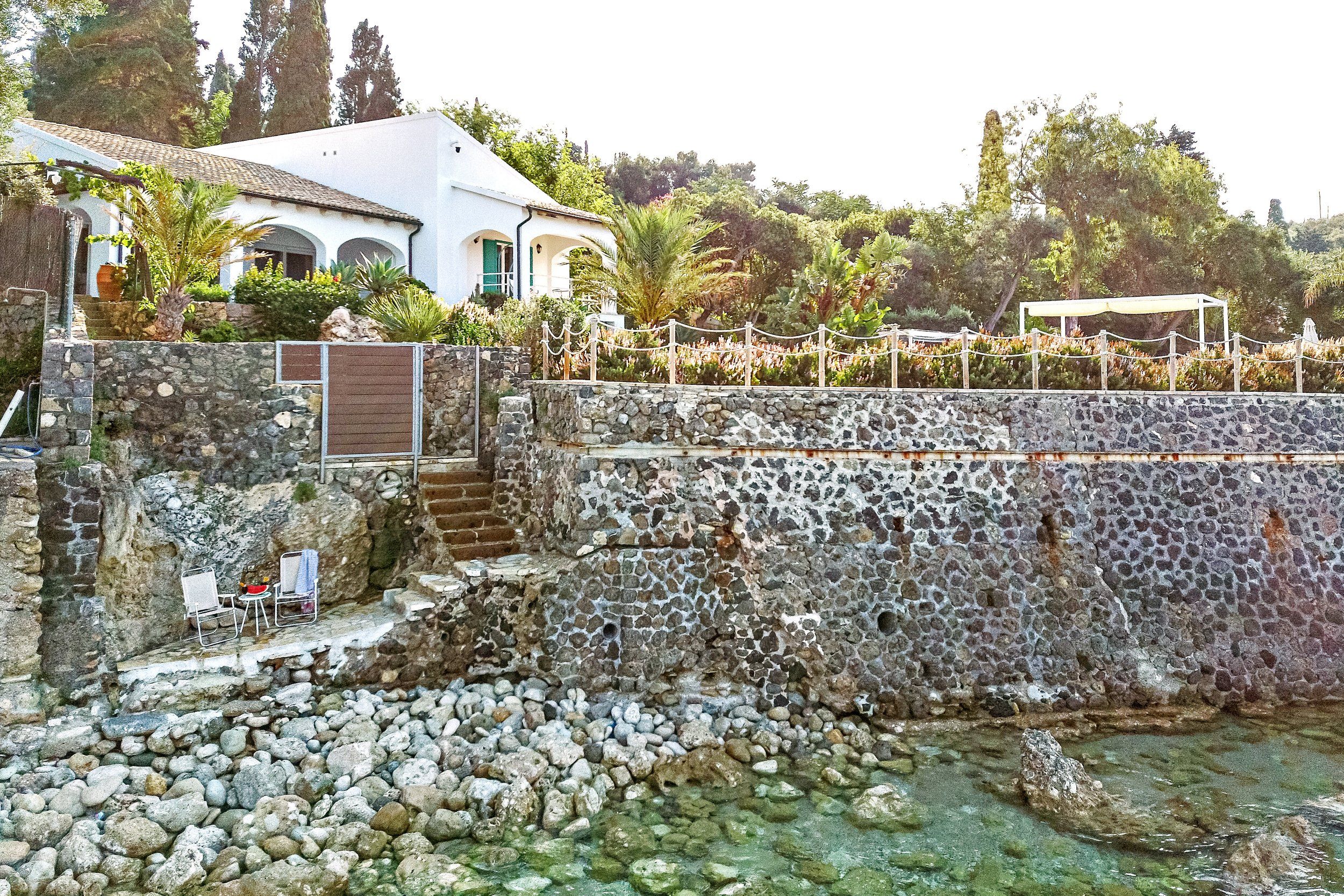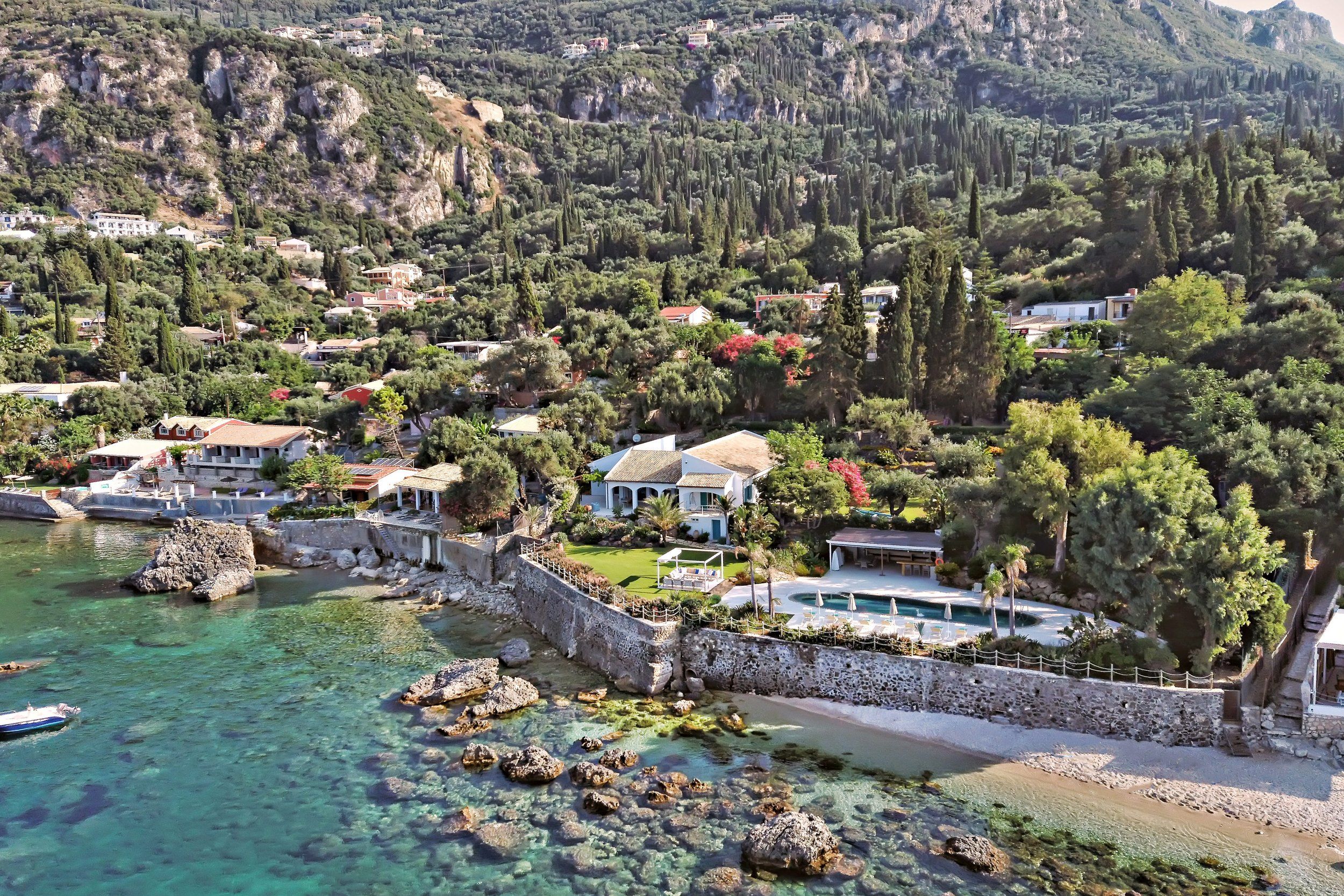 One of Corfu’s most popular and picturesque beaches is right on the doorstep of this deluxe villa. A private path leads from the terrace to the sand of Paleokastritsa beach where boats for snorkelling trips, tavernas for long lunches and shaded loungers await. So, you can join the crowds on the beach or opt for the privacy of your terrace, overlooking the sea. Sunsets here are particularly spectacular – illuminating the coastline in golden light – perhaps best enjoyed from the covered lounge area with a cold drink in hand. A porticoed veranda covers sofas and chairs all facing the sea and the serene swimming pool invites you for a dip in the heat of the day.