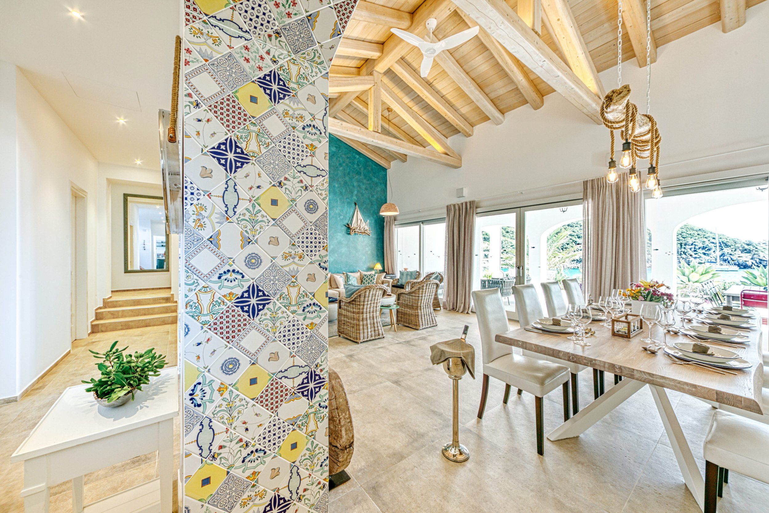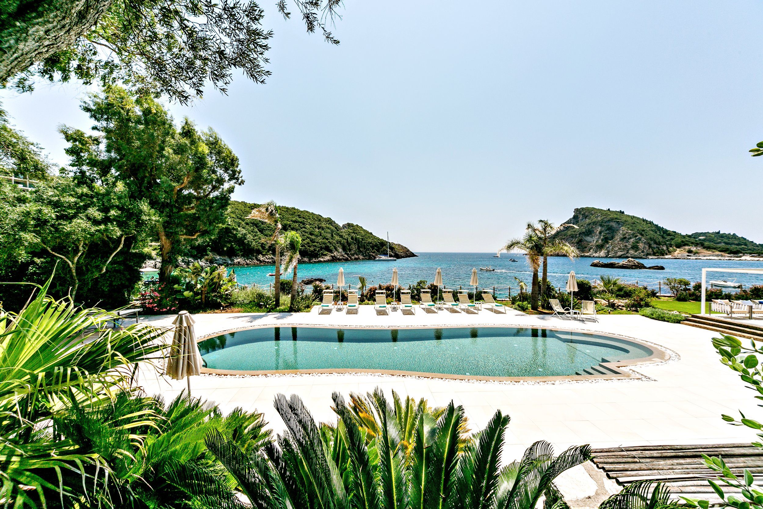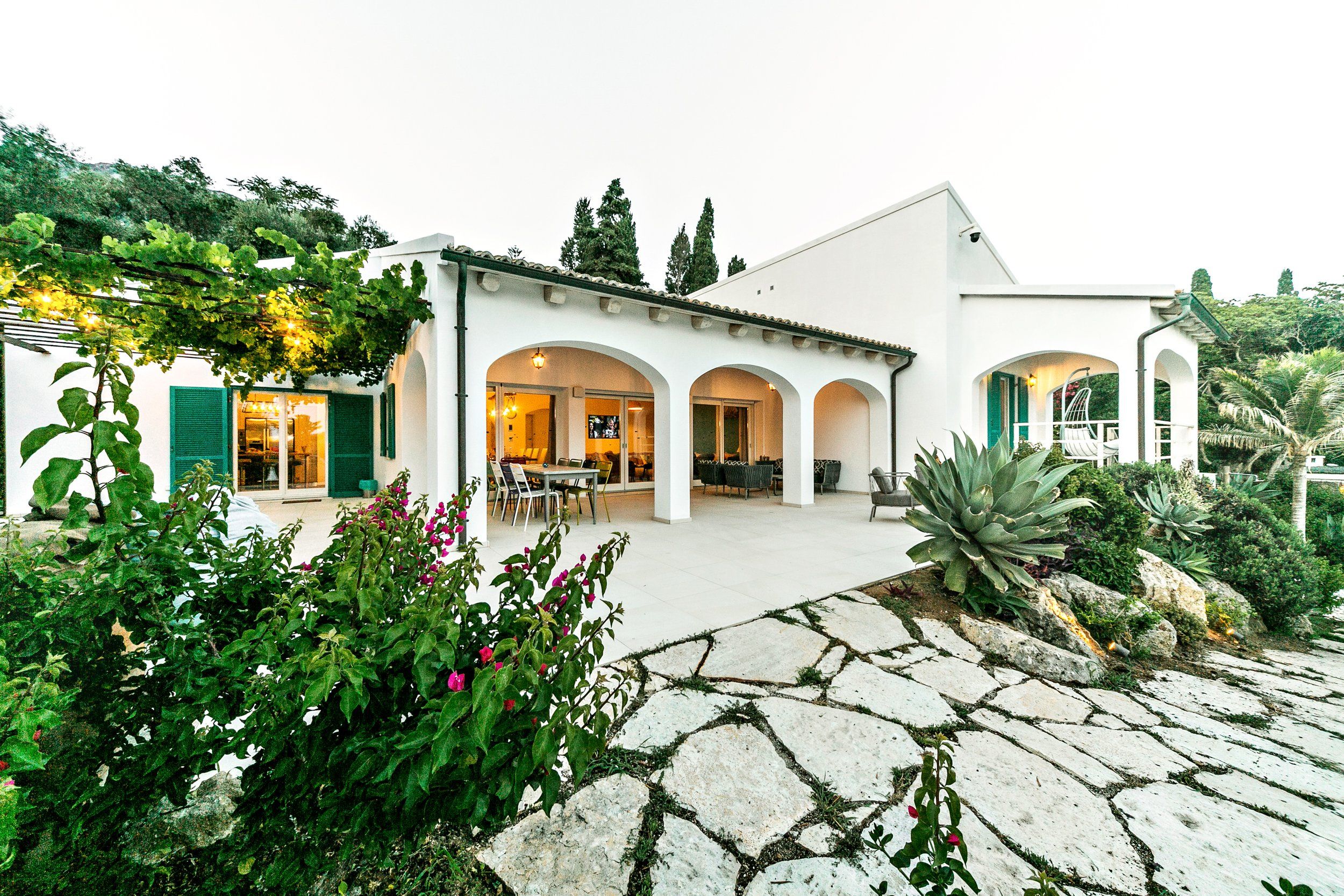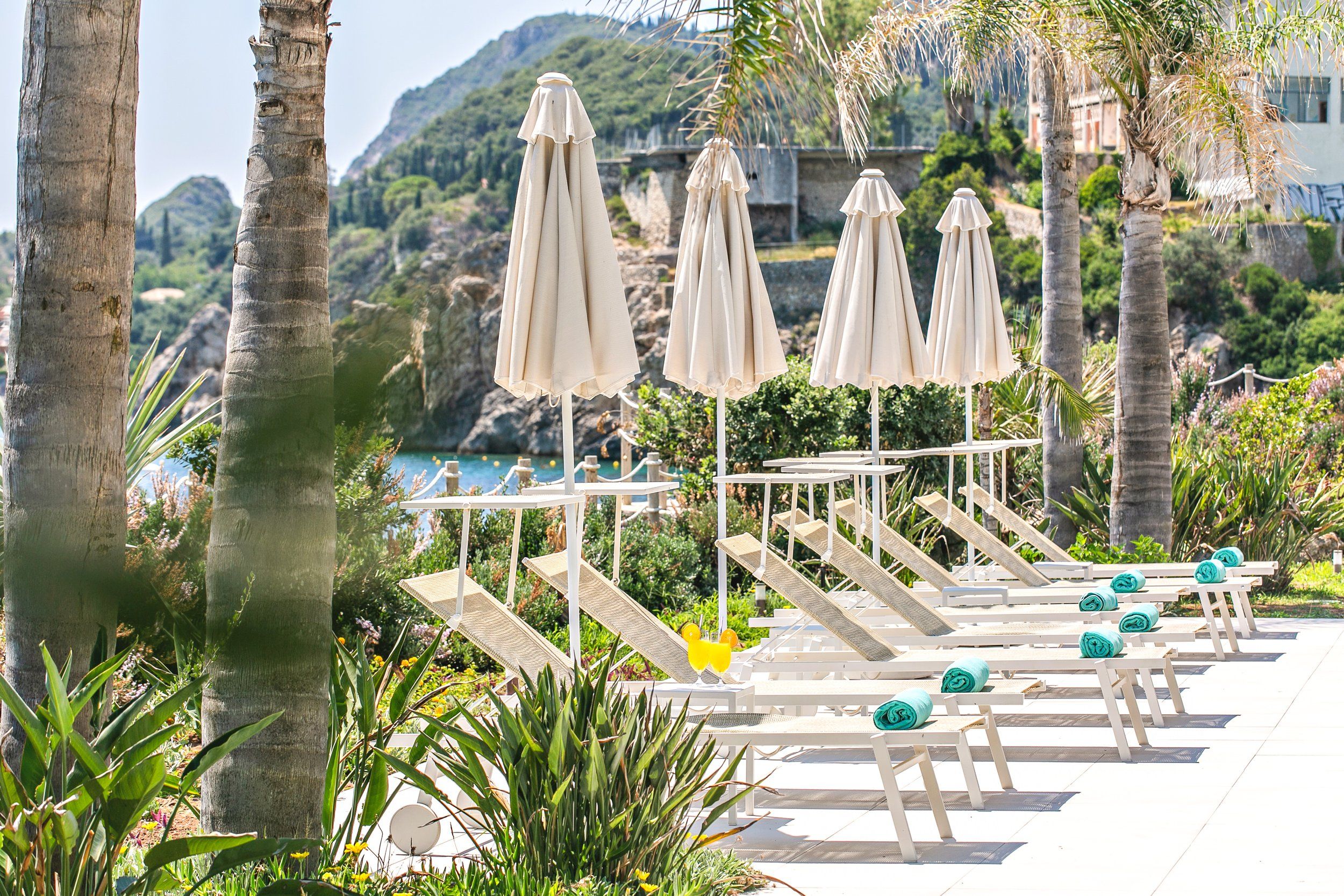 One of Corfu’s most popular and picturesque beaches is right on the doorstep of this deluxe villa. A private path leads from the terrace to the sand of Paleokastritsa beach where boats for snorkelling trips, tavernas for long lunches and shaded loungers await. So, you can join the crowds on the beach or opt for the privacy of your terrace, overlooking the sea. Sunsets here are particularly spectacular – illuminating the coastline in golden light – perhaps best enjoyed from the covered lounge area with a cold drink in hand. A porticoed veranda covers sofas and chairs all facing the sea and the serene swimming pool invites you for a dip in the heat of the day.
